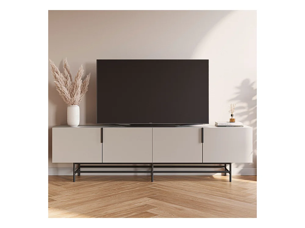 Vintara - Meuble TV 4 portes en bois et métal L200cm - Beige
