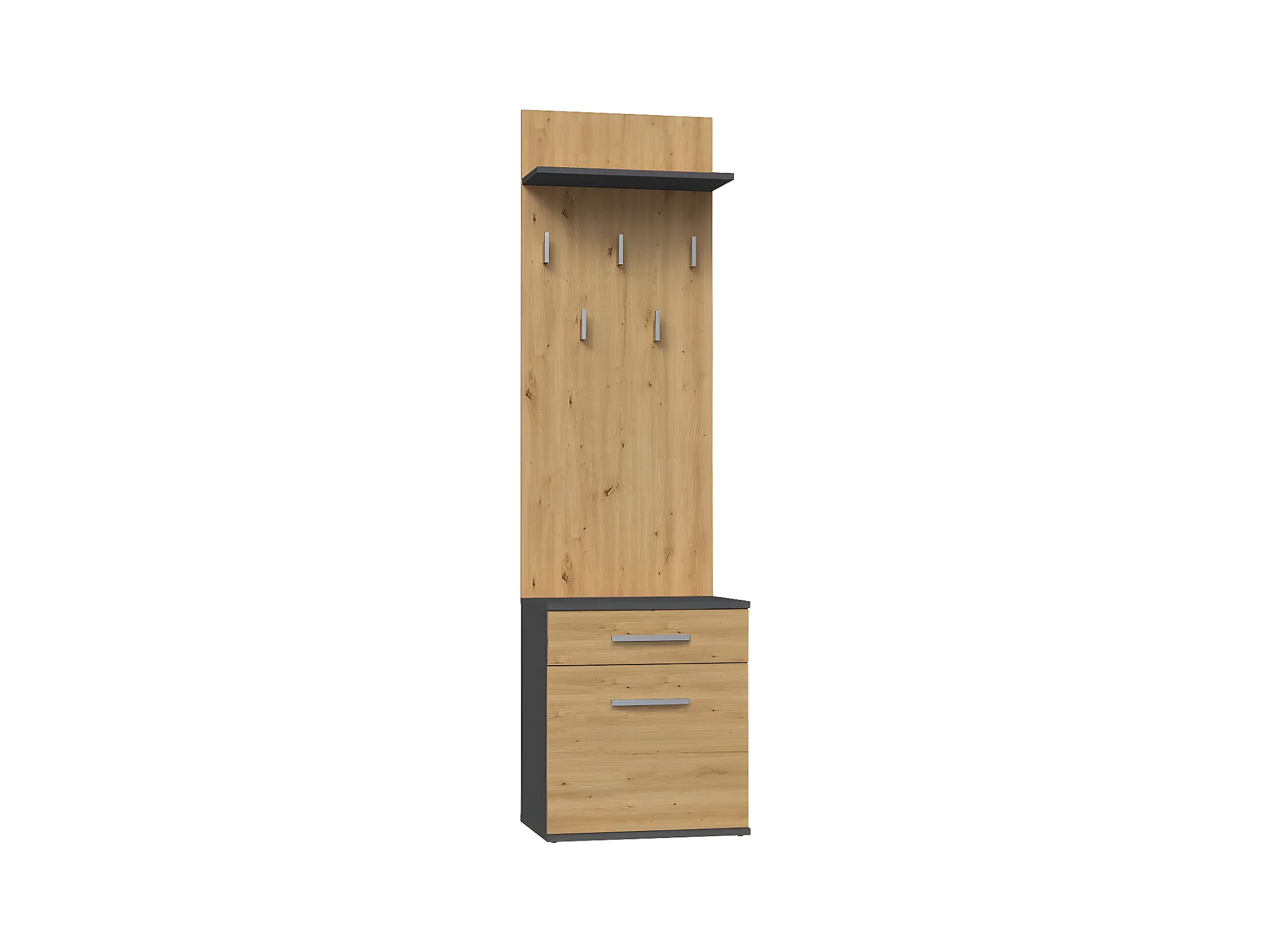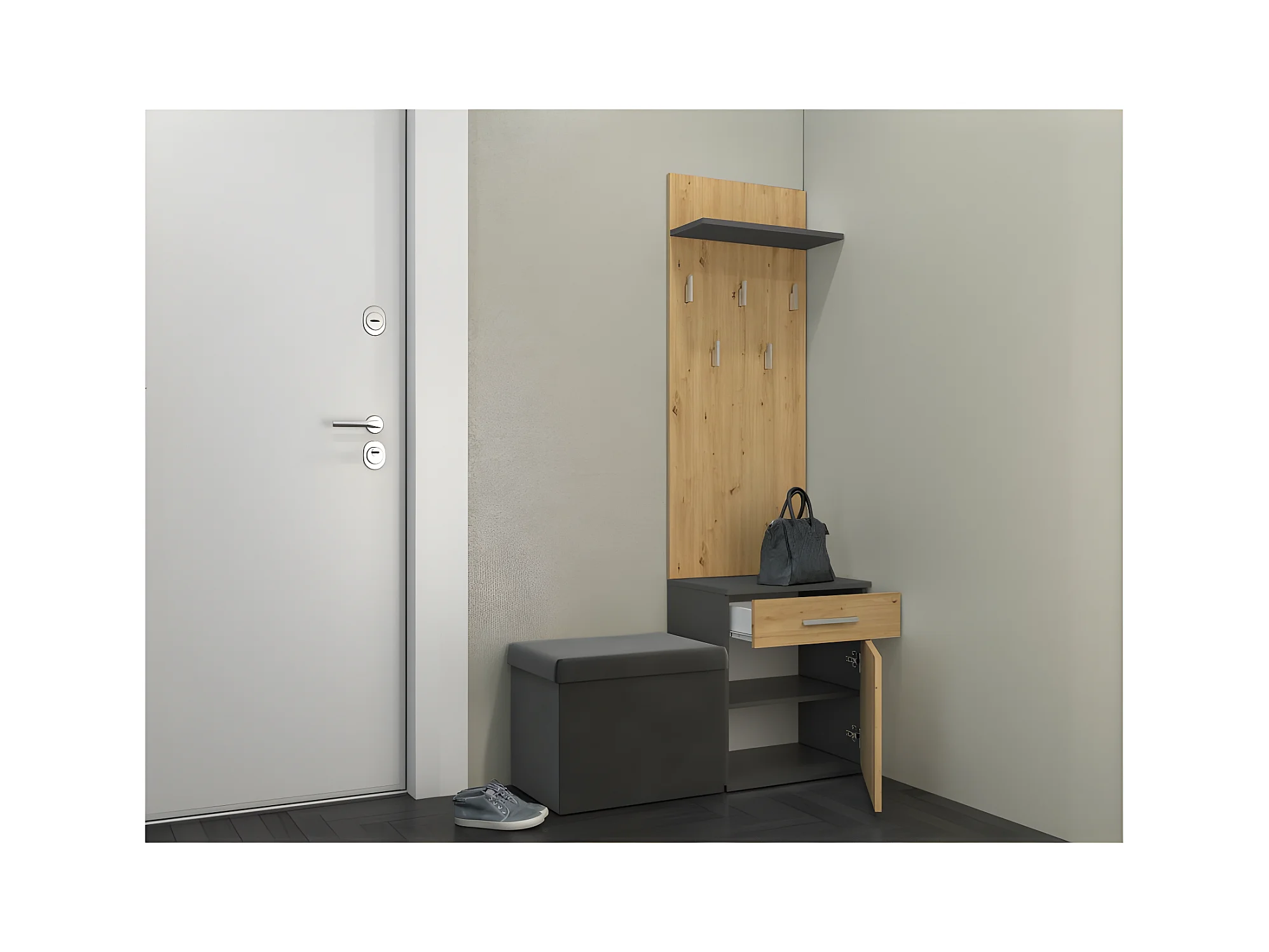 VIONI - Meuble vestiaire d'entrée - Portemanteau mural avec étagère - 5 crochets - Tiroir + meuble de rangement