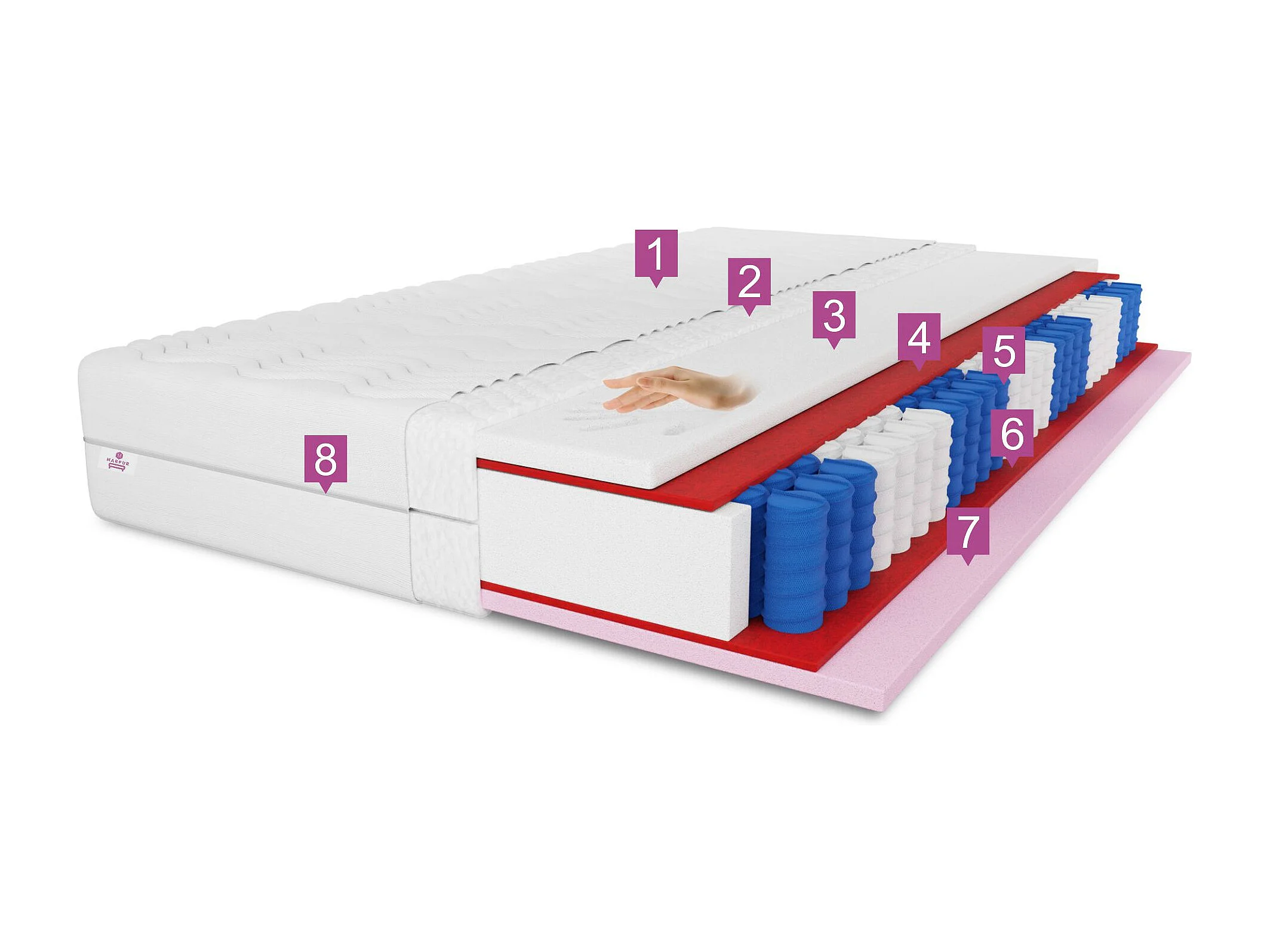 VISCO - Matelas à ressorts ensachés 7 zones Cailano, 140x200 cm, hauteur du matelas env. 25 cm, degré de fermeté H3, couleur : blanc, housse incluse