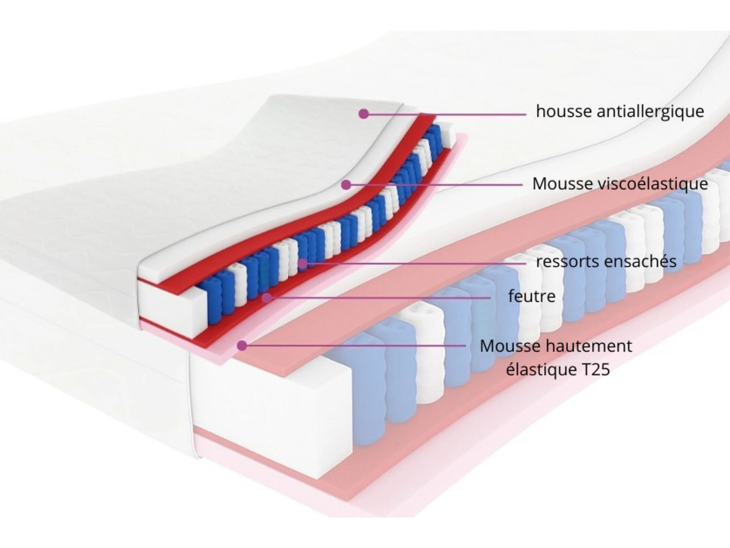 VISCO - Matelas à ressorts ensachés 7 zones Cailano, 200 x 200 cm, hauteur du matelas env. 25 cm, degré de fermeté H3, couleur : aloe vera, housse incluse