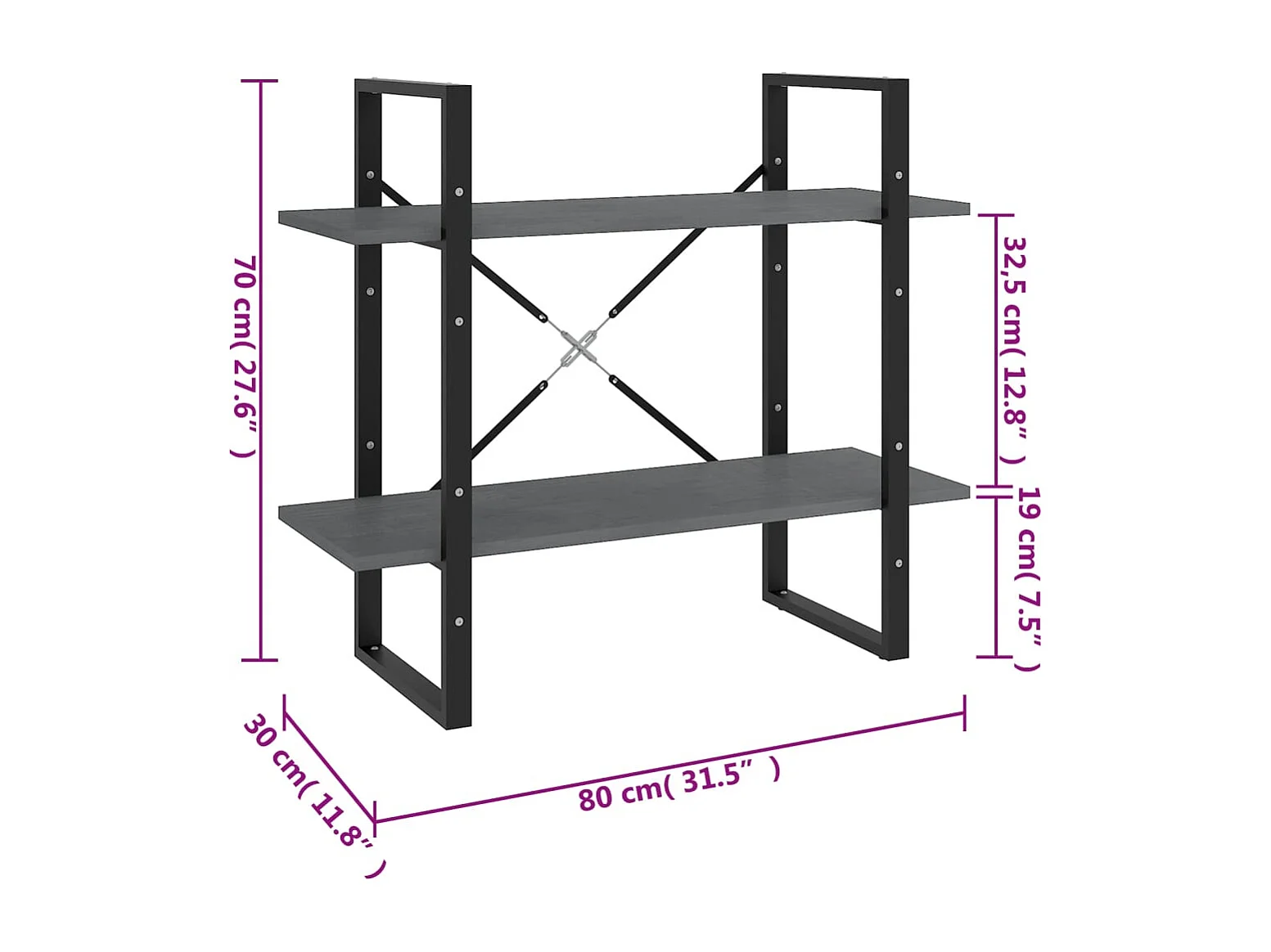 Vista Bibliothèque à 2 niveaux Gris 80x30x70 cm bois d'ingénierie