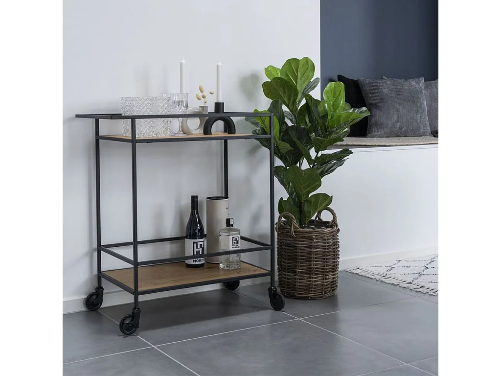 Chariot de bar Avery 68x40x59 cm Naturel et noir