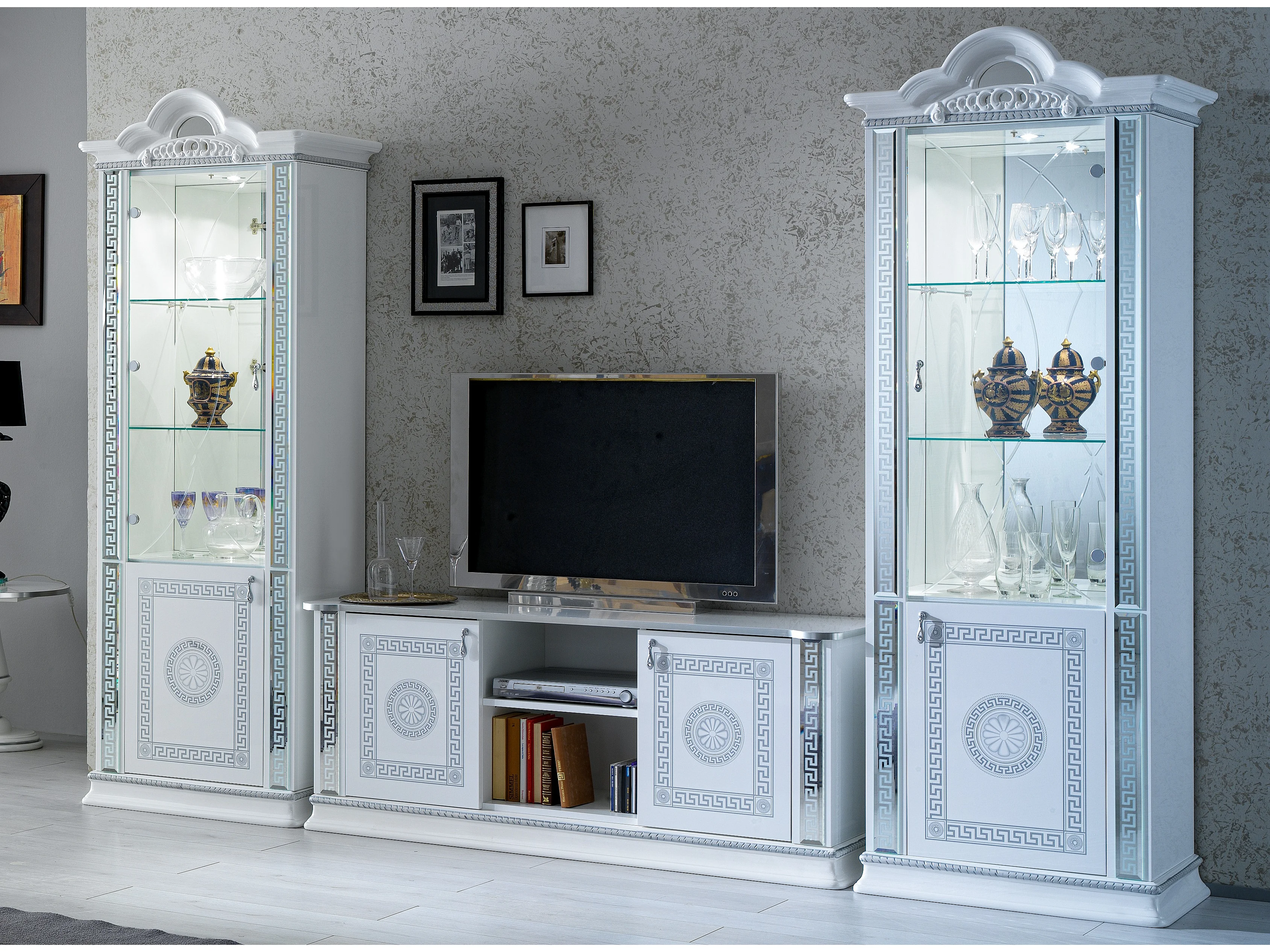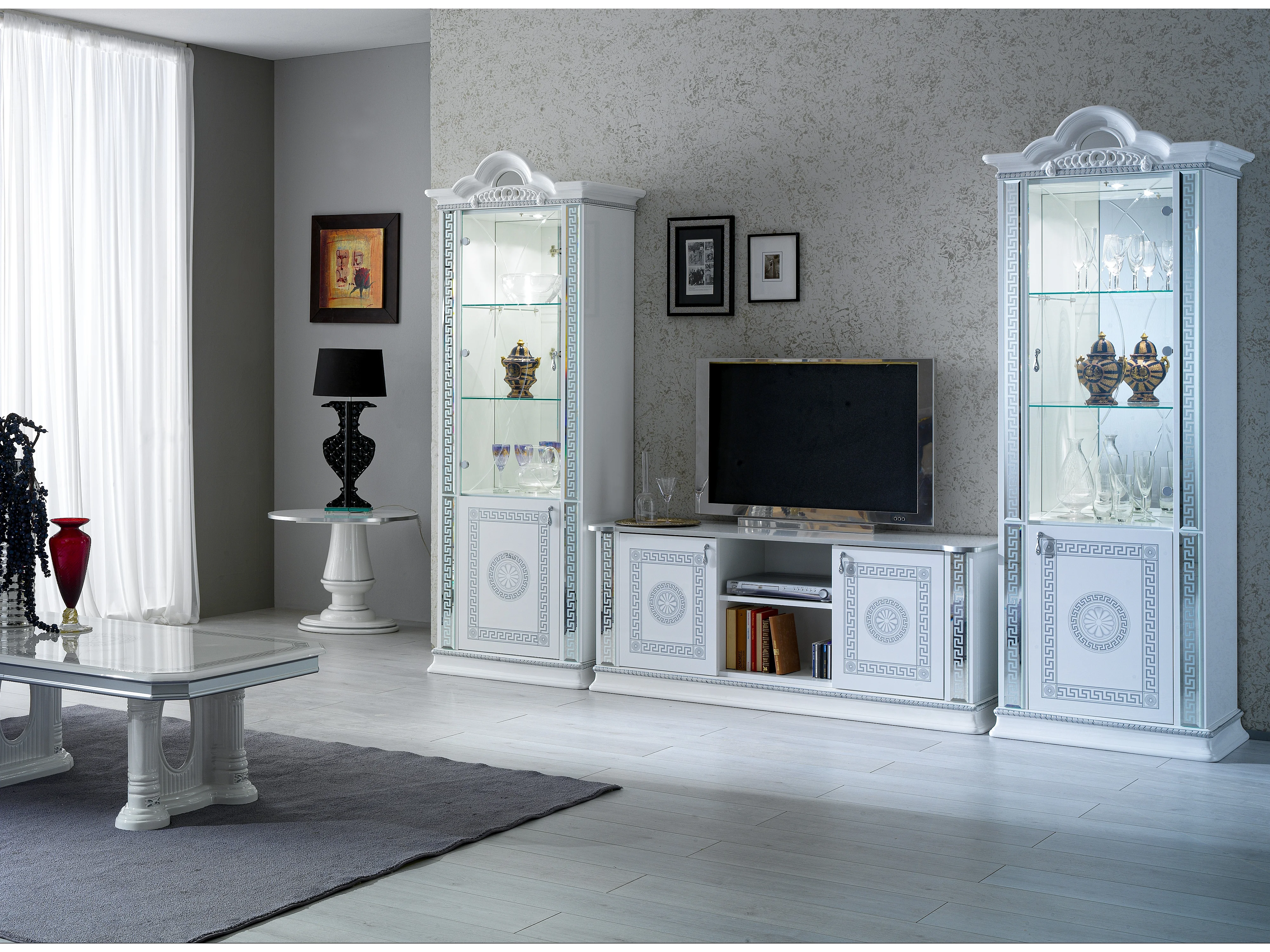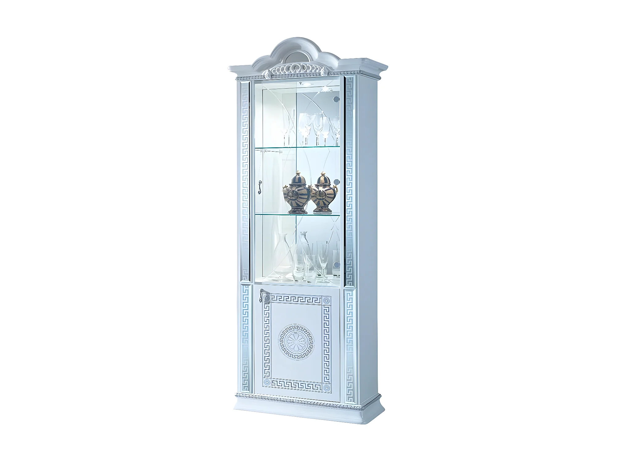 Vitrine 2 portes bois vernis laqué brillant blanc et gris Venus 78cm