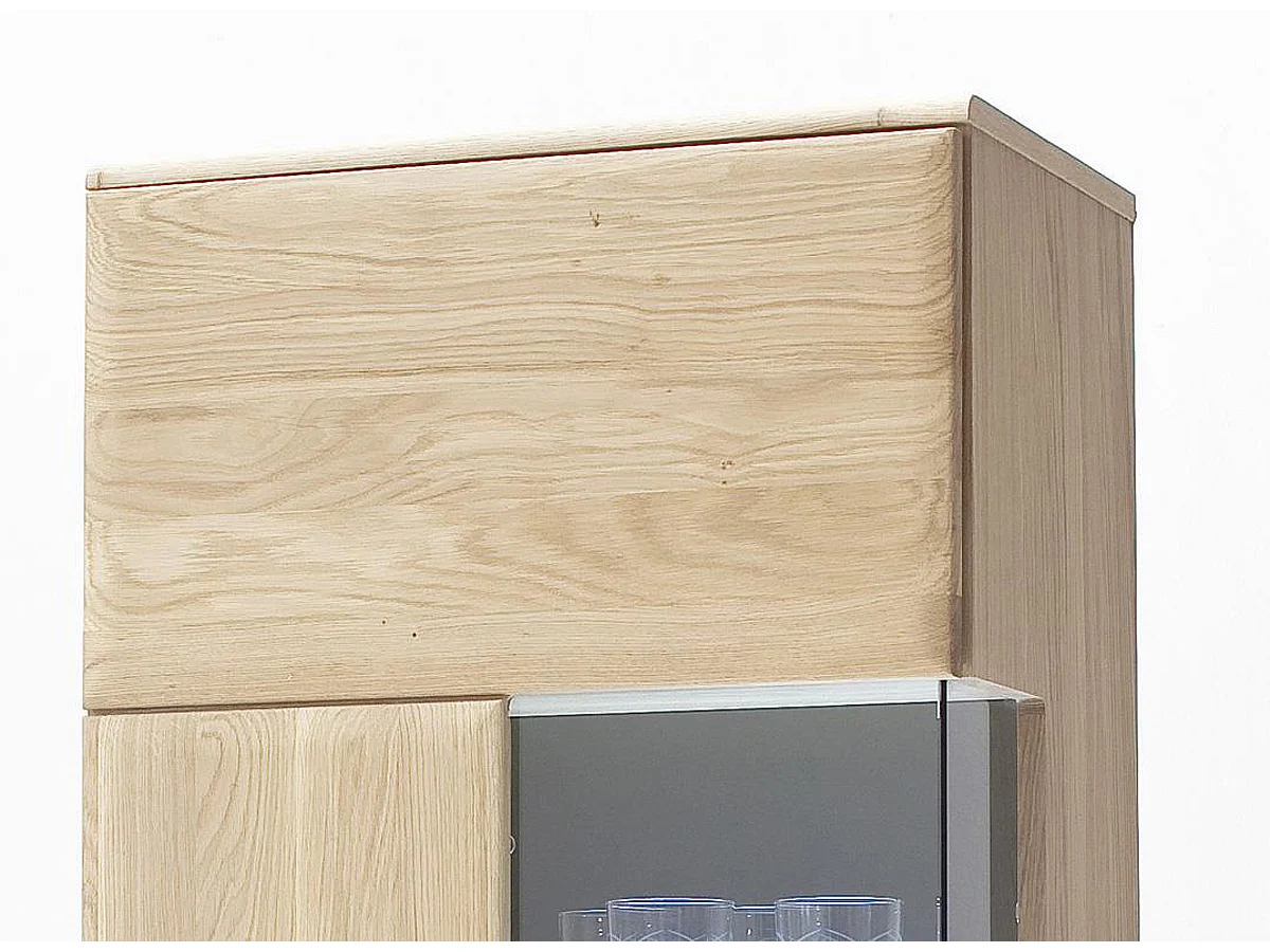 Vitrine à gauche en chêne massif Bianco + LED - L.60 x H.208 x P.38 cm