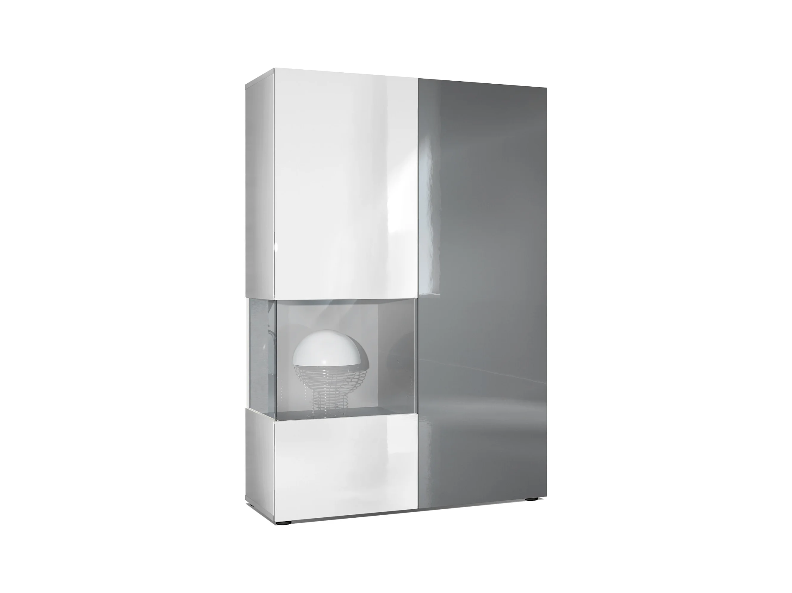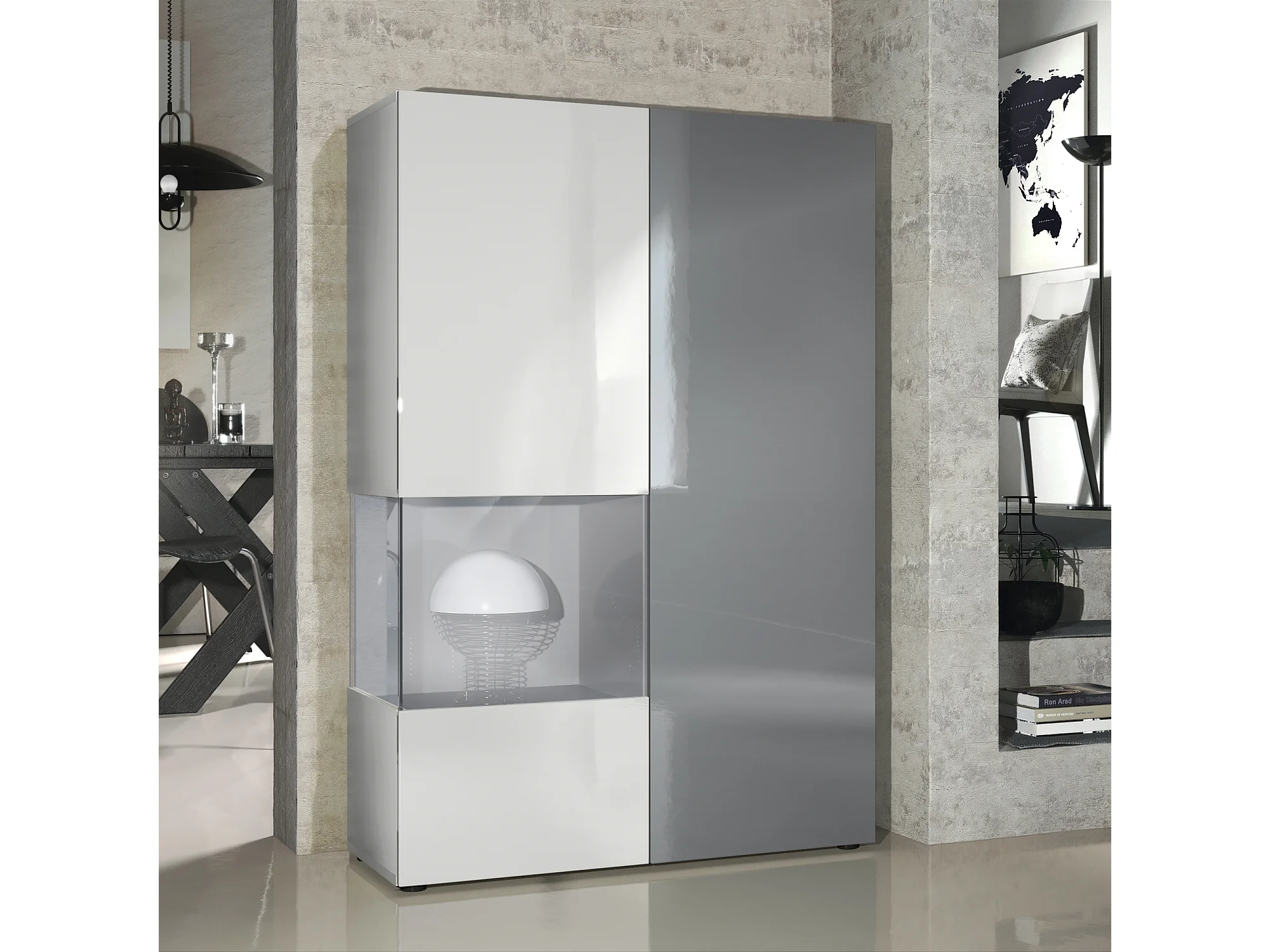 Vitrine Armoire Morena, Corps en Blanc mat / Porte droite et insert en Gris haute brillance