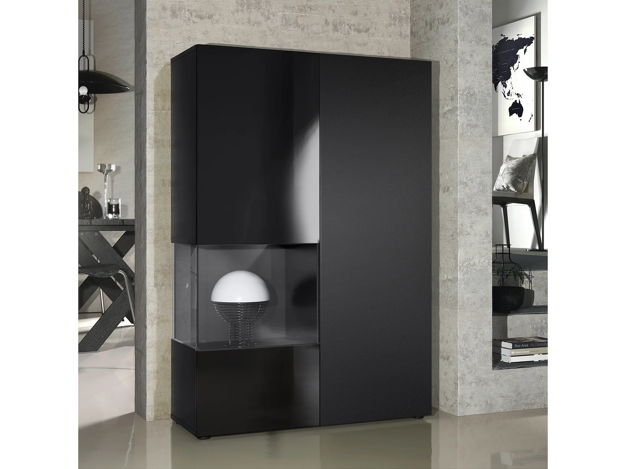 Vitrine Armoire Morena, Corps en Noir mat / Porte droite et insert en Noir mat