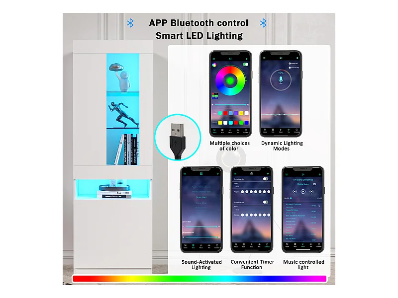 Vitrine avec éclairage LED 16 couleurs et Bluetooth - 2 portes et 1niche - panneau de particules - 50x40x180cm