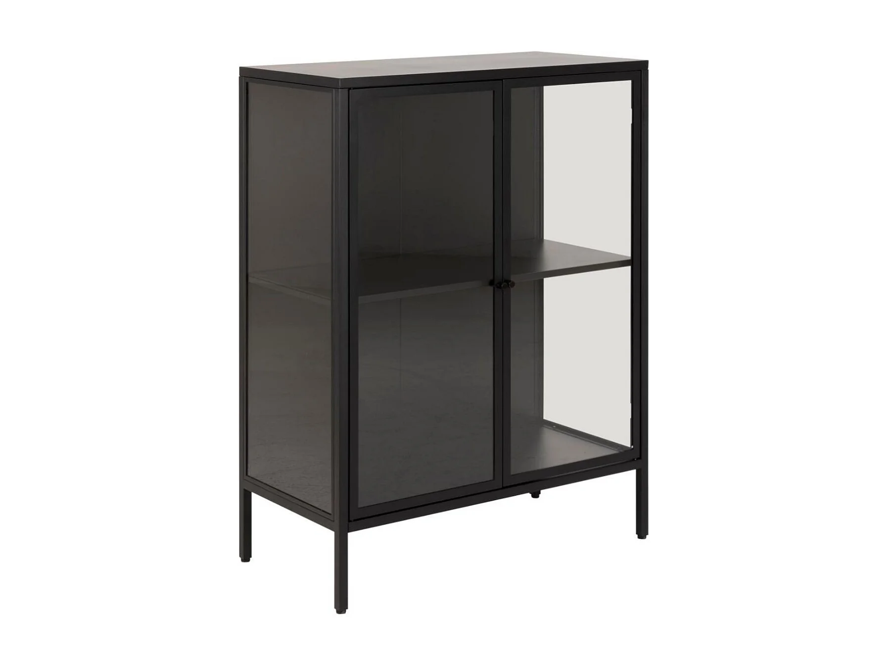 Vitrine basse scandinave en métal noir 2 portes vitrées - HARLOW