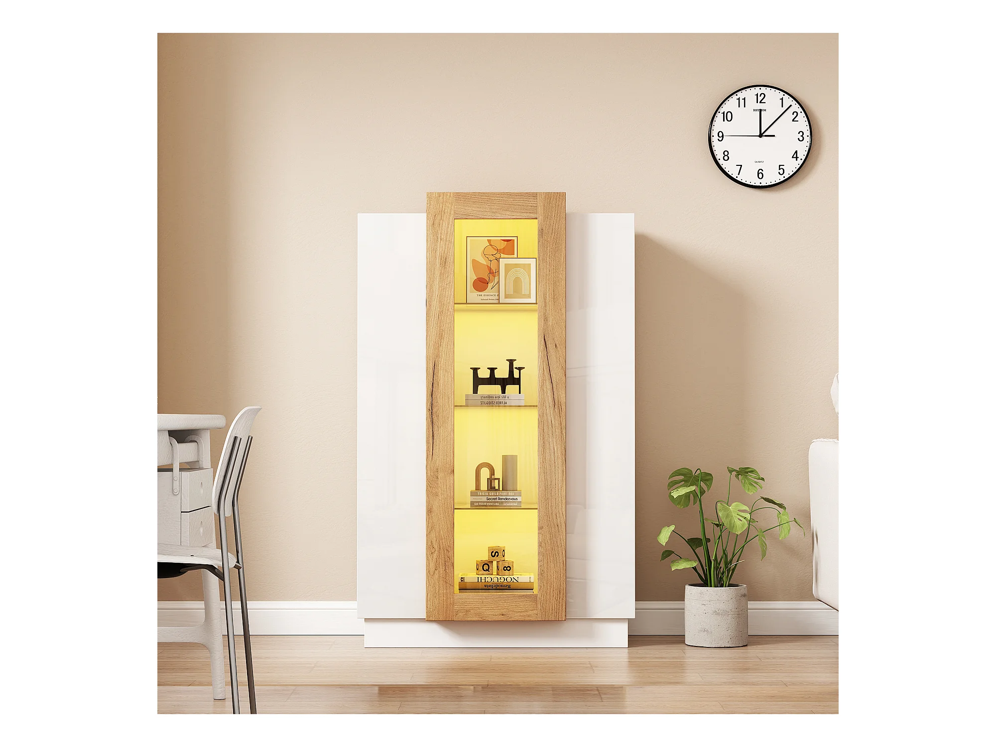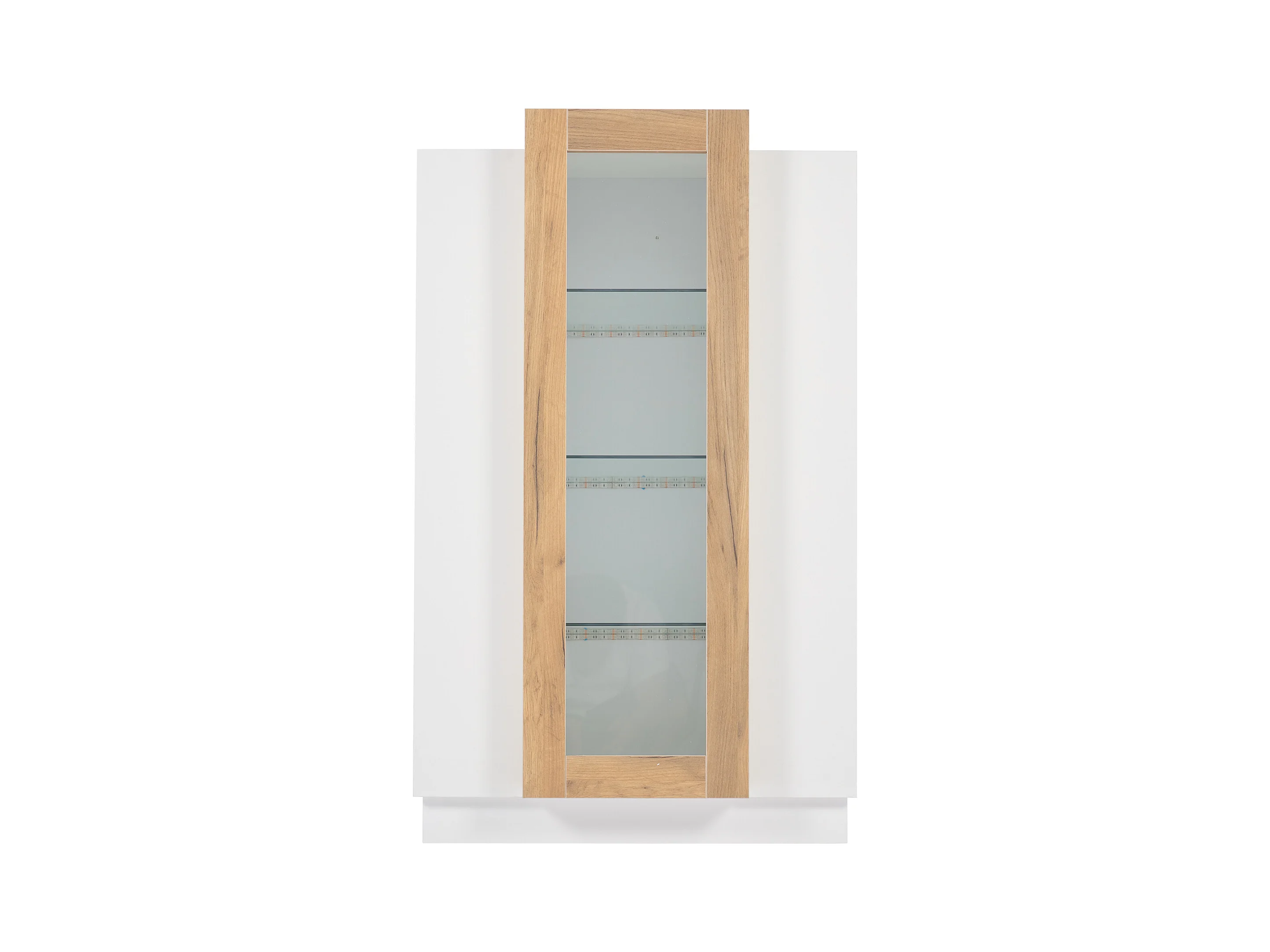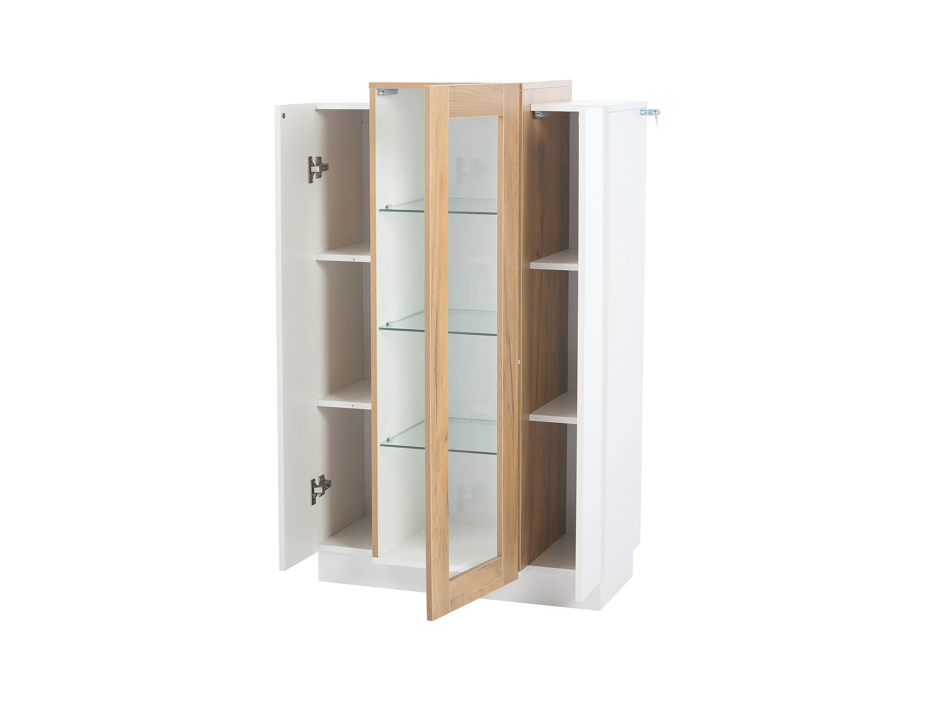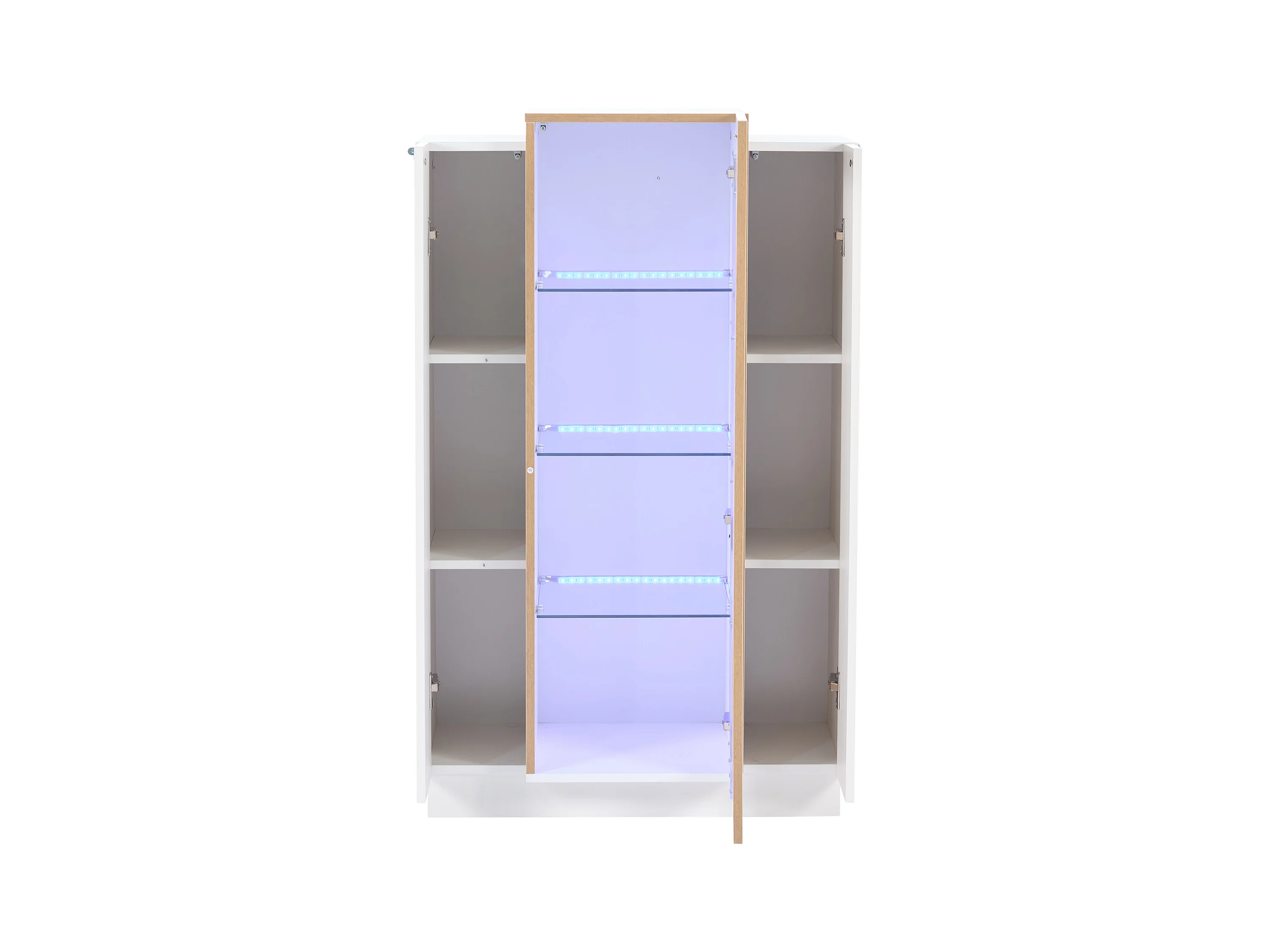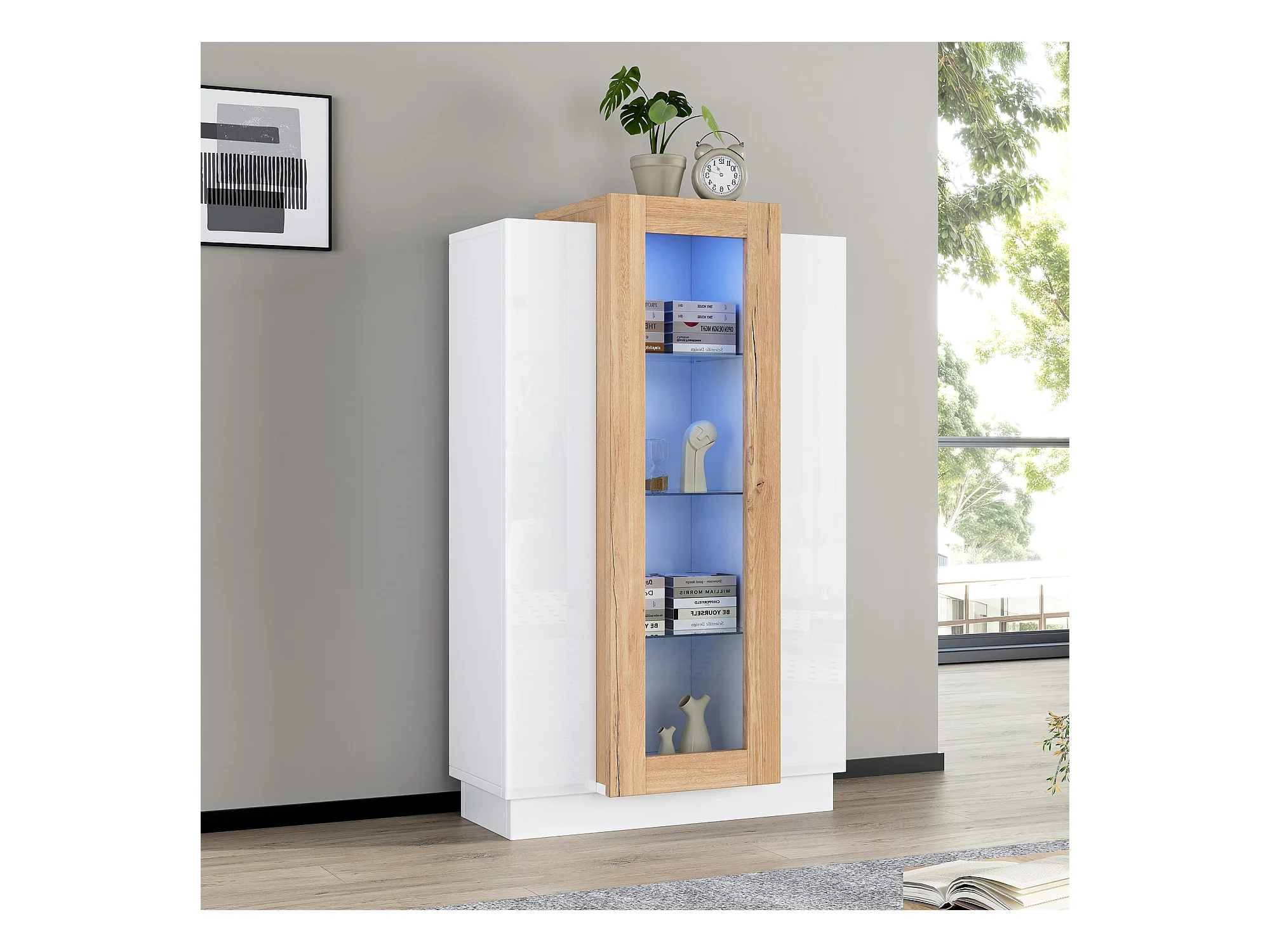 Vitrine blanc 74x40x120cm avec 3 portes dont 1 en acrylique, tablettes en verre, LED inclus