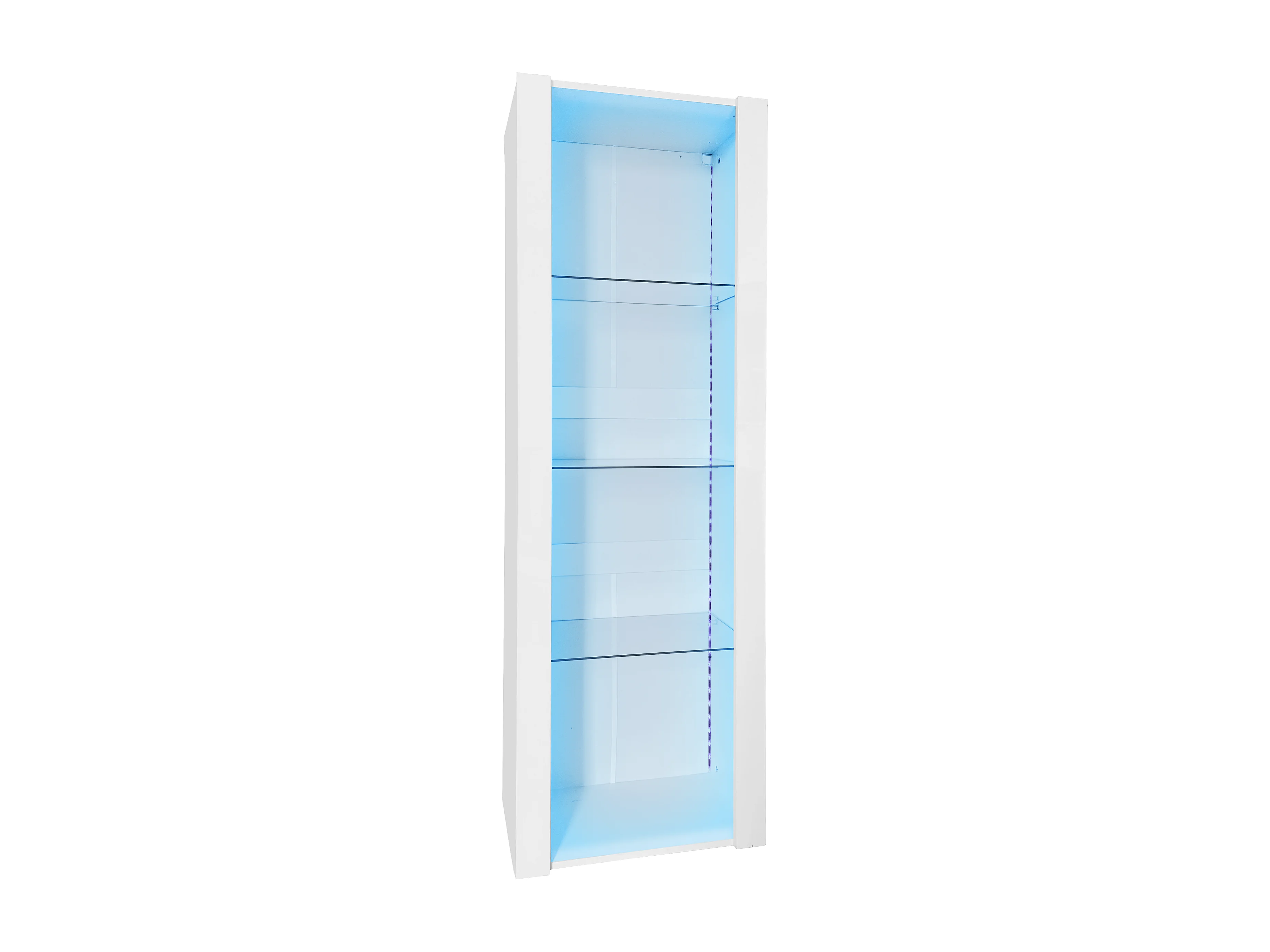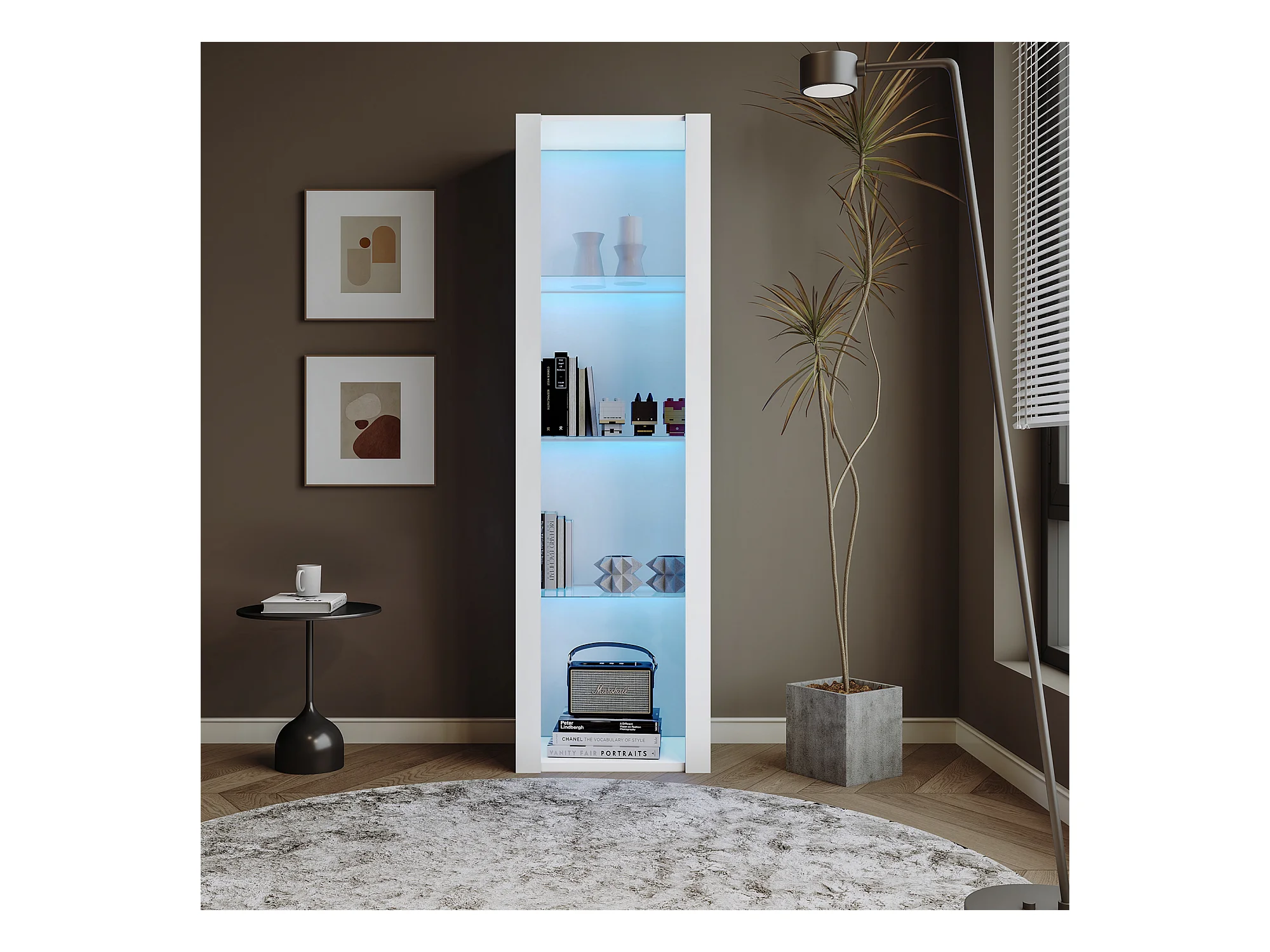 Vitrine en verre avec Leds + 1 tiroir et 4 rangement - 55 x 38 x 170 cm - aggloméré - blanc