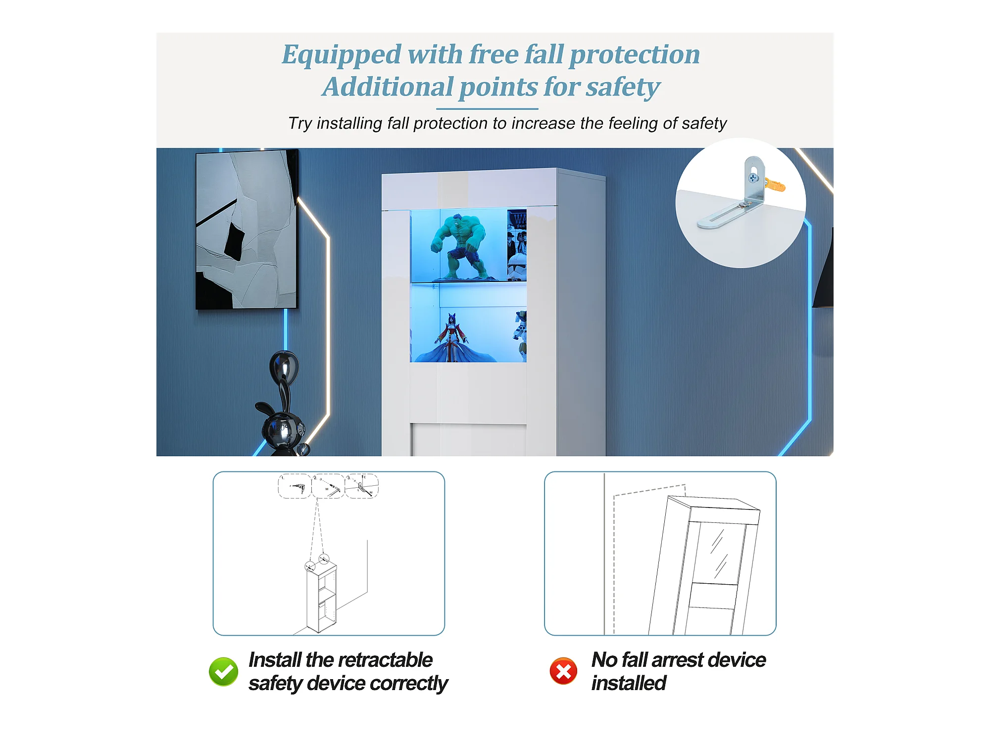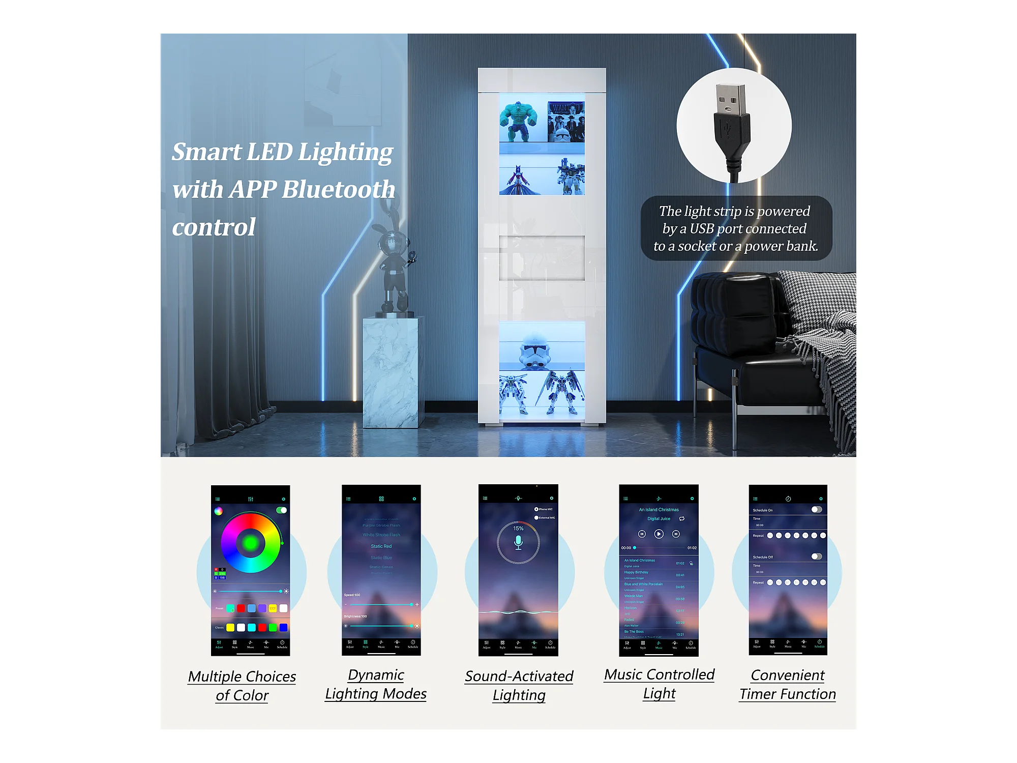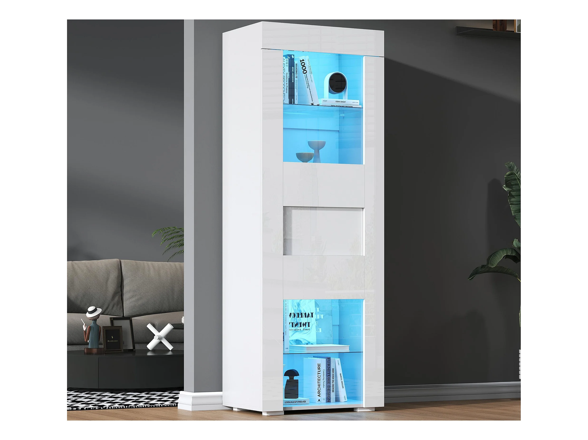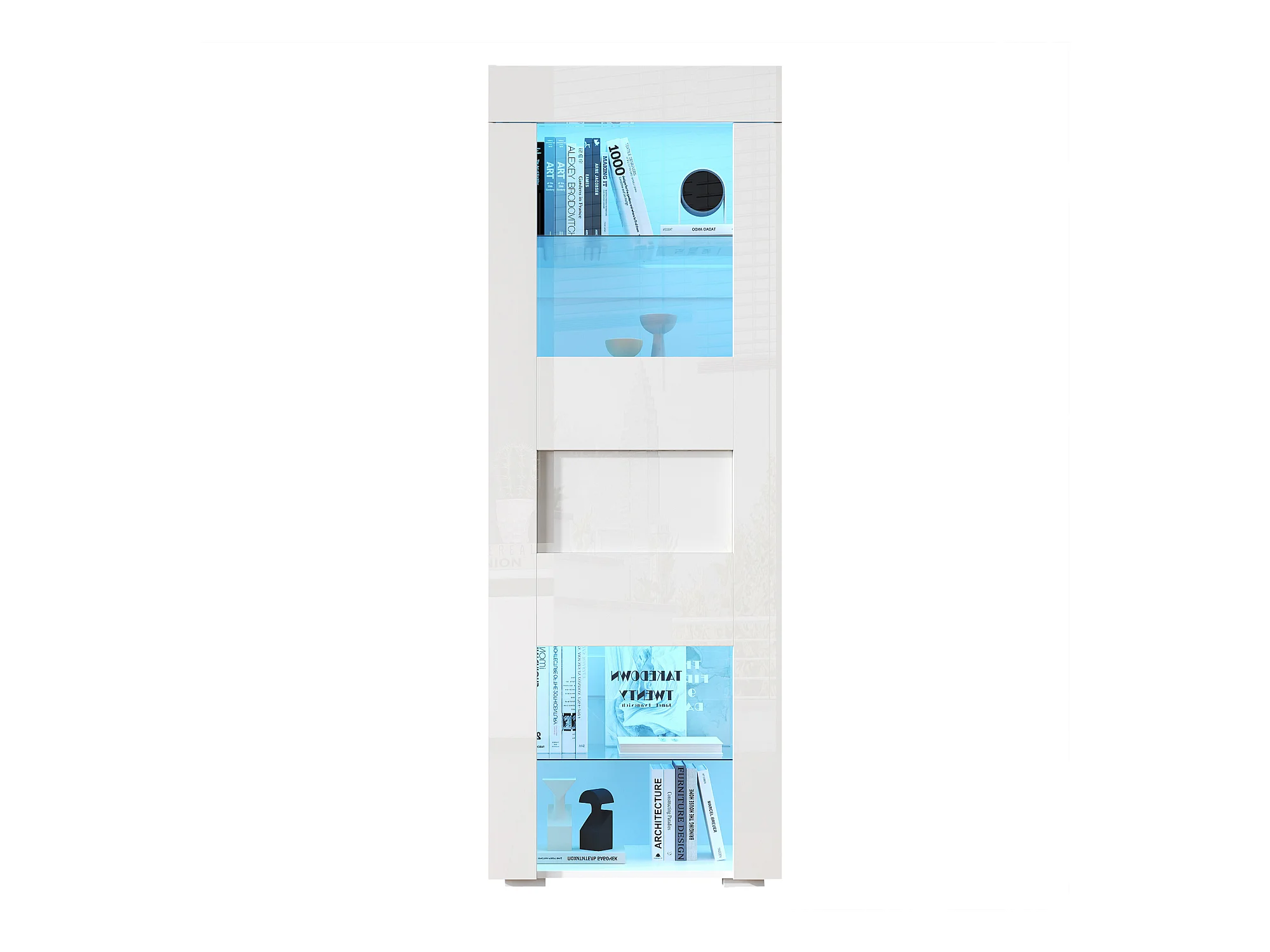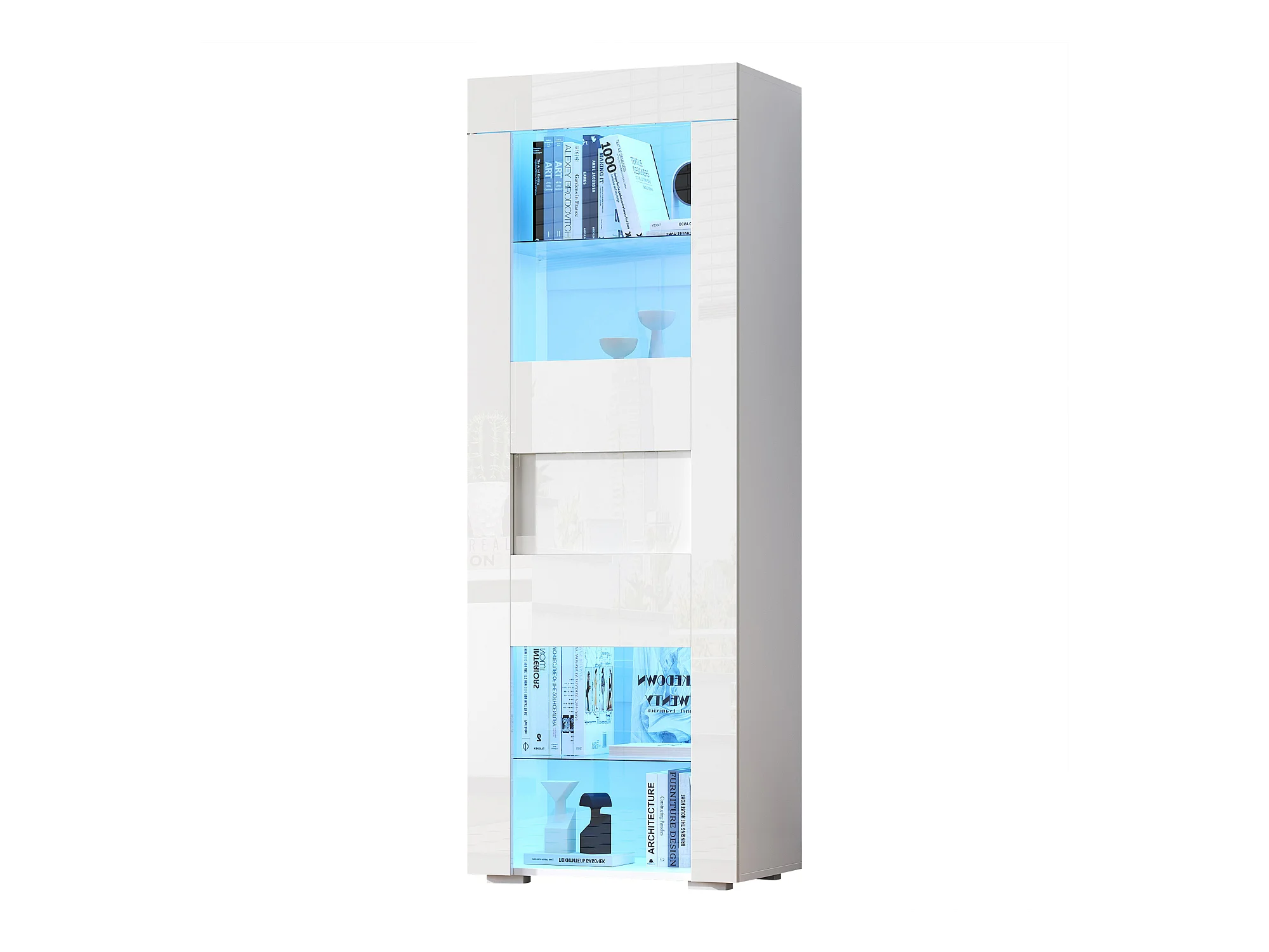 Vitrine haute brillance 55x38x170 cm - 1 tiroir et 4 portes - avec éclairage LED - Blanc