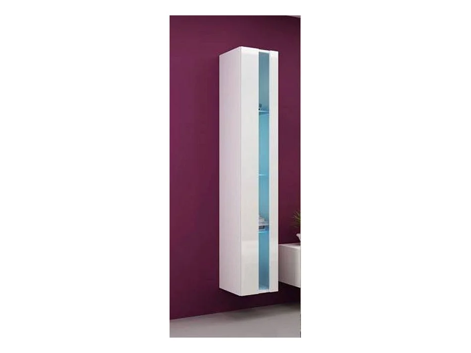 Vitrine armoire haute 1 tiroir 4 placards verre LED brillante design buffet salon présentoir blanc
