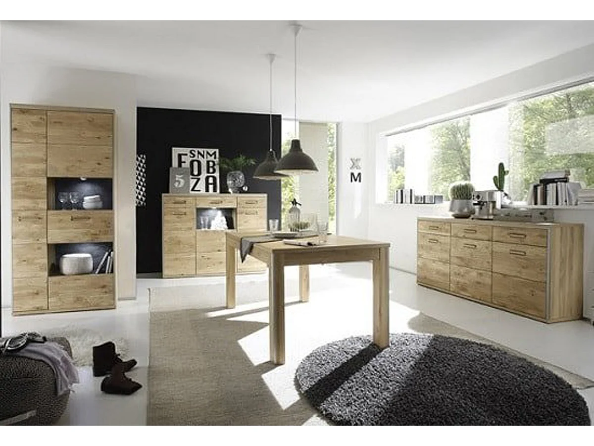 Vitrine coloris chêne Bianco avec LED - Longueur 94 x Hauteur 201 x Profondeur 39 cm