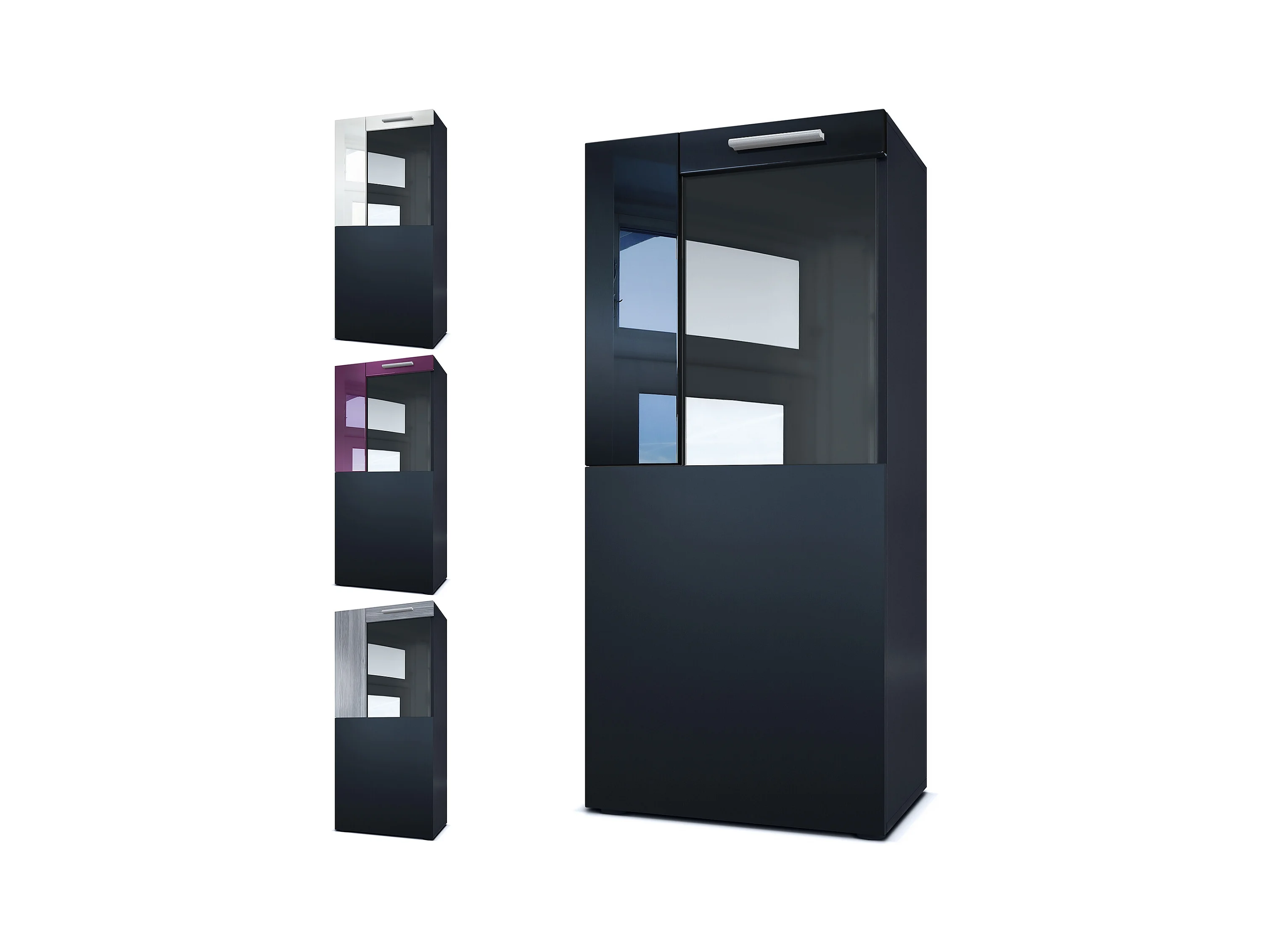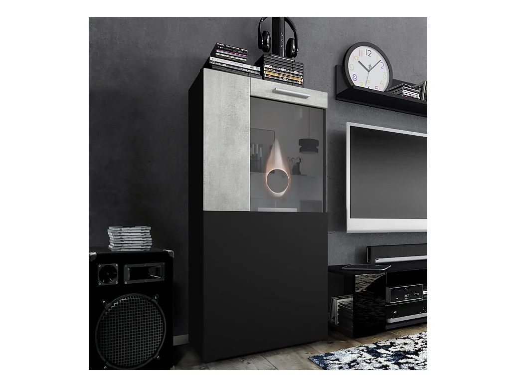 Vitrine de cinéma, noir mat/aspect béton oxyde - Vitrine moderne en verre - (LxHxP) : 50,5 x 111 x 32,5 cm