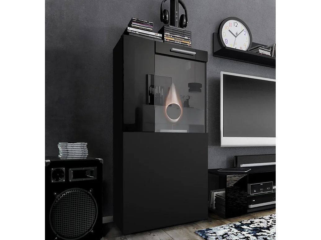 Vitrine de cinéma, noir mat/noir haute brillance - Vitrine moderne en verre - (LxHxP) : 50,5 x 111 x 32,5 cm