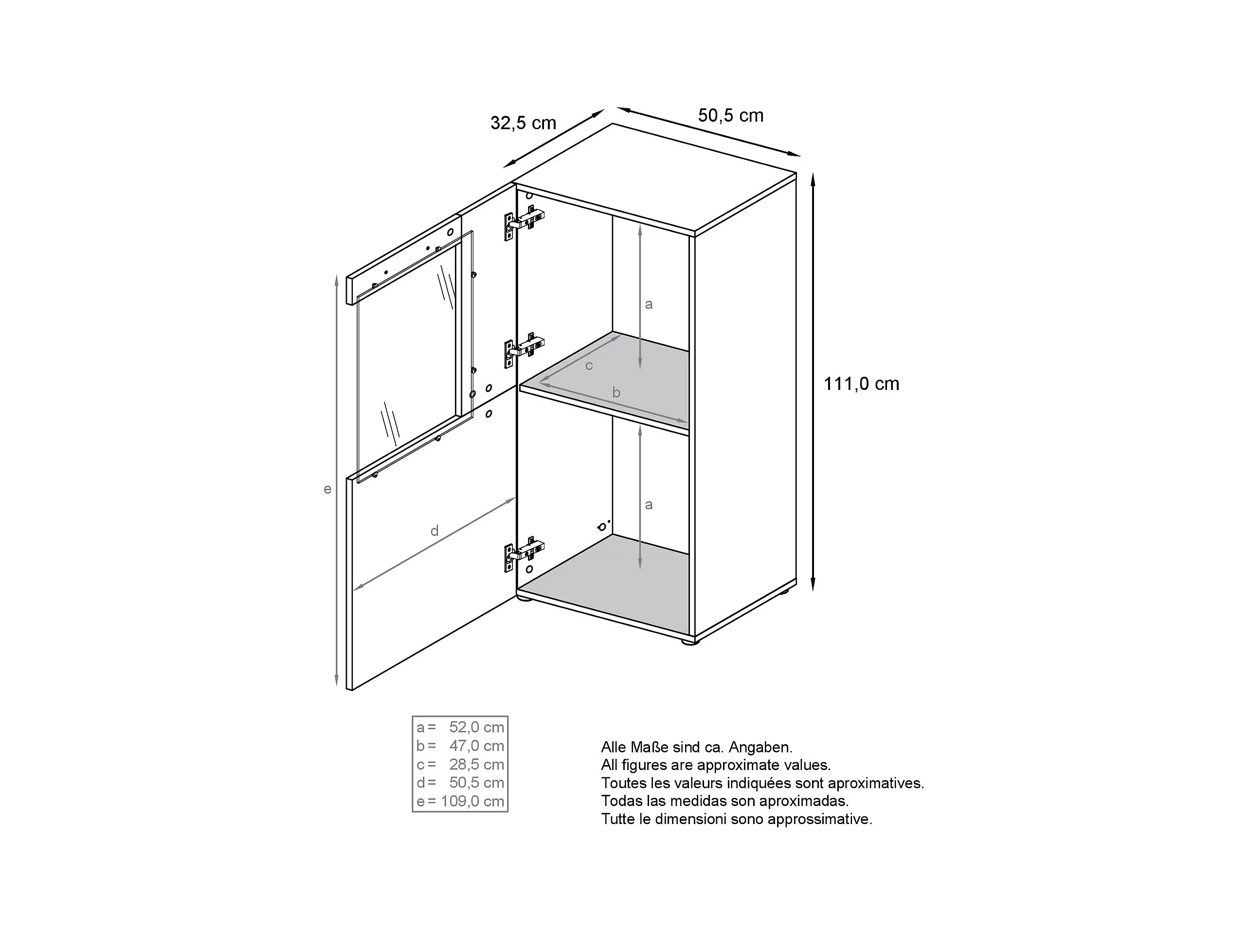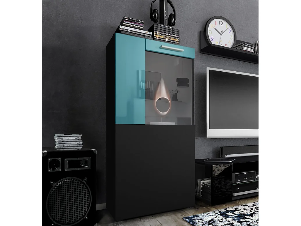 Vitrine de cinéma, noir mat/turquoise haute brillance - Vitrine moderne en verre - (LxHxP) : 50,5 x 111 x 32,5 cm