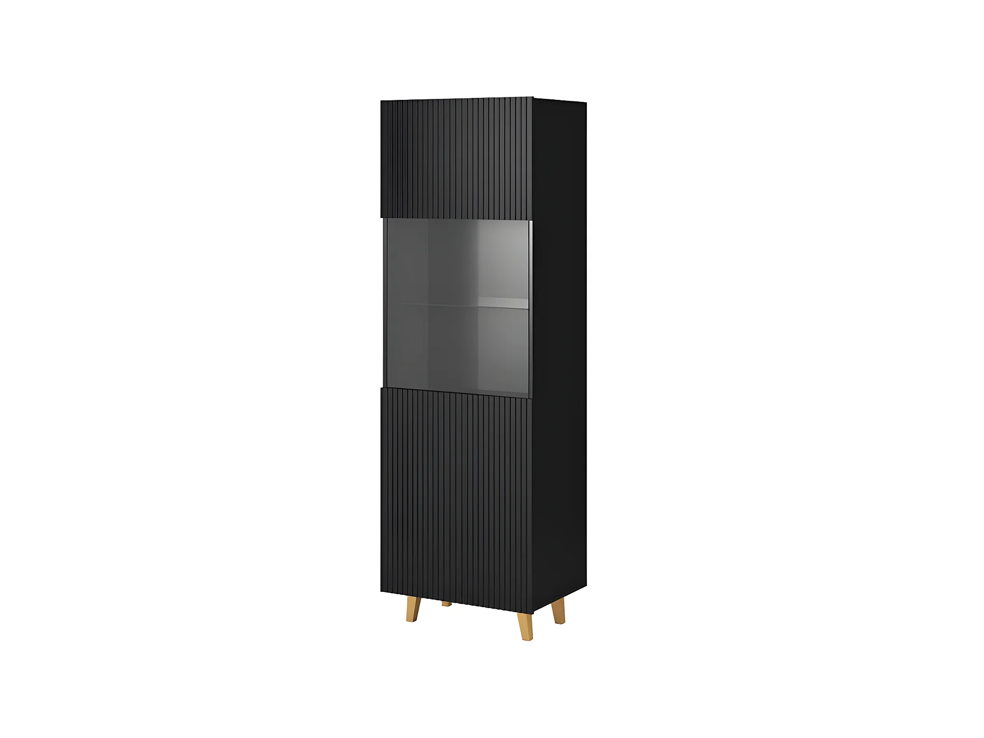 Vitrine design noir mat rainuré 2 niches Gustave