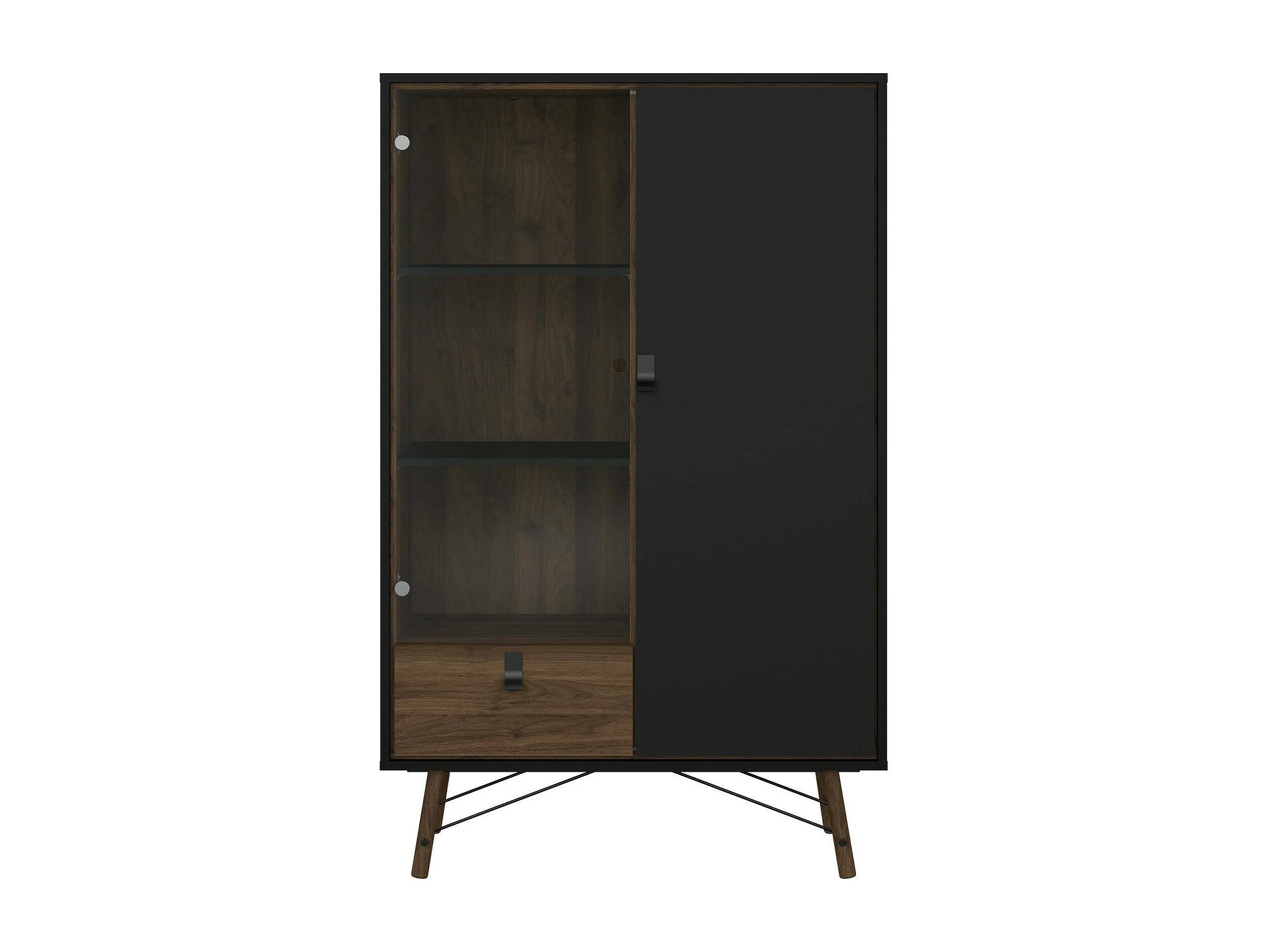 Vitrine Dvell, Buffet d'exposition, Vitrine polyvalente, Buffet de salon, 102x40 h162 cm, Noir et Noyer