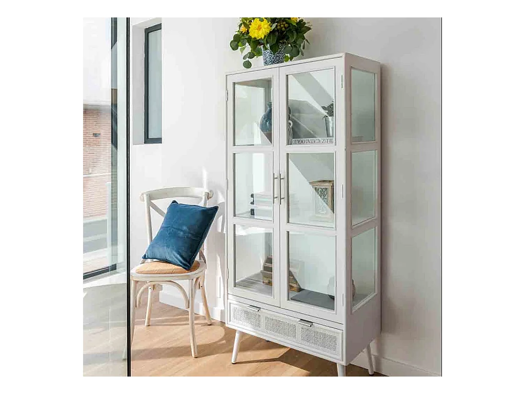 Vitrine en bois et treillis blanc 72x40.5x158.5h
