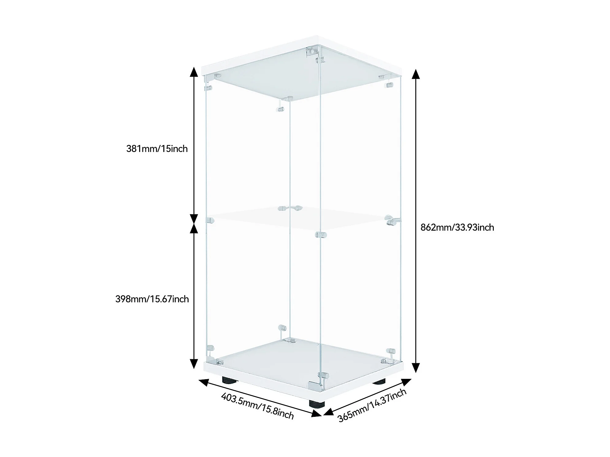 Vitrine en Verre - 3 étagères en Verre - avec Portes et Serrure - Blanc
