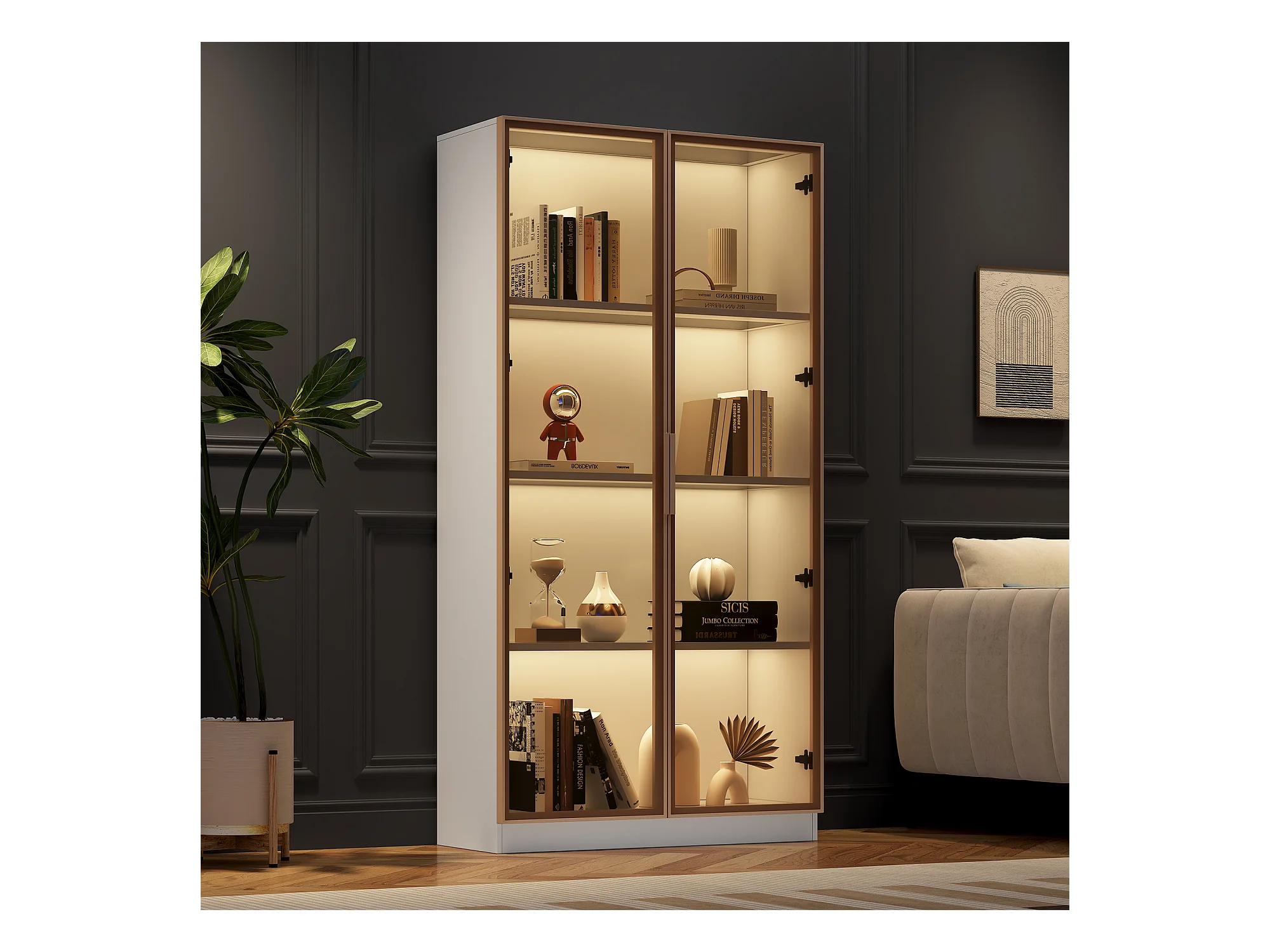 Vitrine en Verre avec 16 Couleurs LED, 2 Portes, Étagères Réglables, MDF, Blanc, (80x40x160 cm)