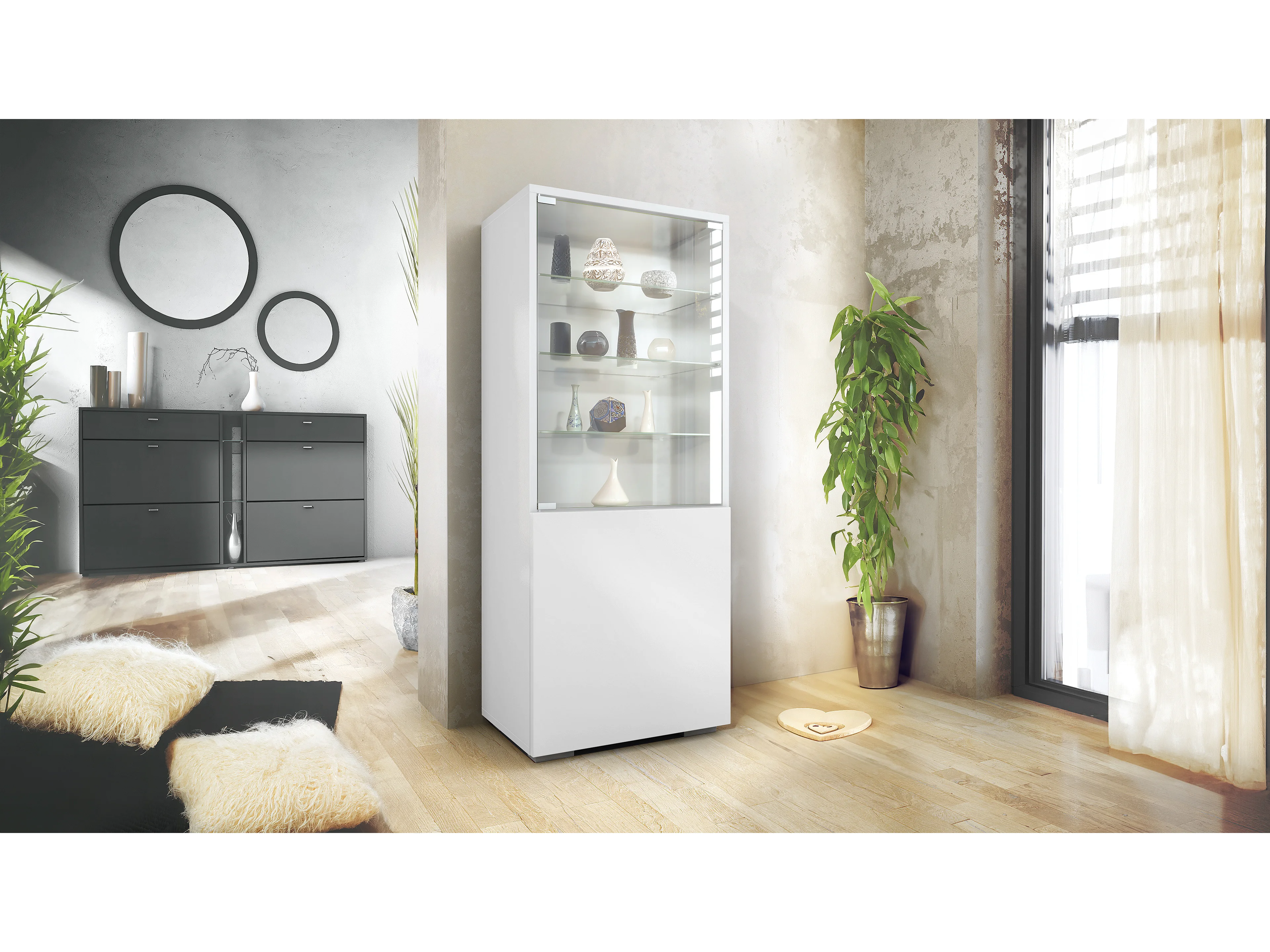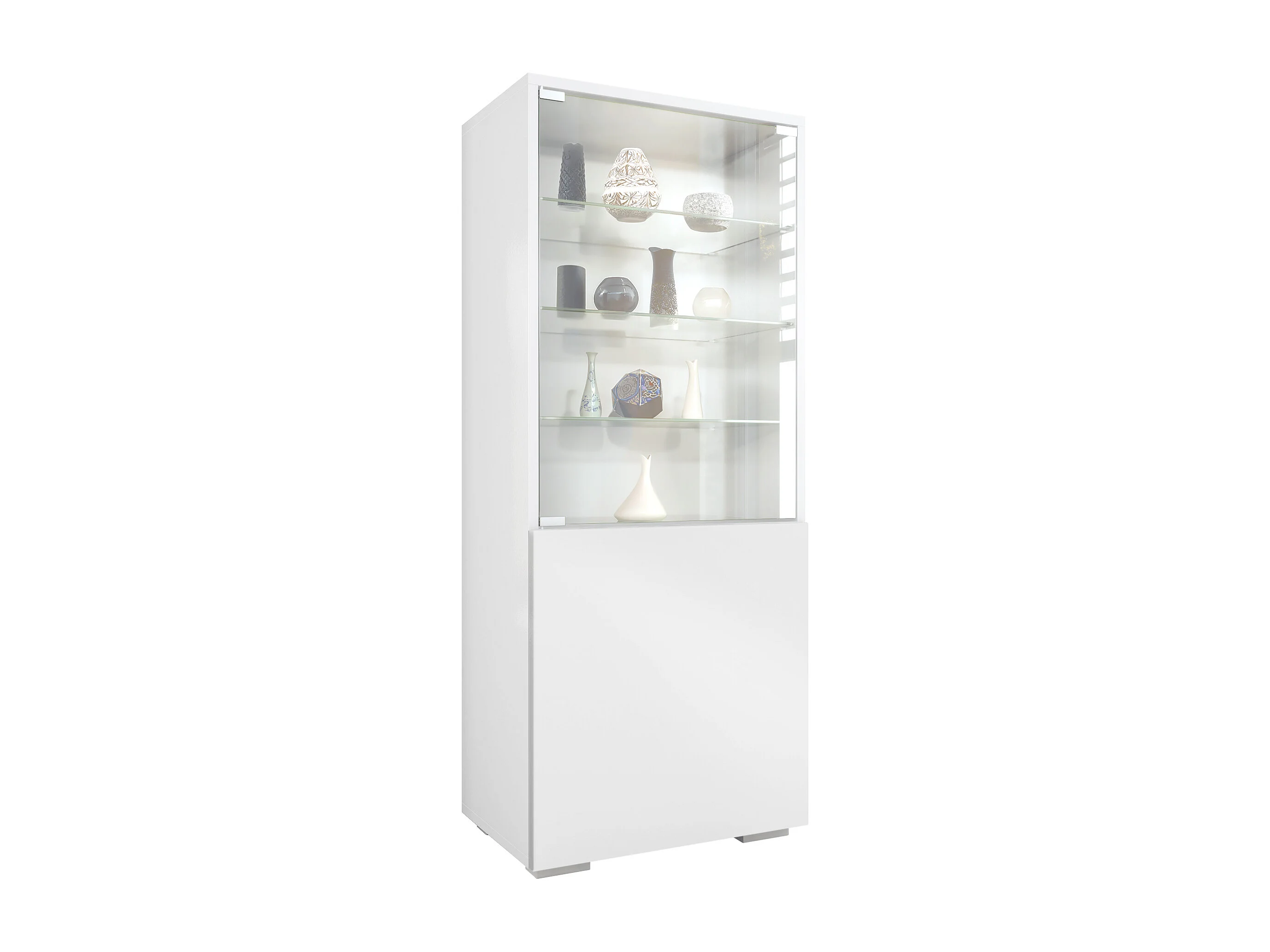 Vitrine Granada, Armoire Vitrée Made in Germany, avec Porte en Verre et Insert en Verre, blanc mat/blanc mat (50 x 122,5 x 34,5 cm)