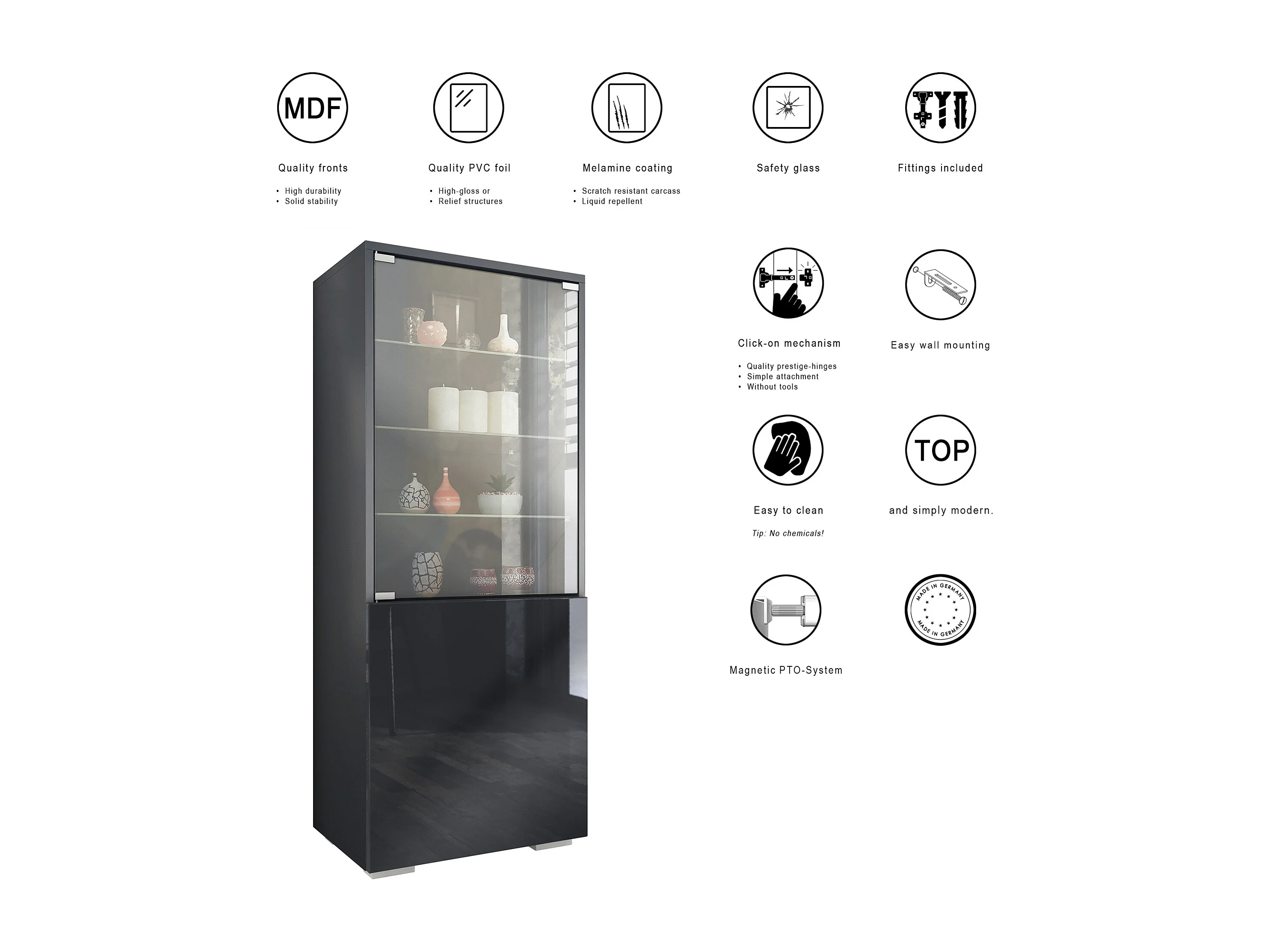 Vitrine Granada de , Armoire Vitrée Made in Germany avec Porte en Verre et Insert en Verre, anthracite mat/blanc mat (50 x 122,5 x 34,5 cm)