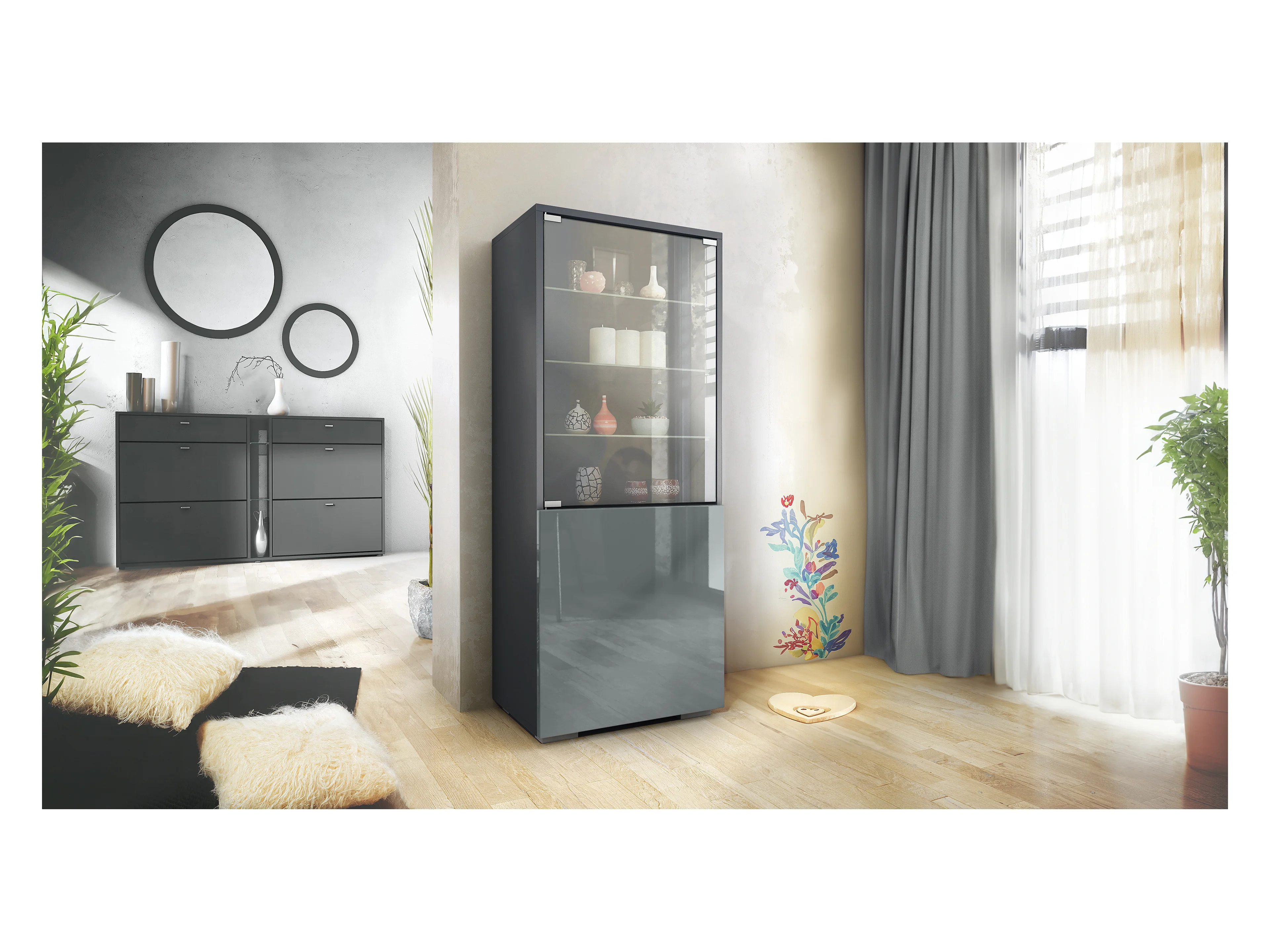 Vitrine Granada de , Armoire Vitrée Made in Germany avec Porte en Verre et Insert en Verre, anthracite mat/gris haute brillance (50 x 122,5 x 34,5 cm)