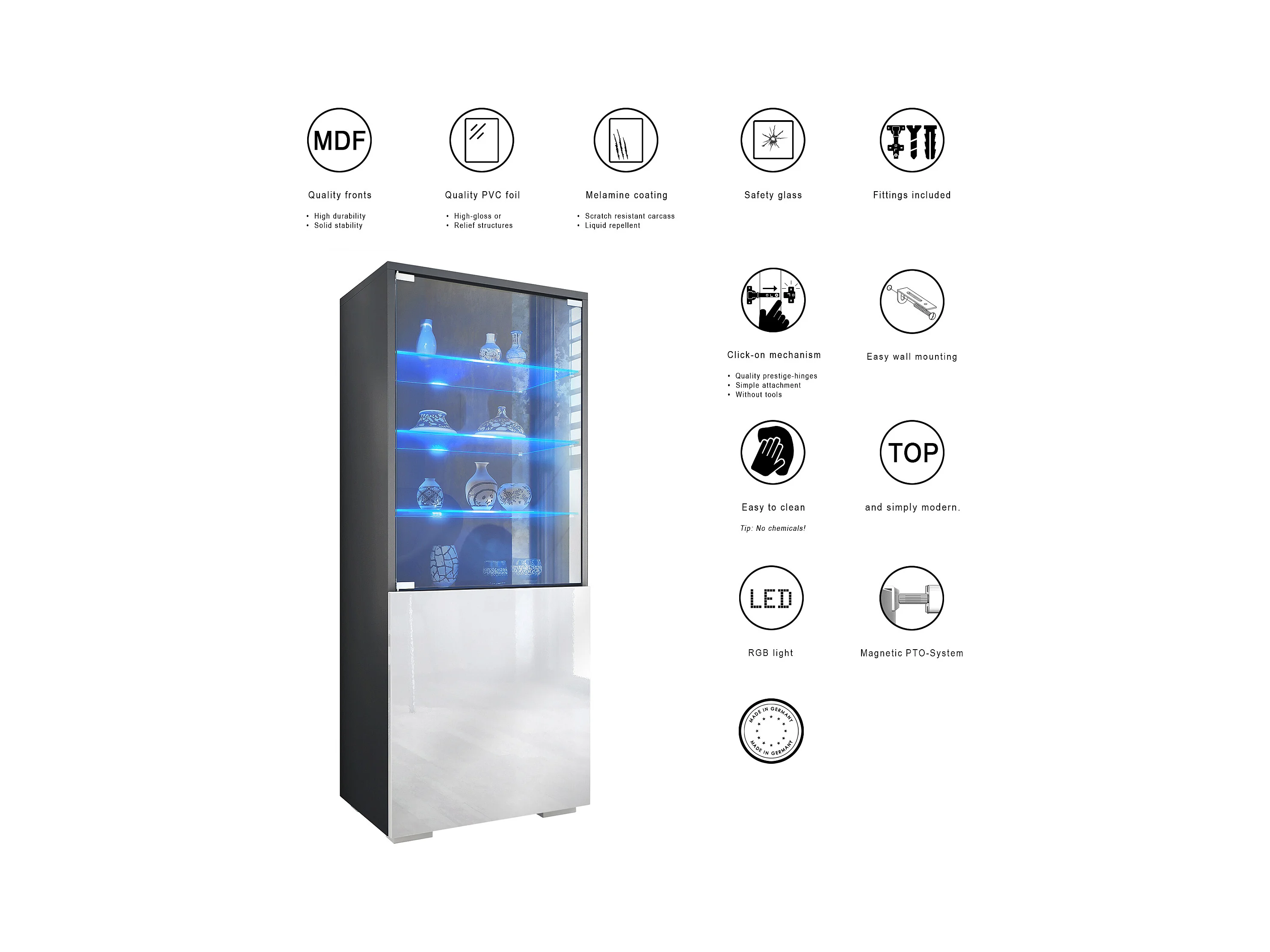 Vitrine Granada de , Armoire Vitrée Made in Germany avec Porte en Verre et Insert en Verre y compris LED, anthracite mat/denim mat (50 x 122,5 x 34,5 cm)