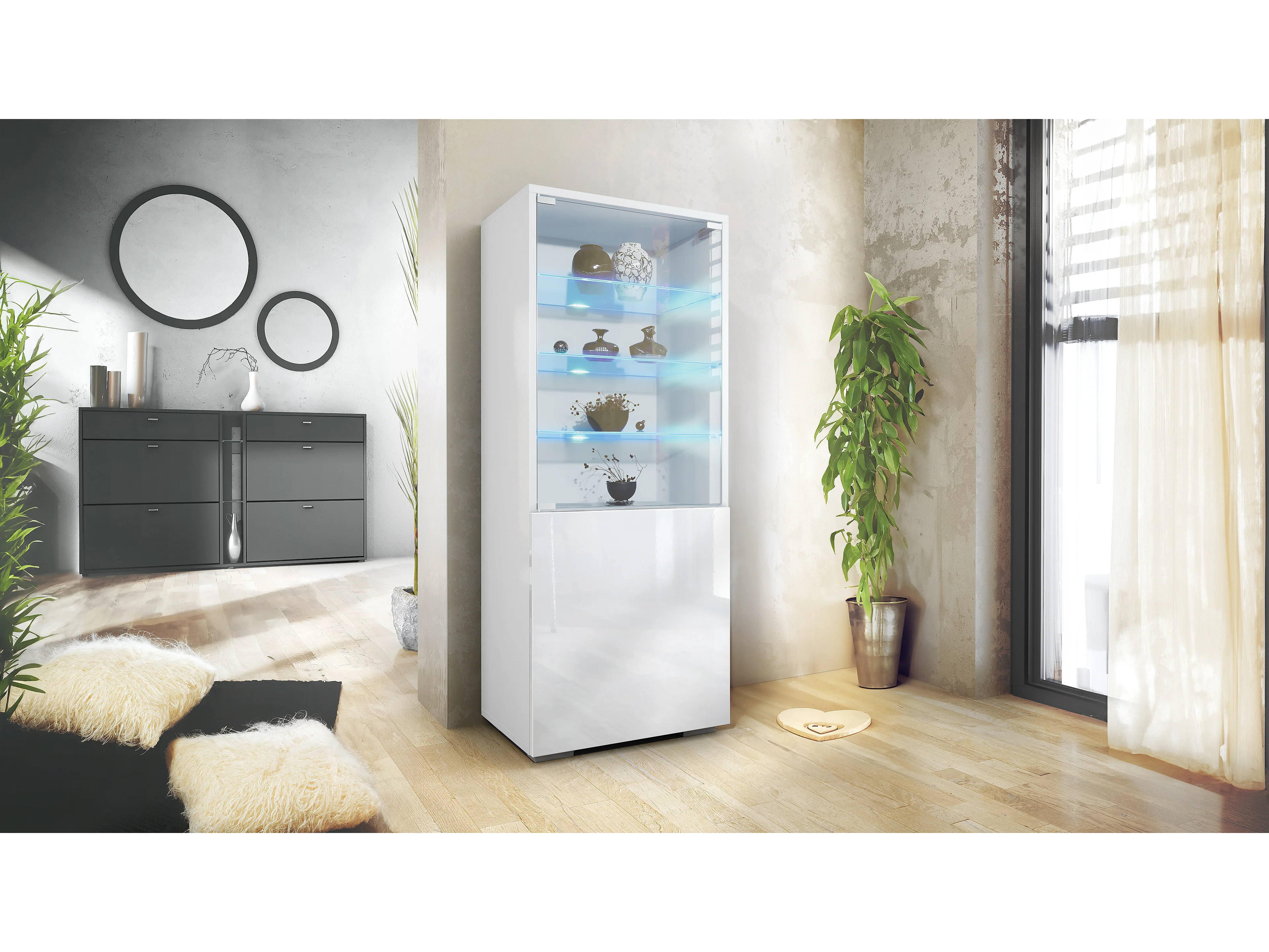 Vitrine Granada de , Armoire Vitrée Made in Germany avec Porte en Verre et Insert en Verre y compris LED, blanc mat/Blanc brillant (50 x 122,5 x 34,5 cm)