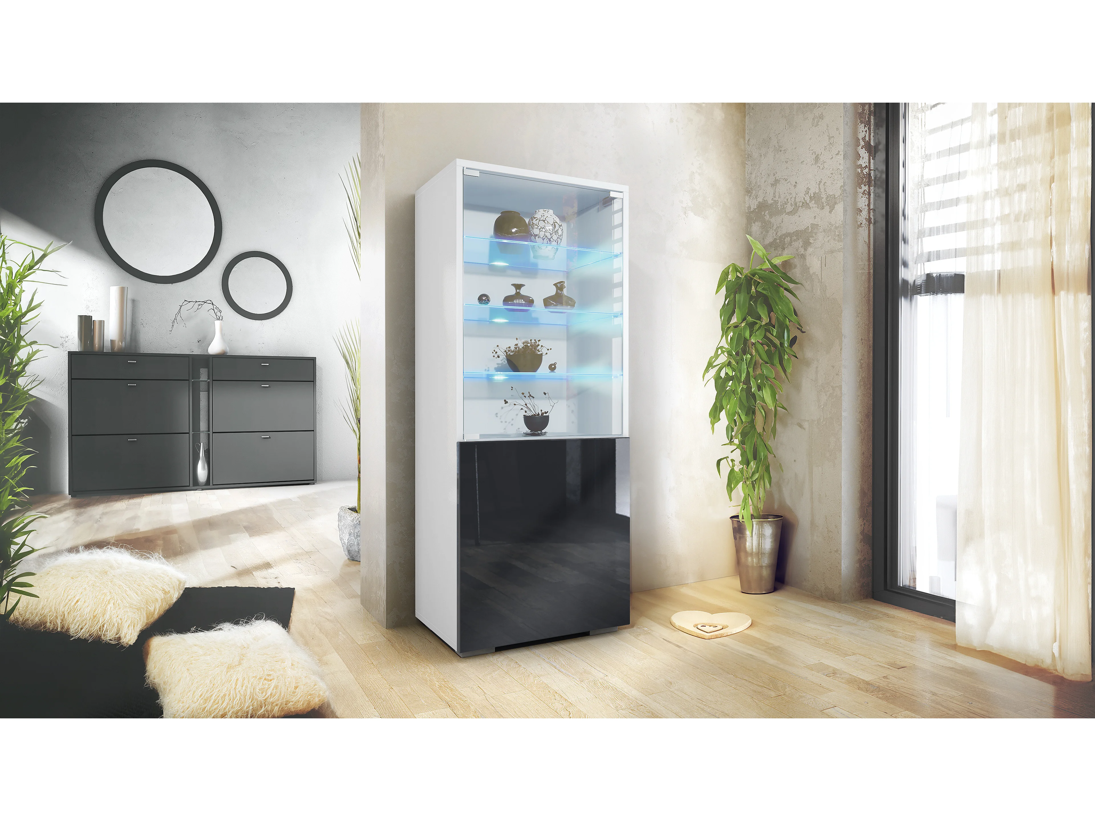 Vitrine Granada de , Armoire Vitrée Made in Germany avec Porte en Verre et Insert en Verre y compris LED, blanc mat/noir brillant (50 x 122,5 x 34,5 cm)