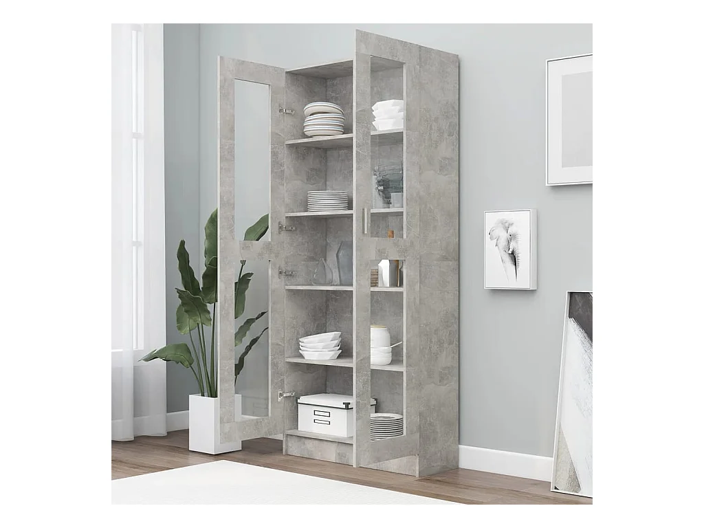 Vitrine Gris béton 82,5x30,5x185,5 cm Aggloméré OFR48870 BonneVie Meuble
