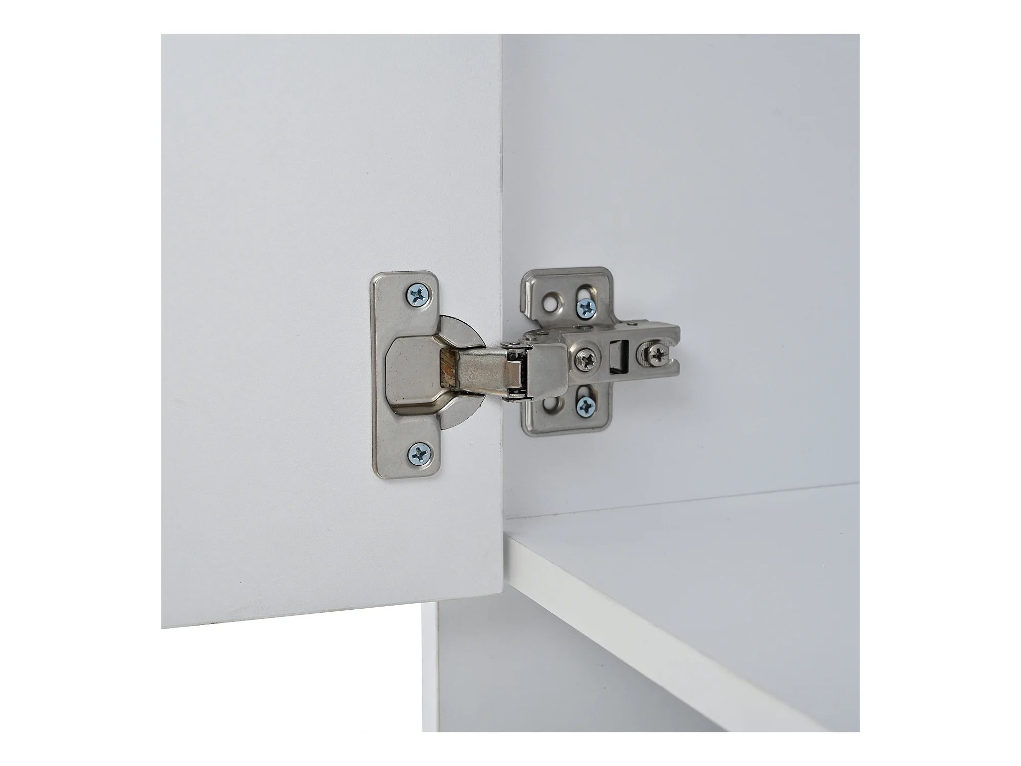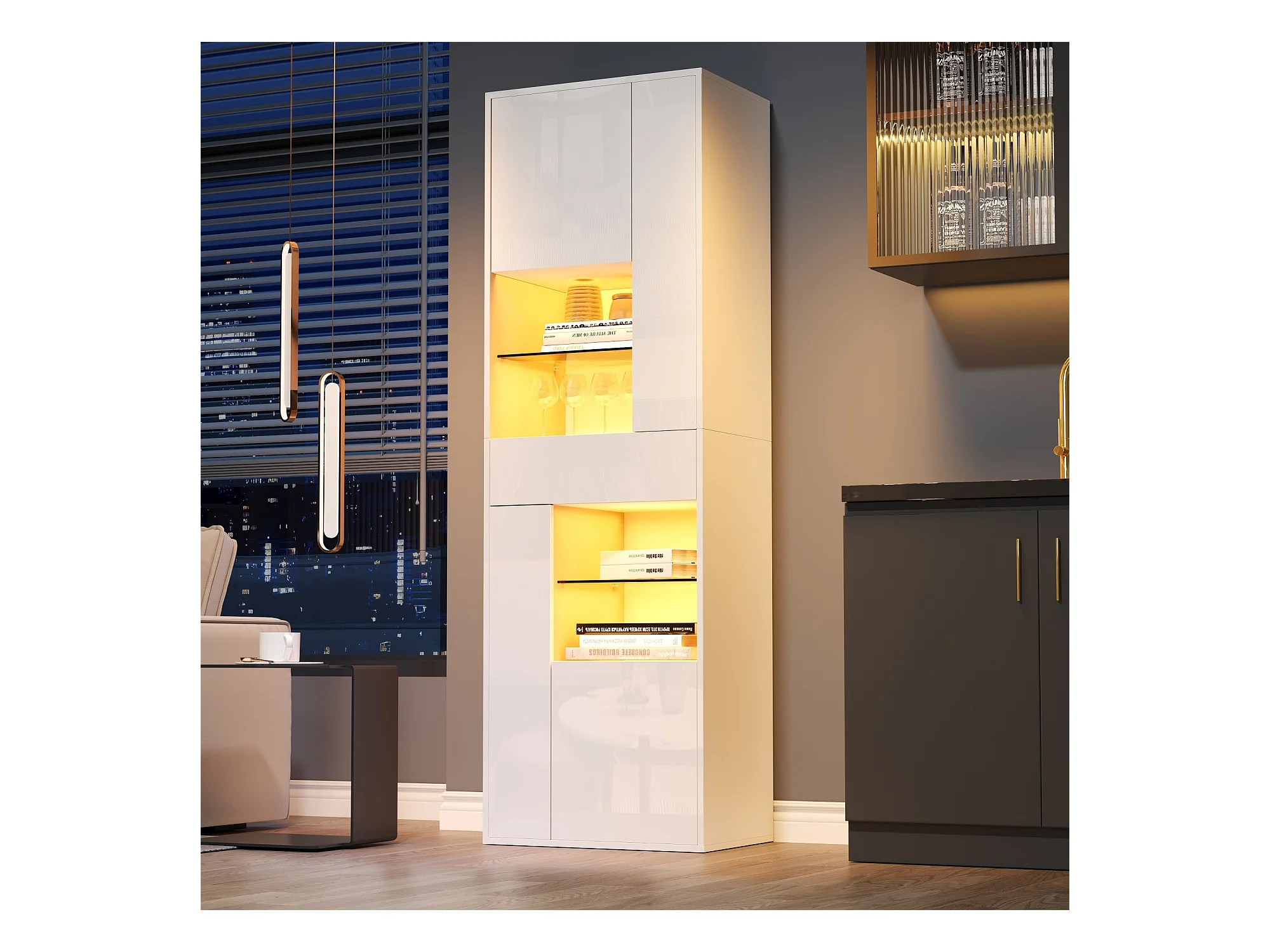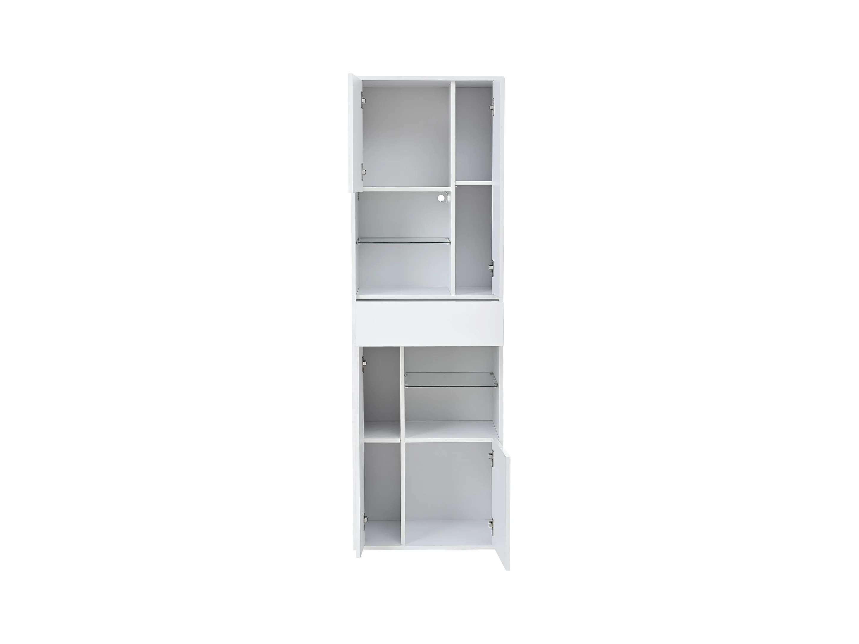Vitrine LED avec 1 tiroir de rangement et 4 portes, étagères en verre - blanc