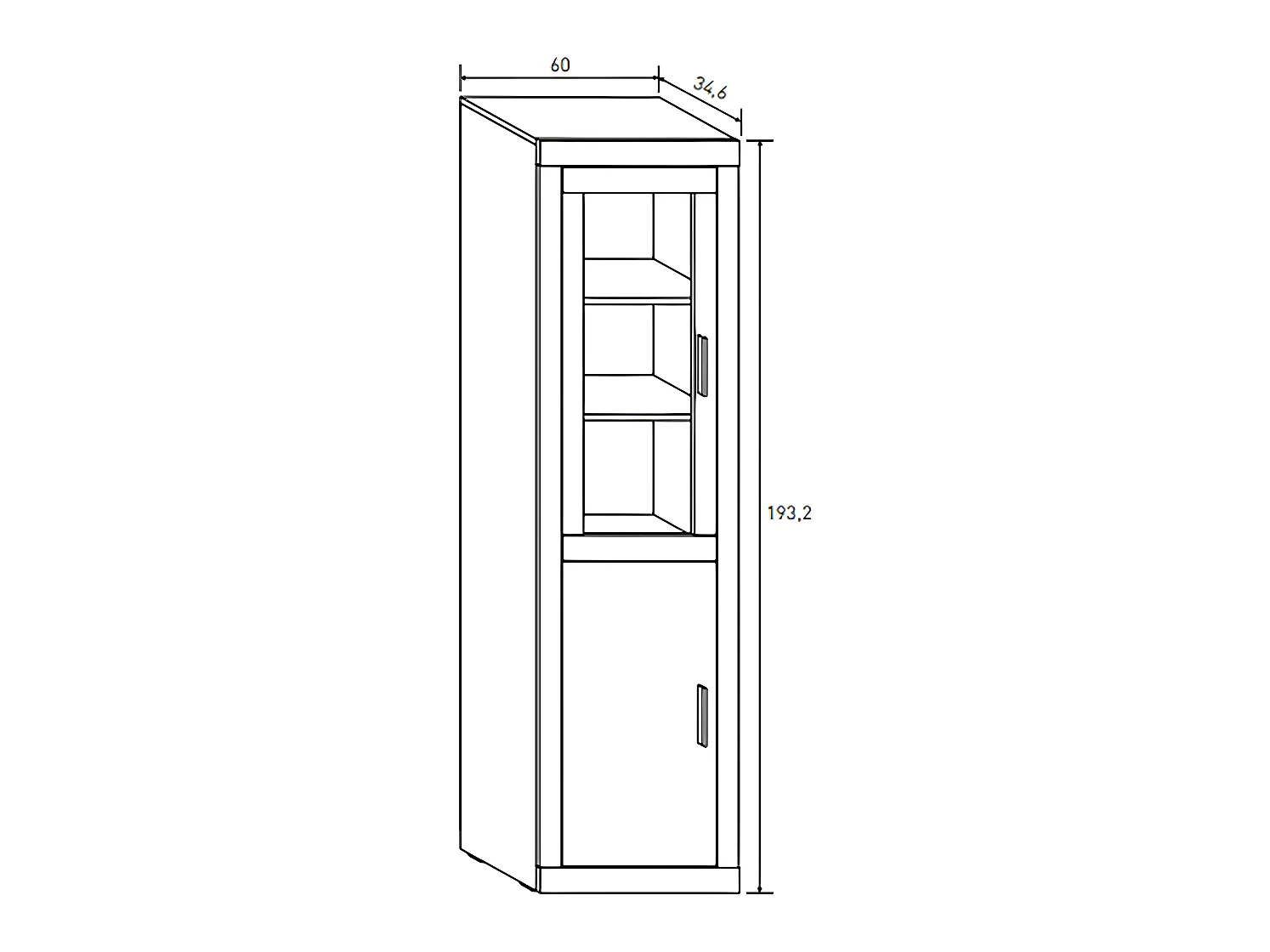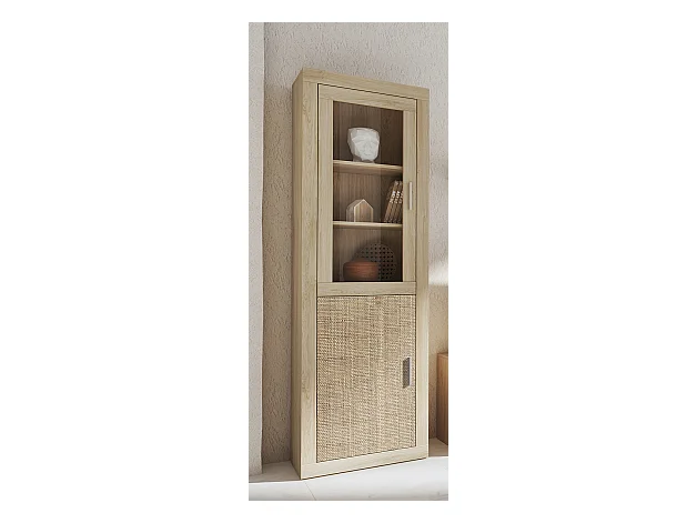 Vitrine, meuble de rangement coloris chêne cambrian, effet textile - Longueur 60 x profondeur 34,60 x hauteur 193 cm