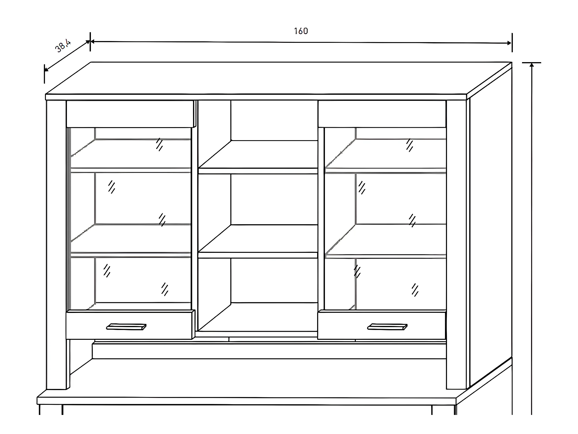Vitrine, meuble de rangement coloris Chêne truffé, blanc vieilli - Longueur 160 x profondeur 38,4 x hauteur 107,3 cm