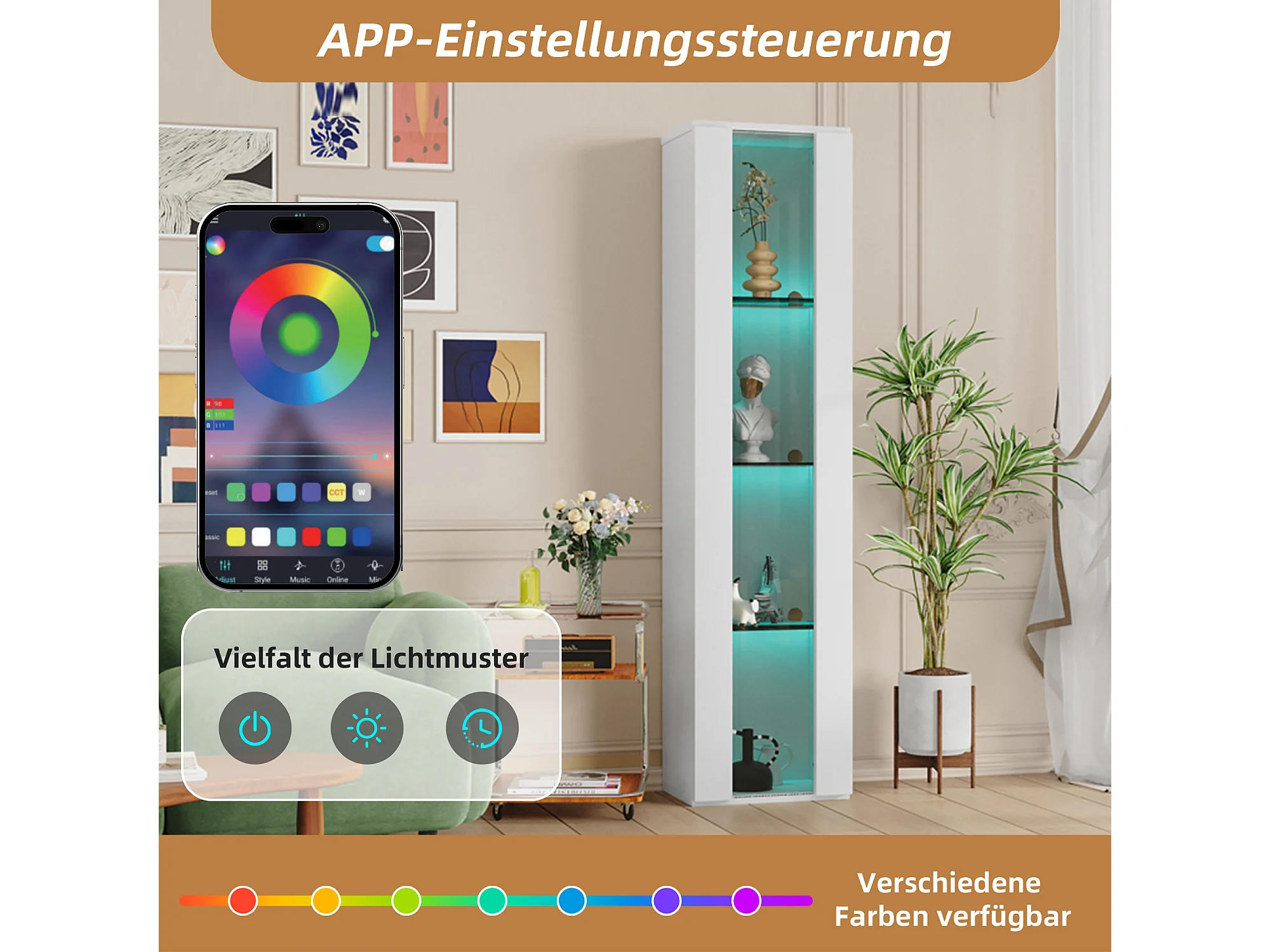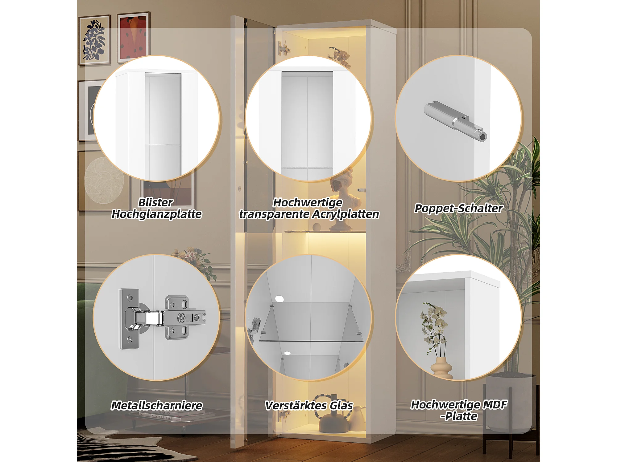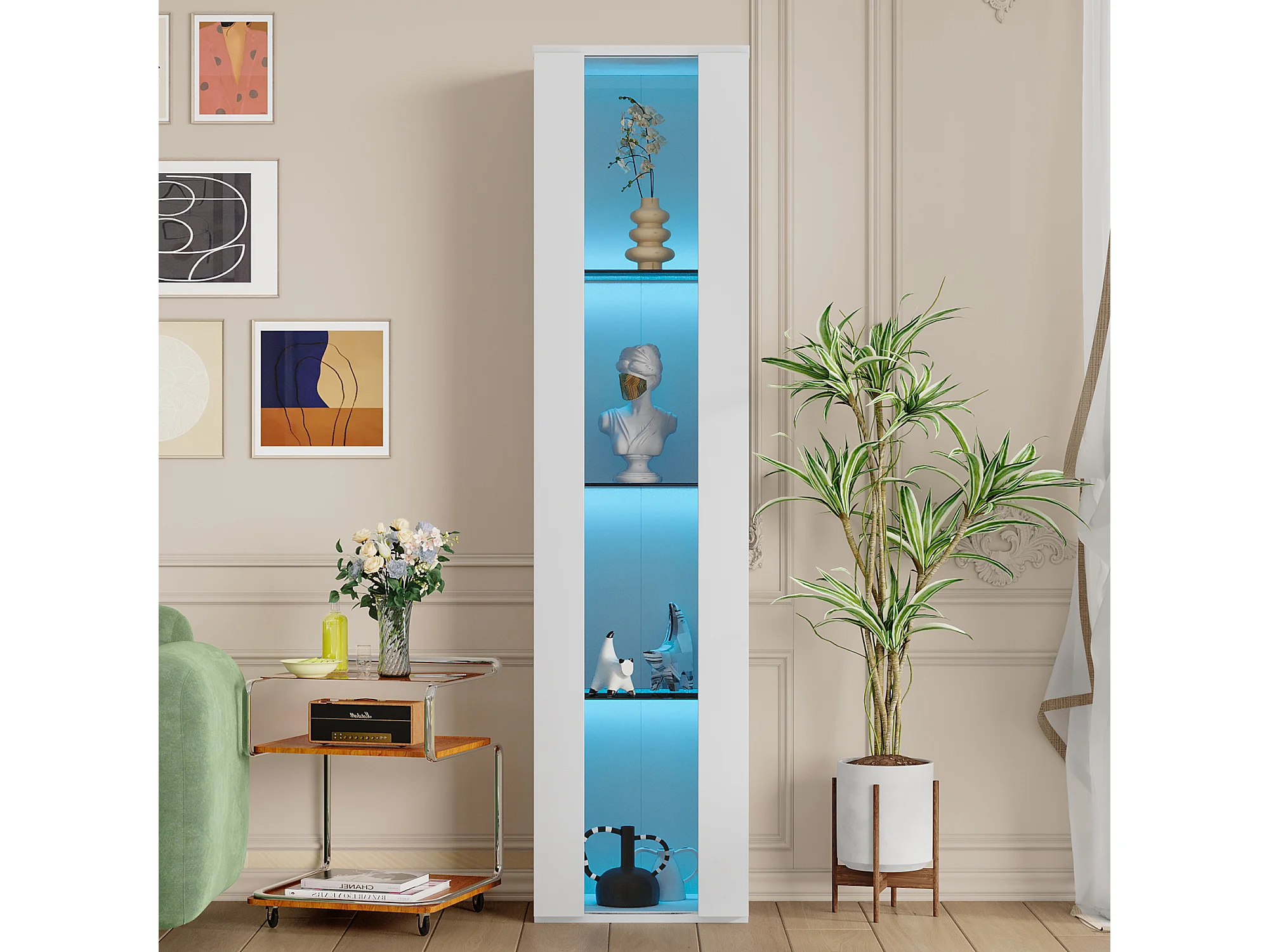 Vitrine haute brillance 55x38x170 cm - 1 tiroir et 4 portes - avec éclairage LED - Blanc