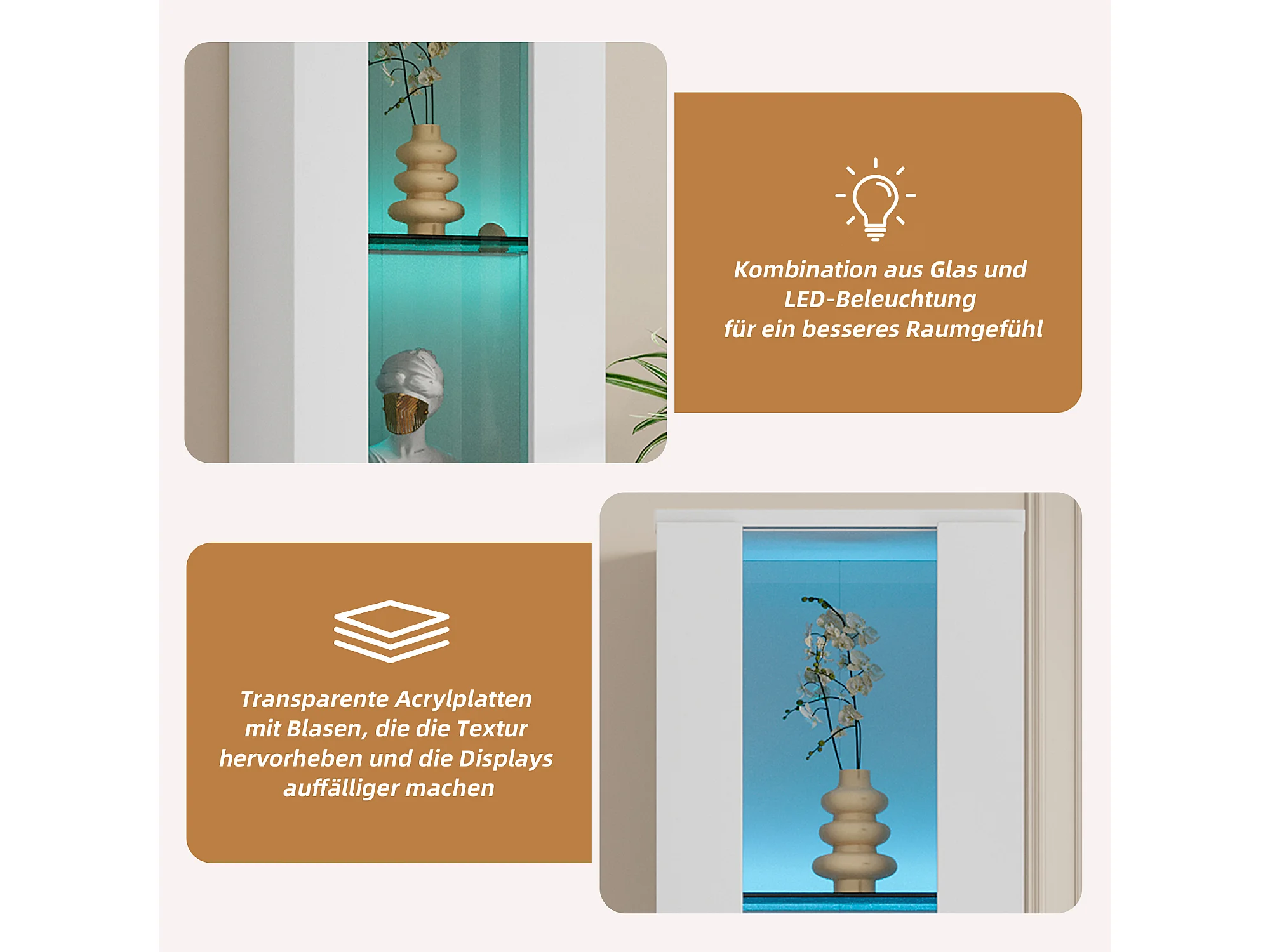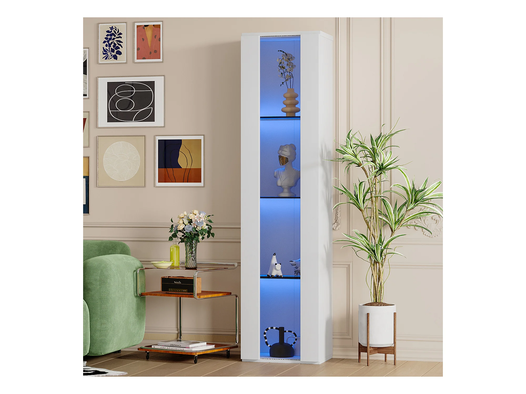 Vitrine multifonctionnelle - 40 x 29 x 170 cm - avec porte en verre + Leds - PB + Verre - blanc