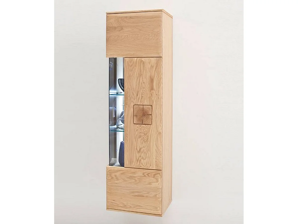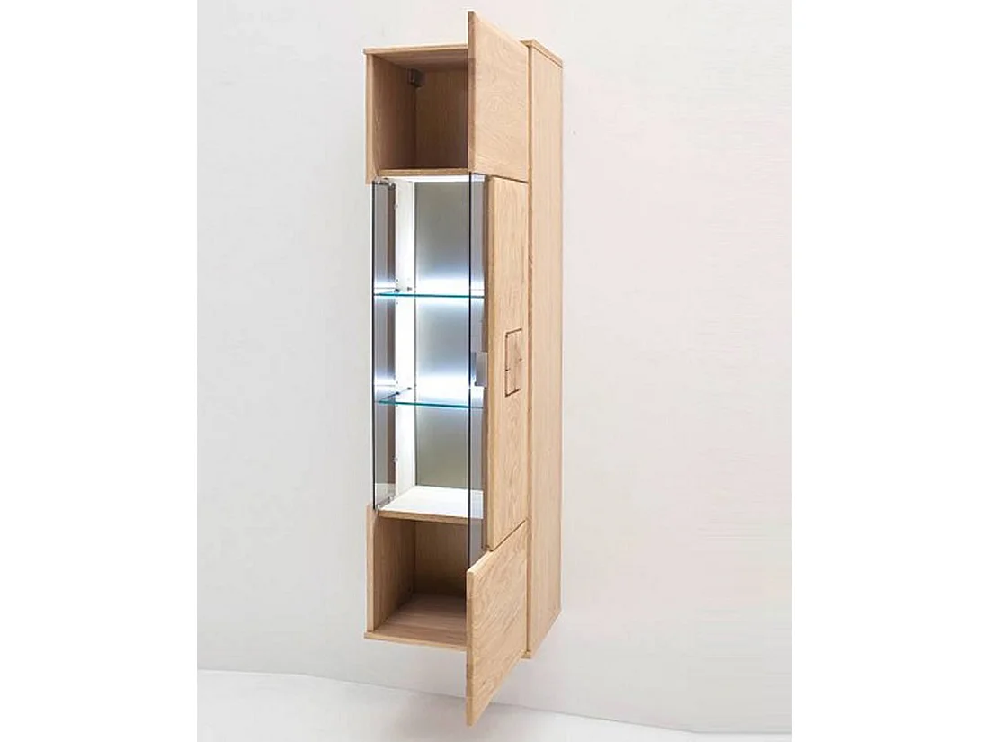 Vitrine murale en chêne massif bianco avec LED - L.45 x H.157 x P.38 cm