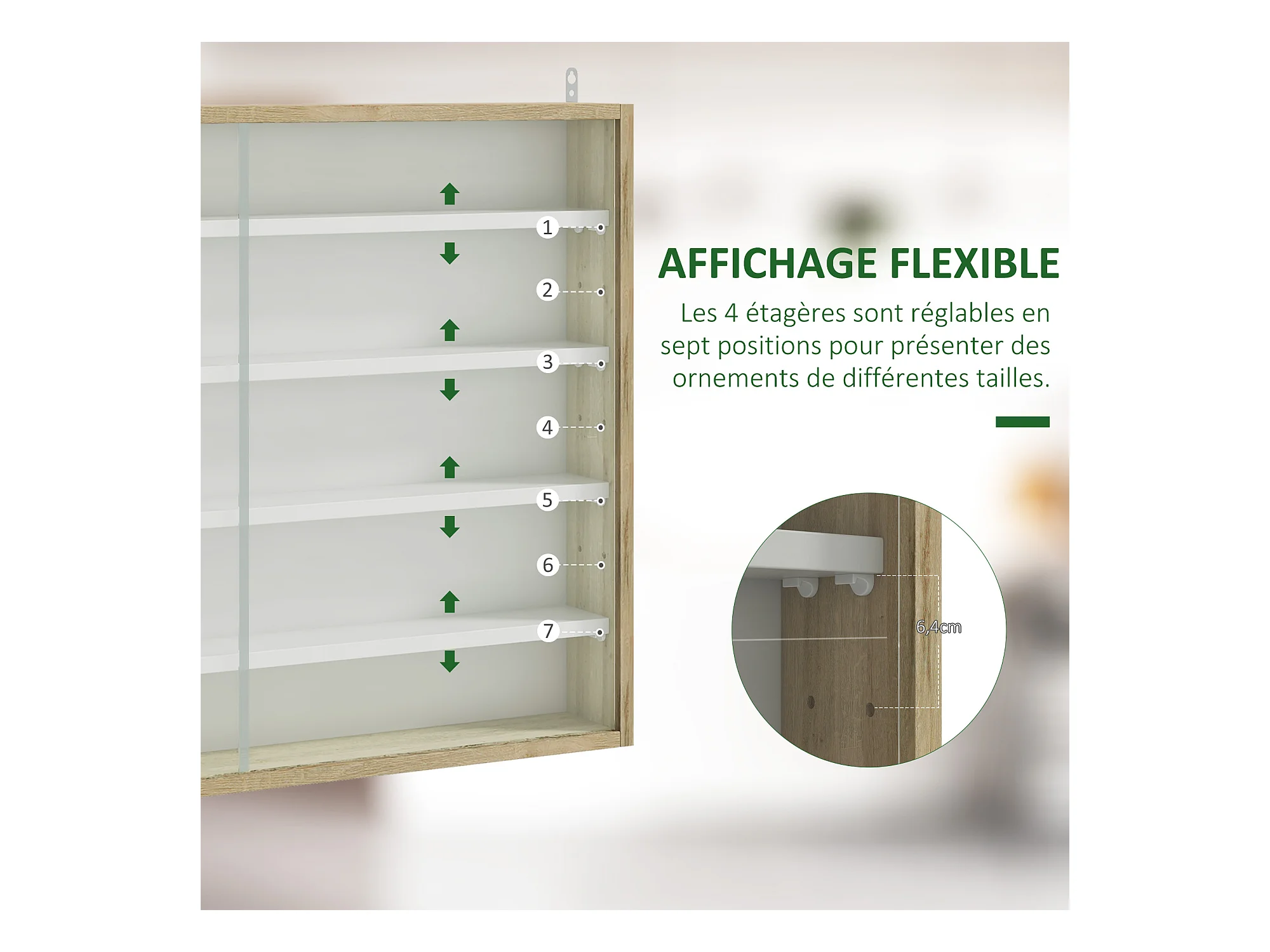 Vitrine suspendue avec 2 portes & 2 étagères en verre réglables en hauteur - 80x60x25 cm - Couleur hêtre