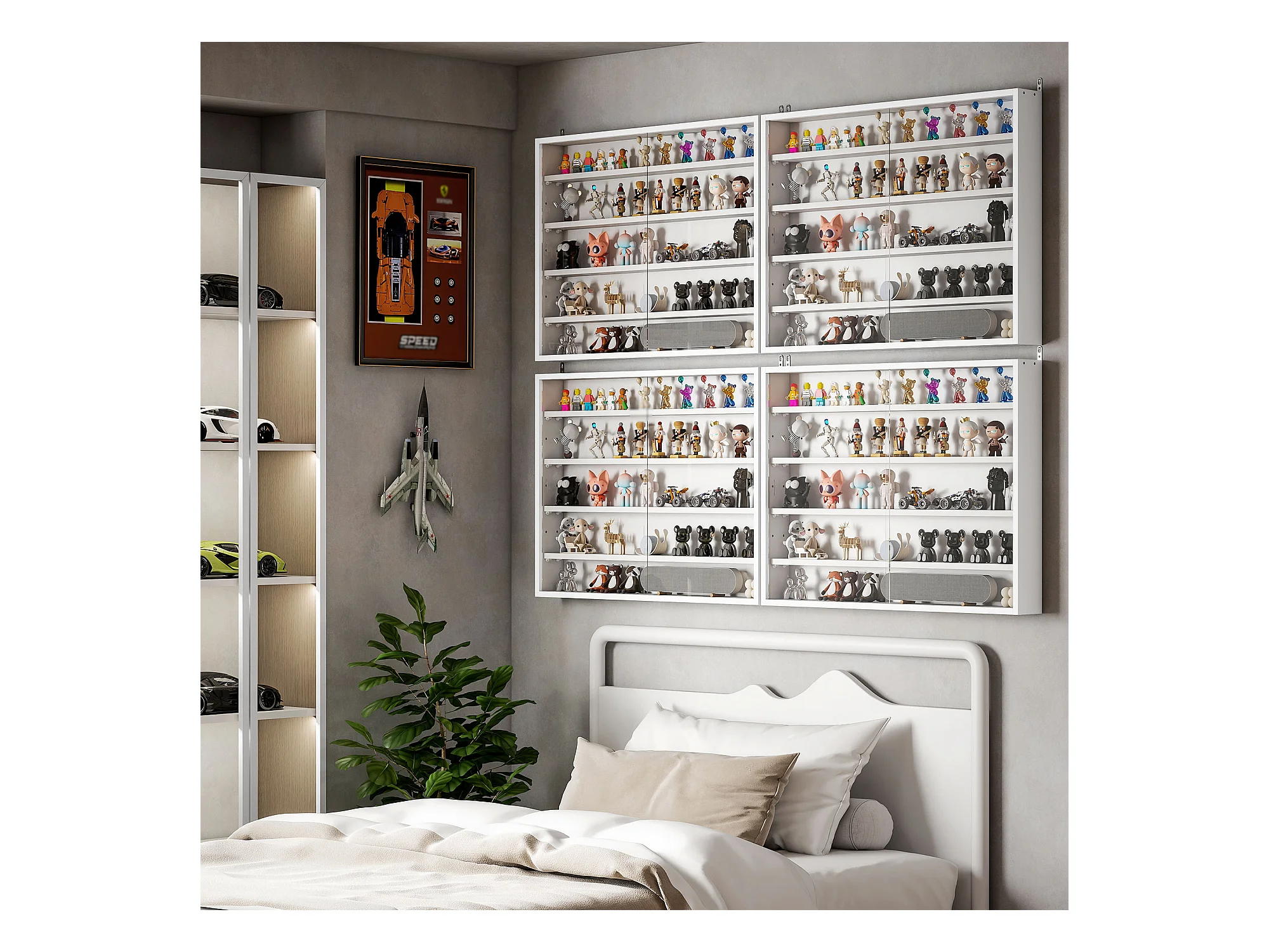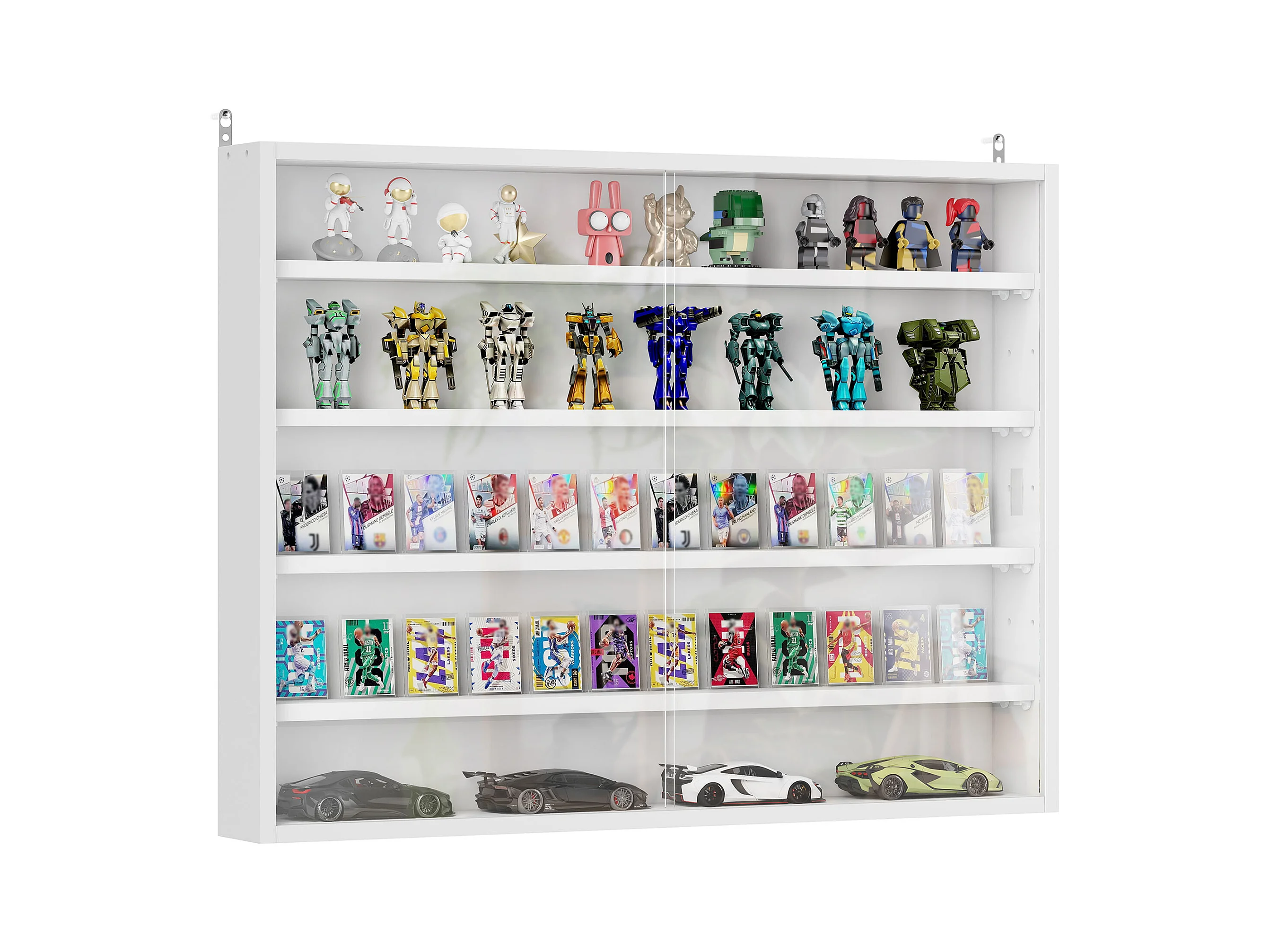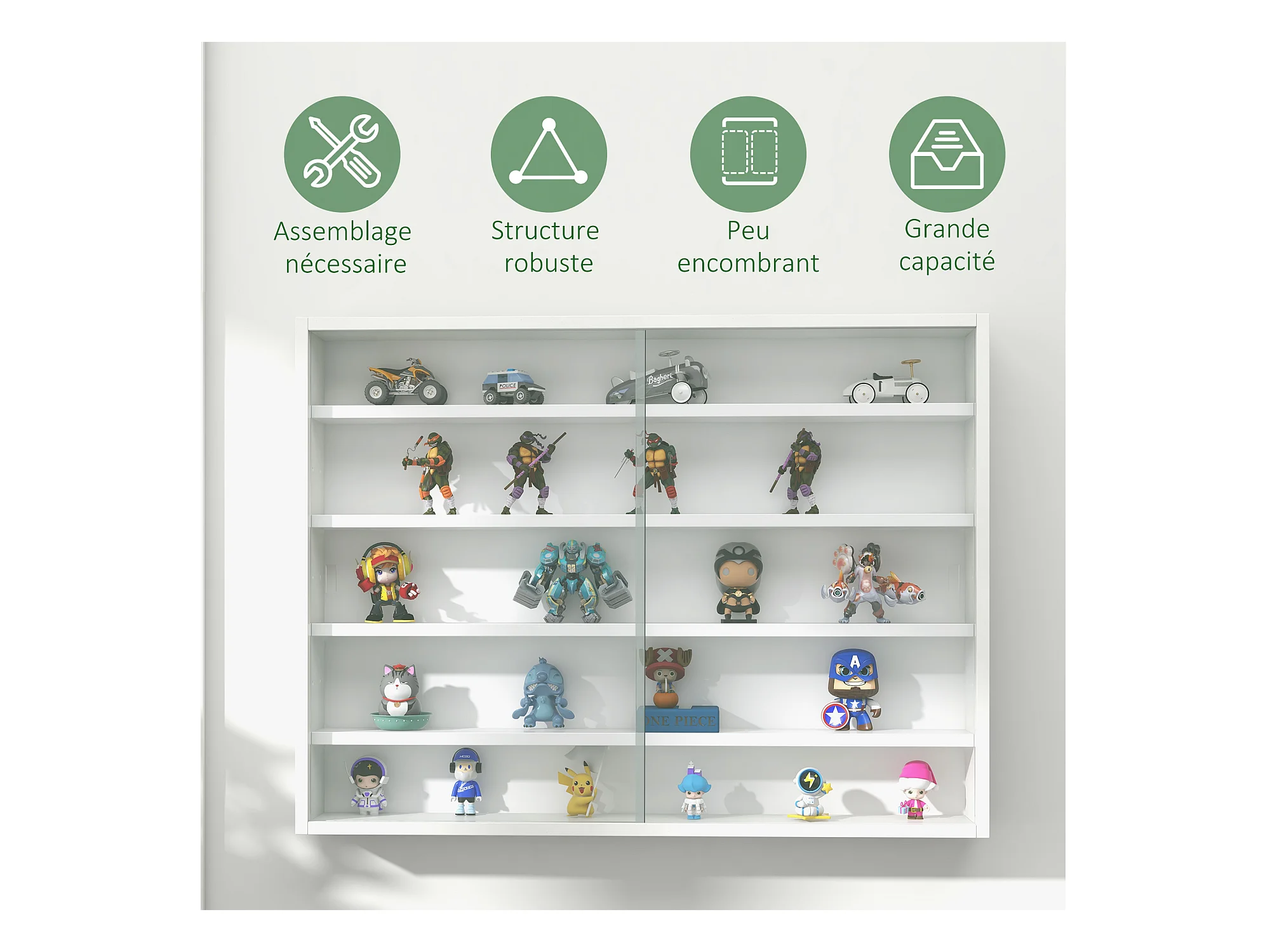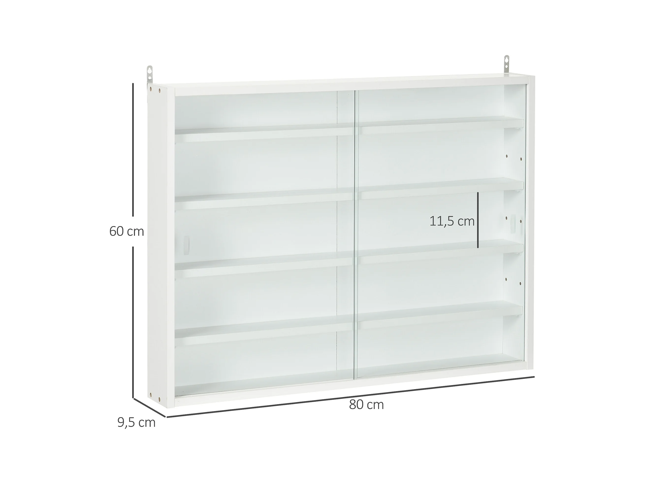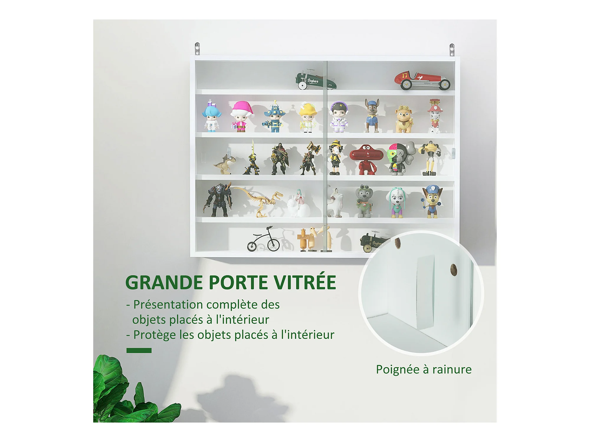 Vitrine murale étagère - 5 étagères réglables - 2 portes coulissantes verre - panneaux blanc