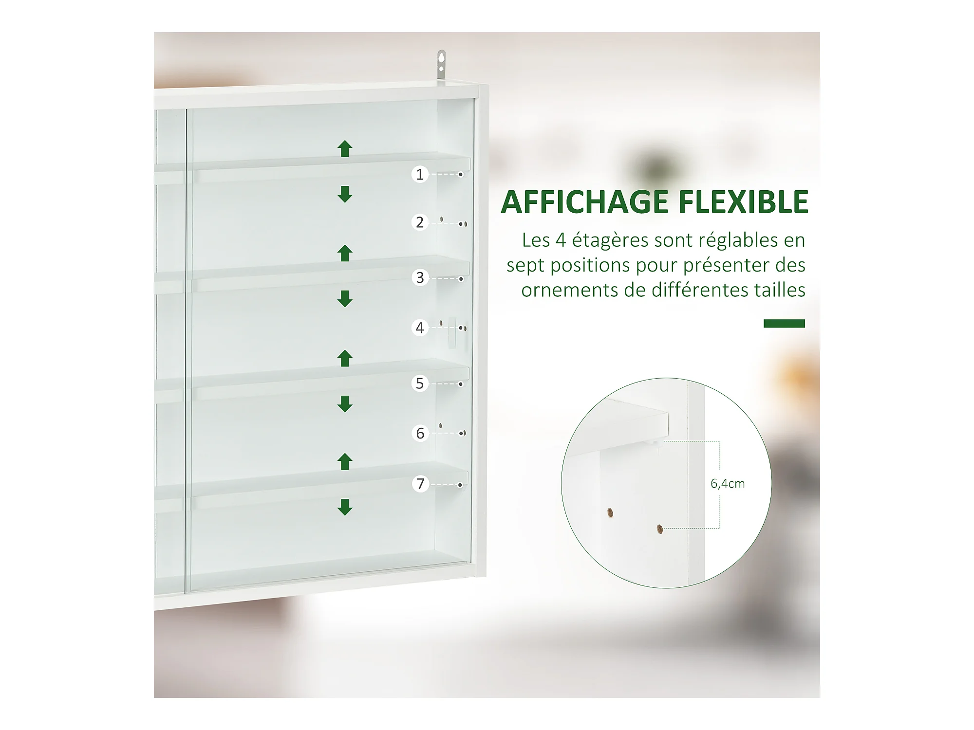 Vitrine en Verre 4 étagères, 2 Portes et Serrure, 164 x 80 x 36 cm, Blanc