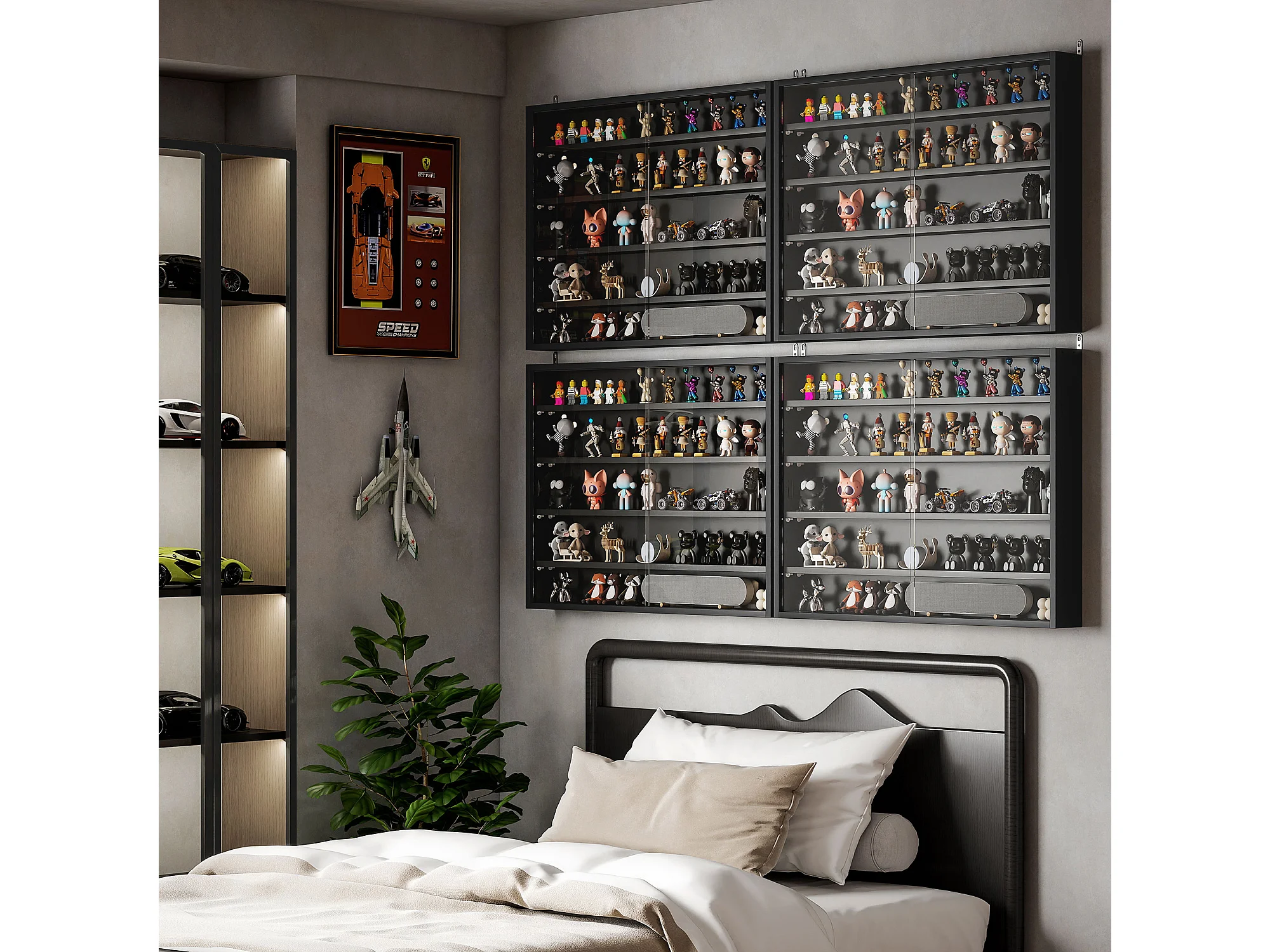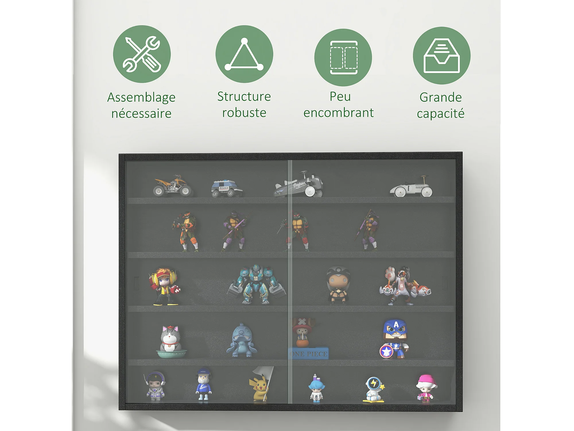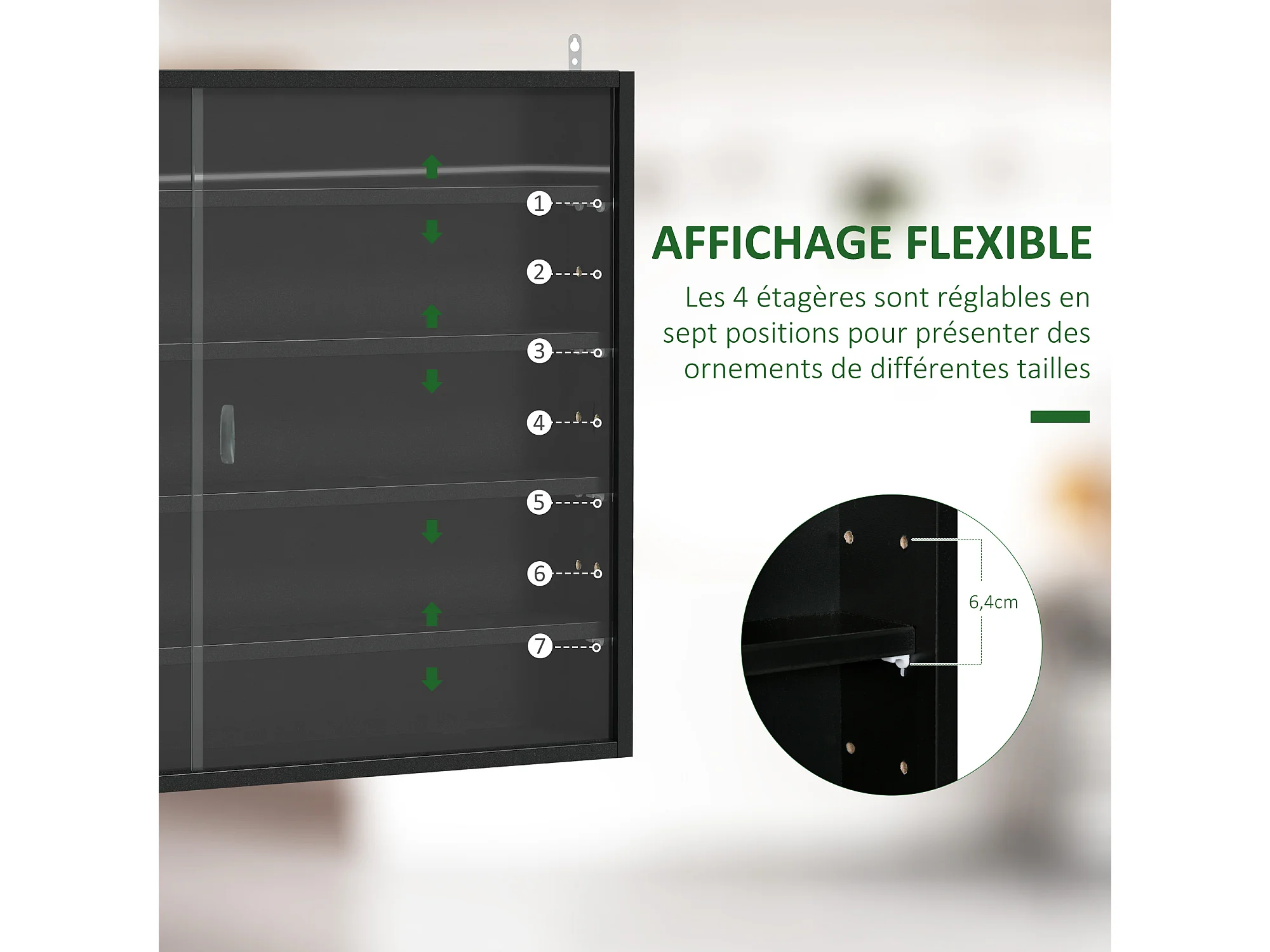 Vitrine murale étagère - 5 étagères réglables - 2 portes coulissantes verre - panneaux noir