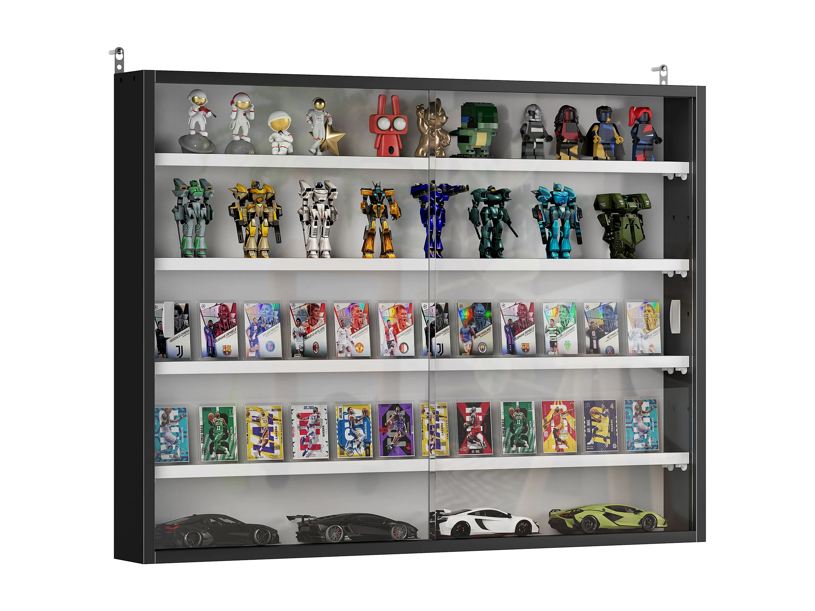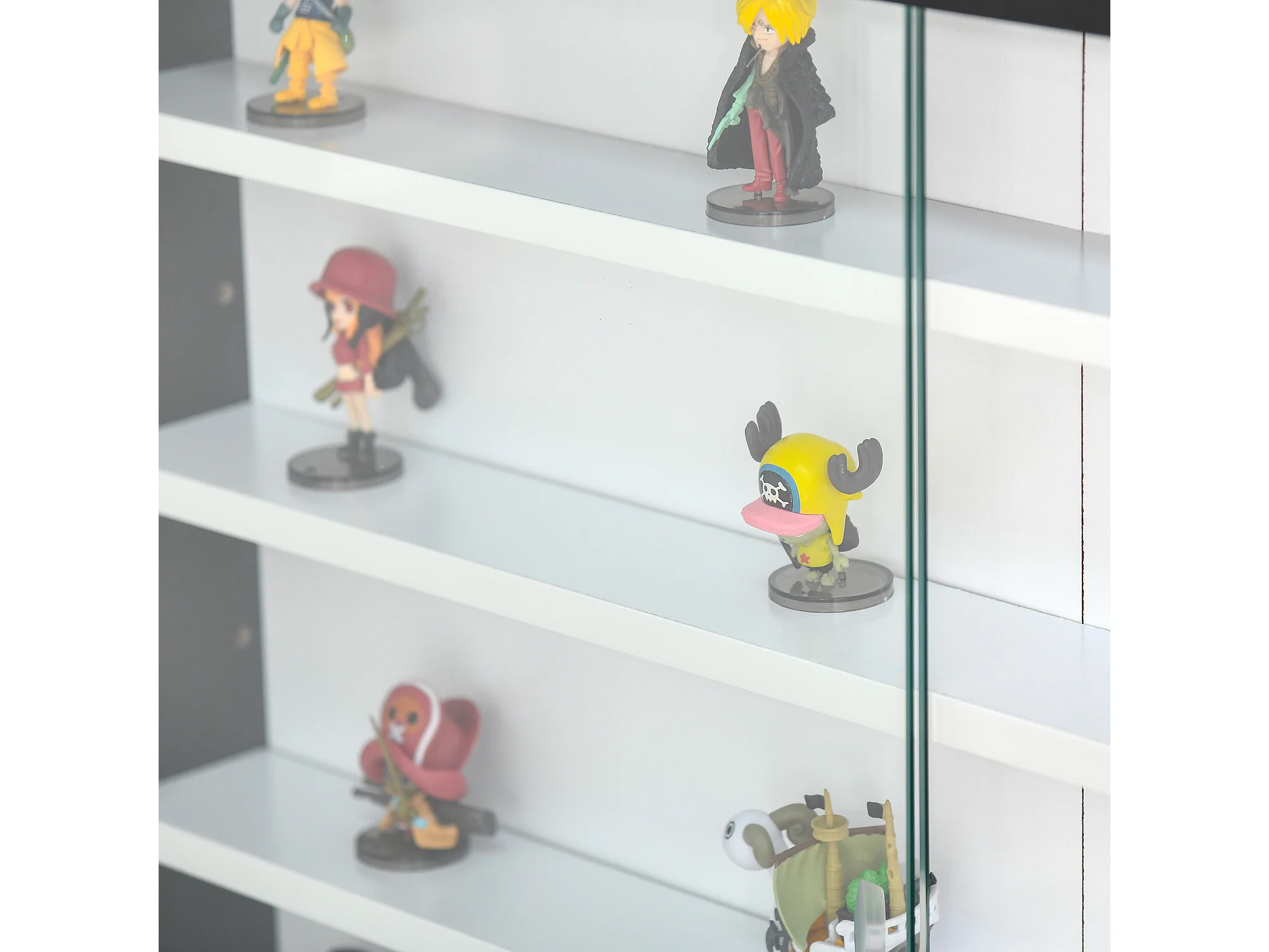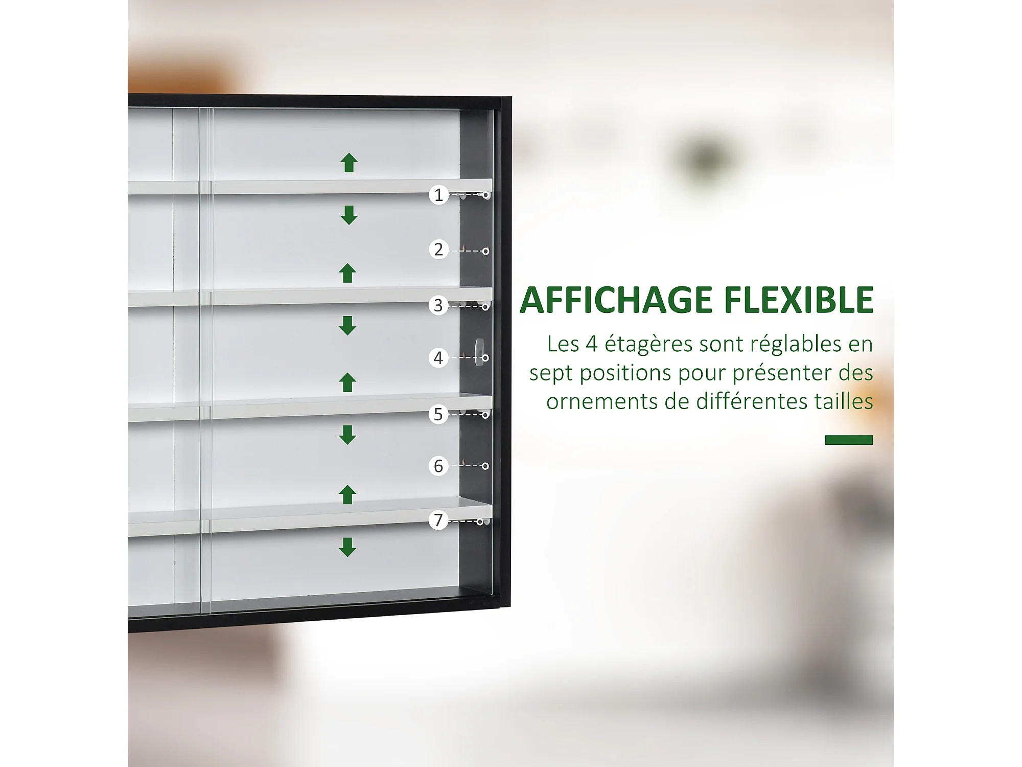 Vitrine en verre avec 4 étagères, vitrine à 2 portes avec lumière et serrure, noir