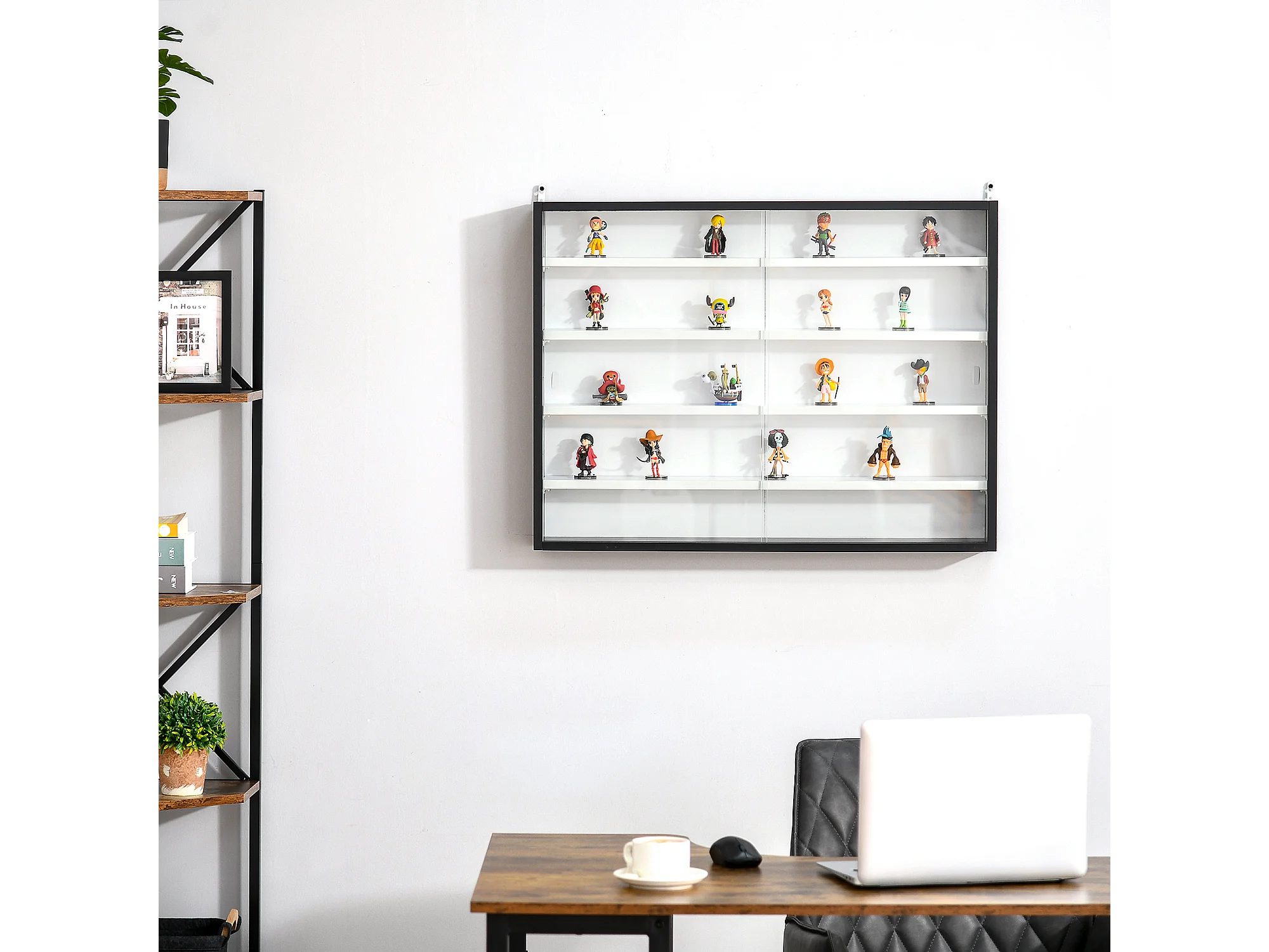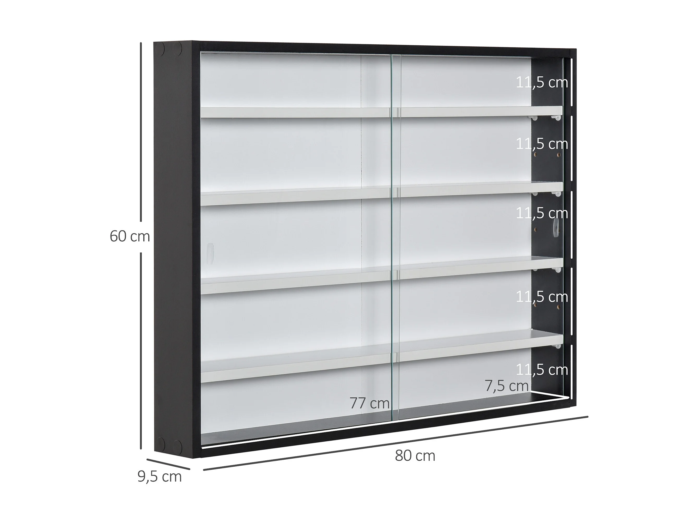 Vitrine murale étagère - 5 étagères réglables - 2 portes coulissantes verre - panneaux noir blanc