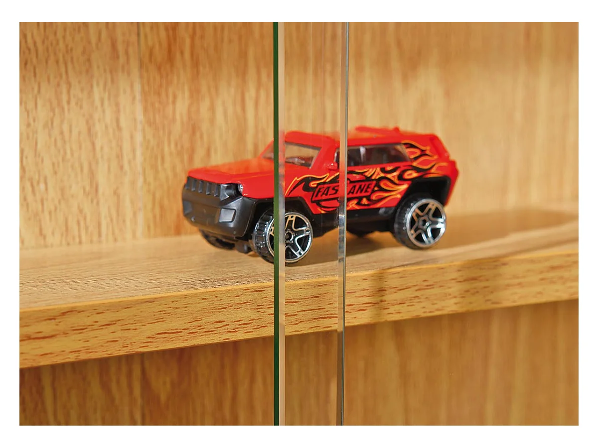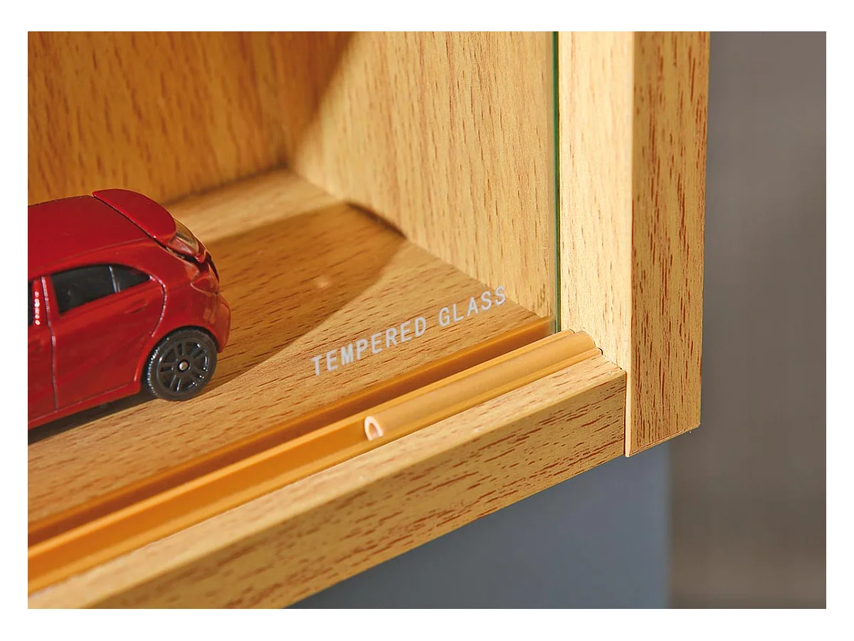 Vitrine décor bois avec vitrage verre trempé et poignées métal - SHERA