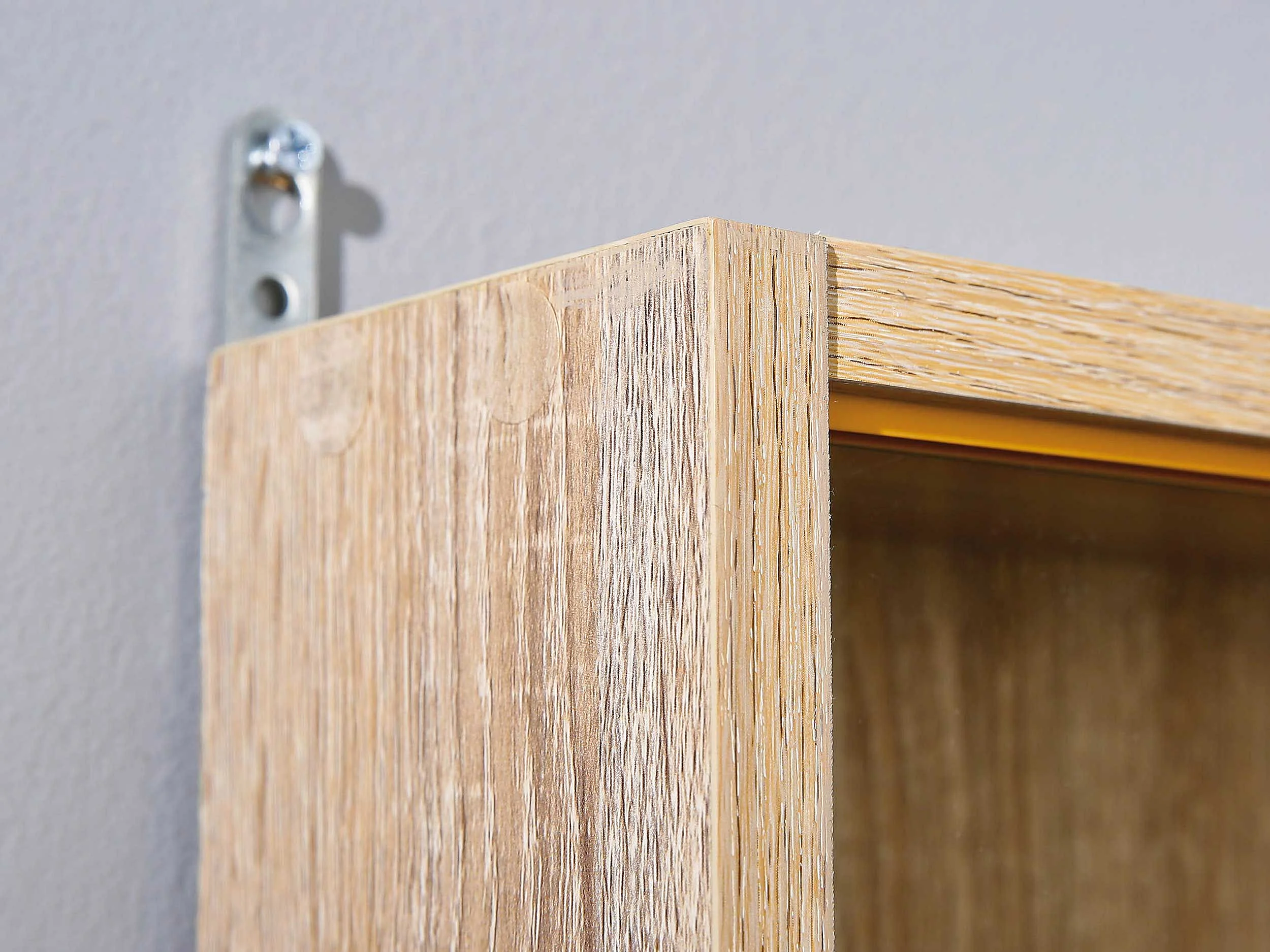 Vitrine murale pour miniatures en panneaux de particules coloris sonoma, L80 x P9,5 x H60 cm