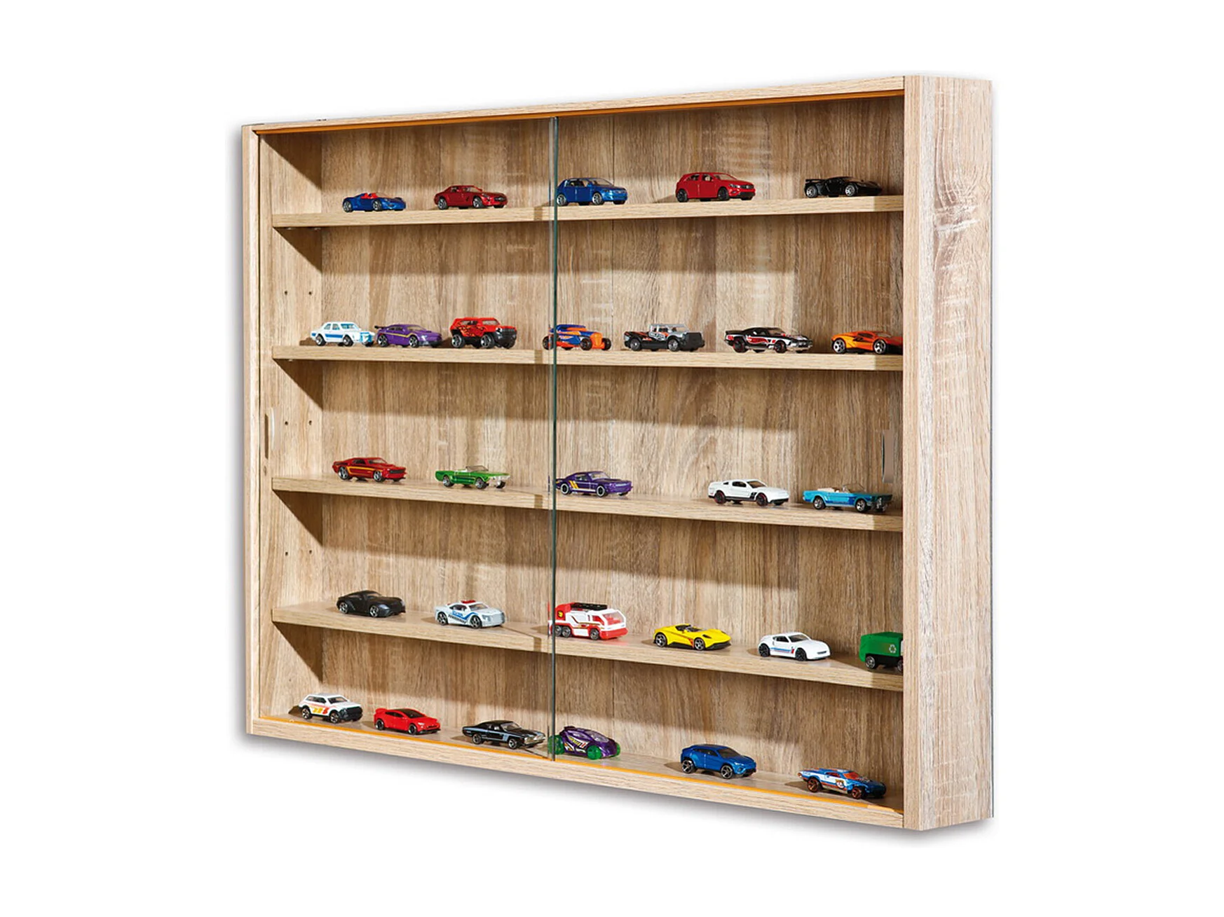 Vitrine murale pour miniatures en panneaux de particules coloris sonoma, L80 x P9,5 x H60 cm