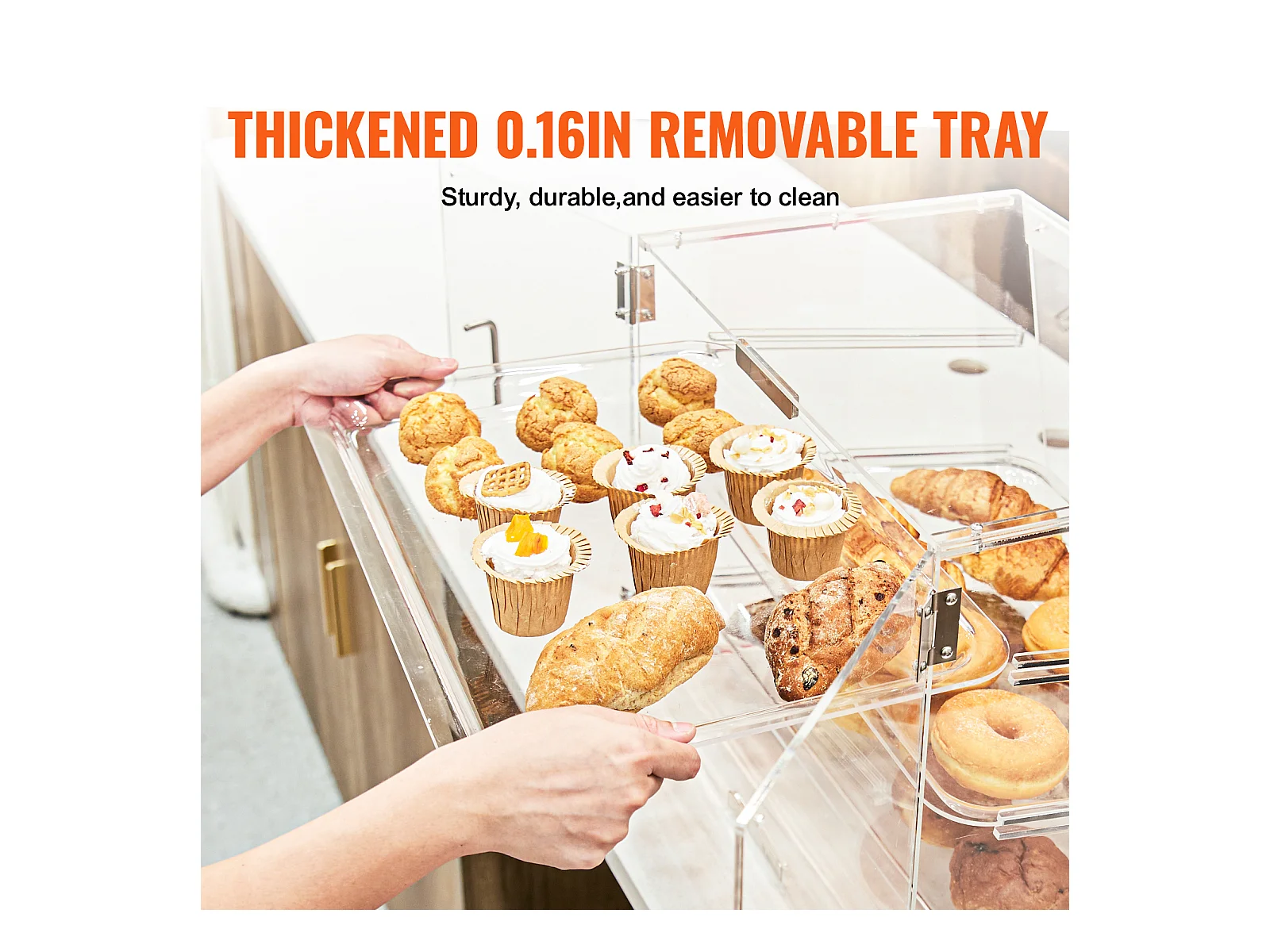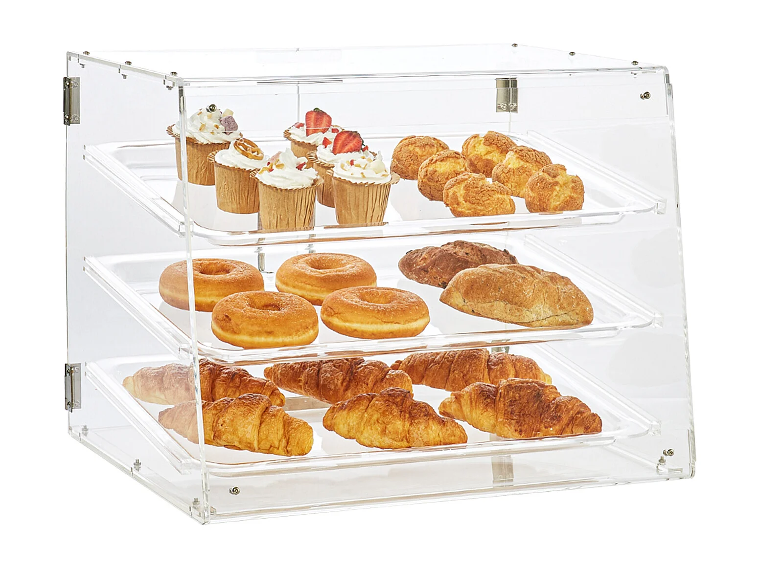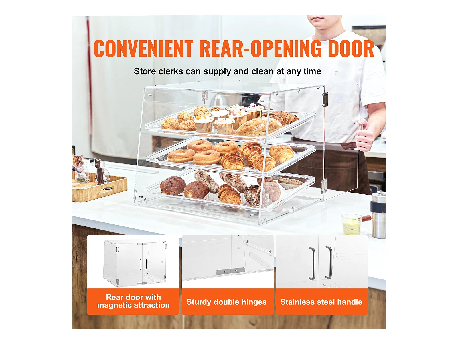 Vitrine SucceBuy de Boulangerie en Acrylique à 3 Niveaux, Vitrine de Comptoir pour Pâtisseries et Beignets, Porte Arrière