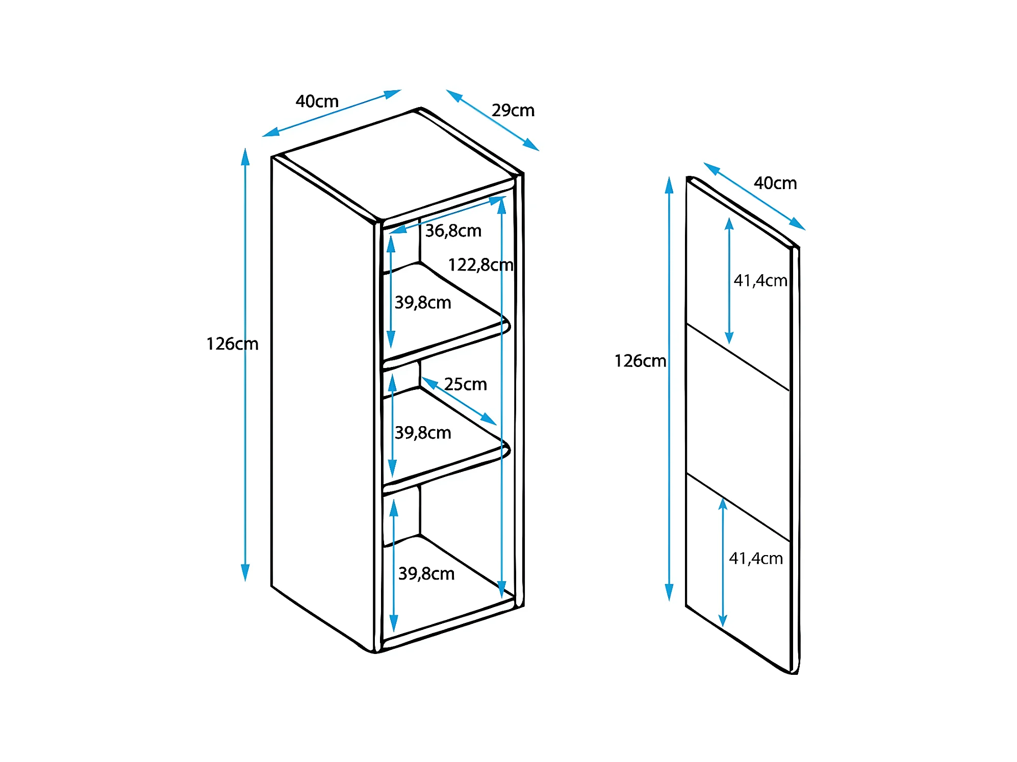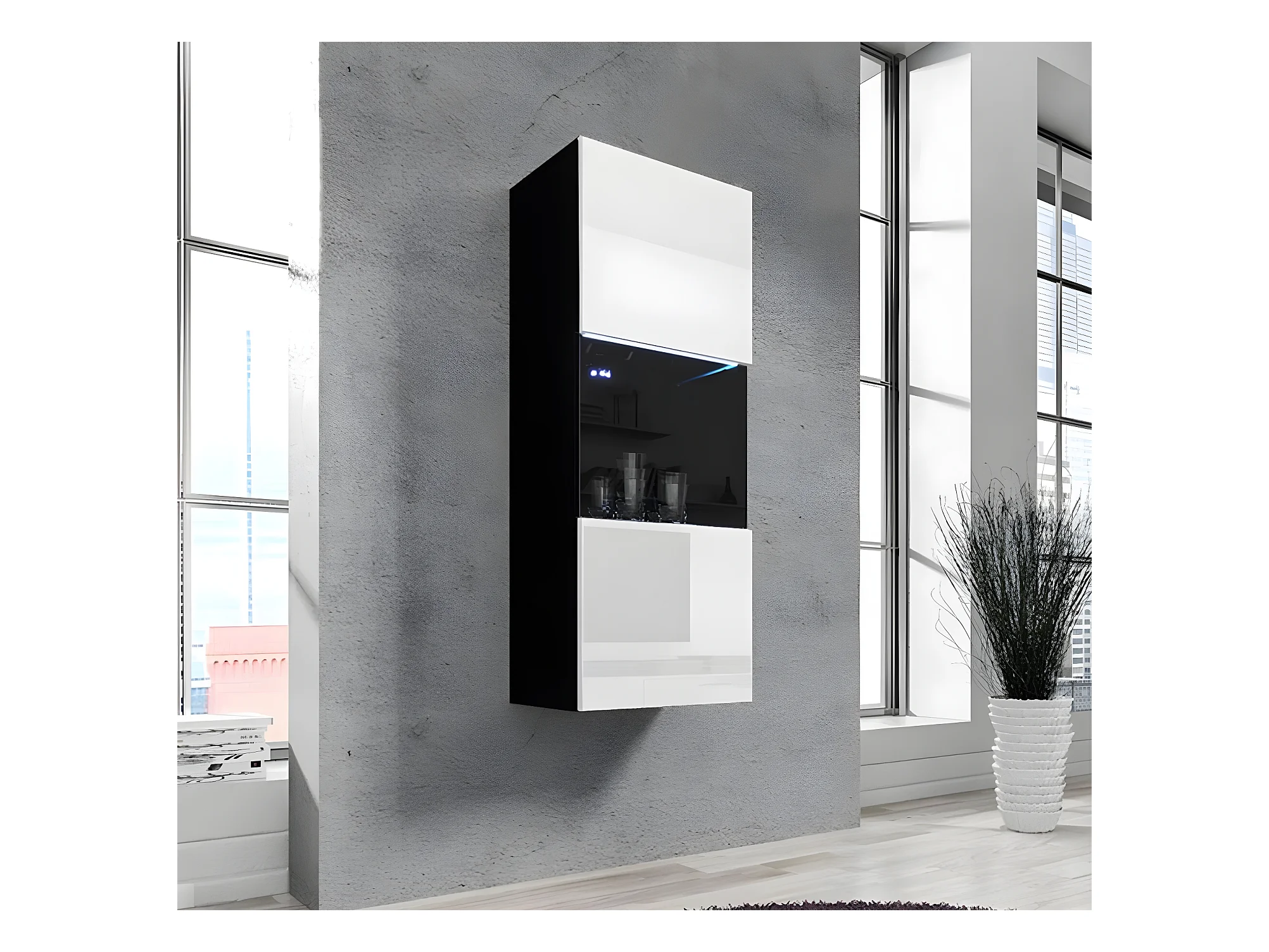 Vitrine suspendue pour Salon Salle à manger en Noir et Blanc avec LED 40x29x126cm Nora V3