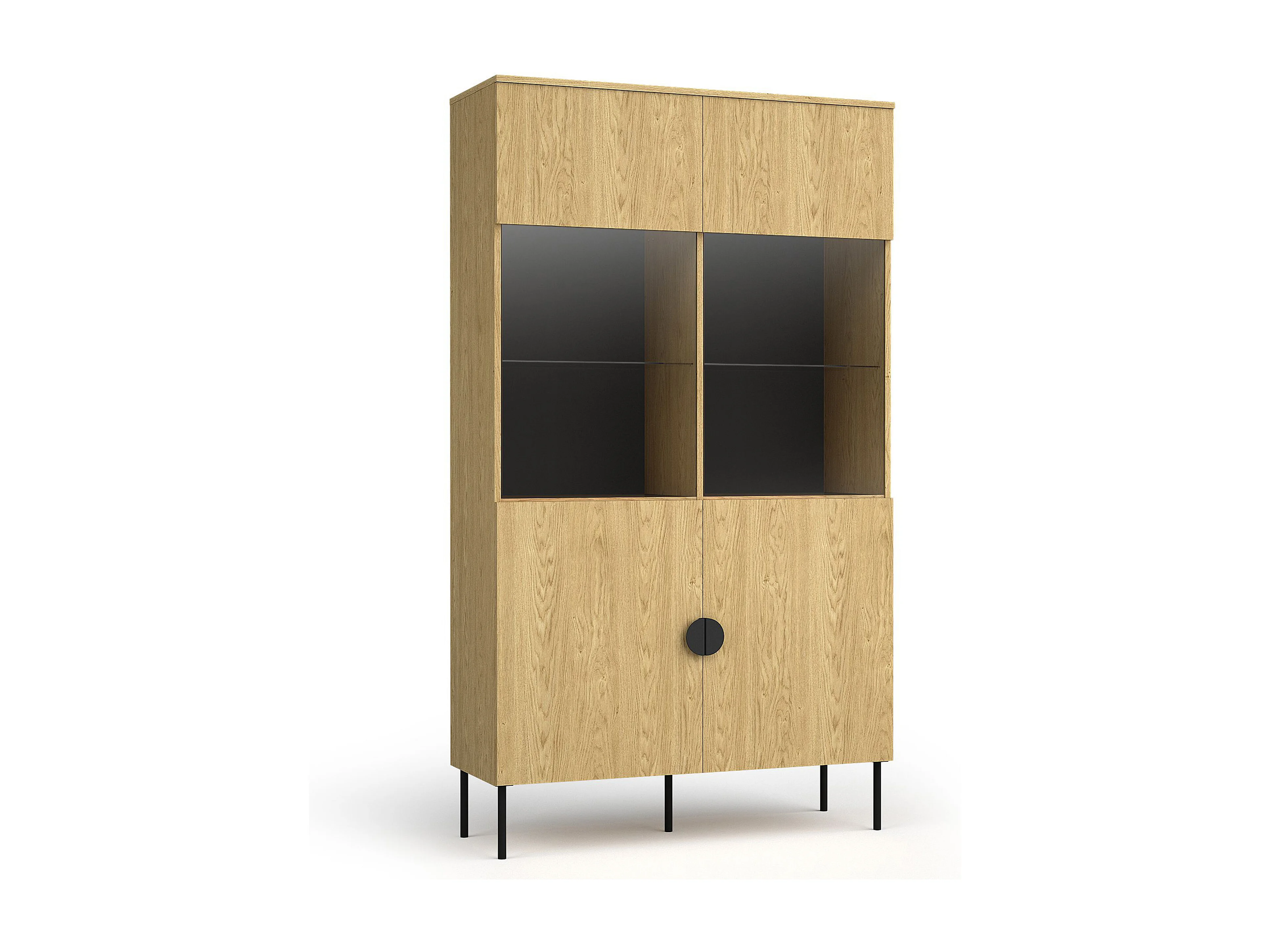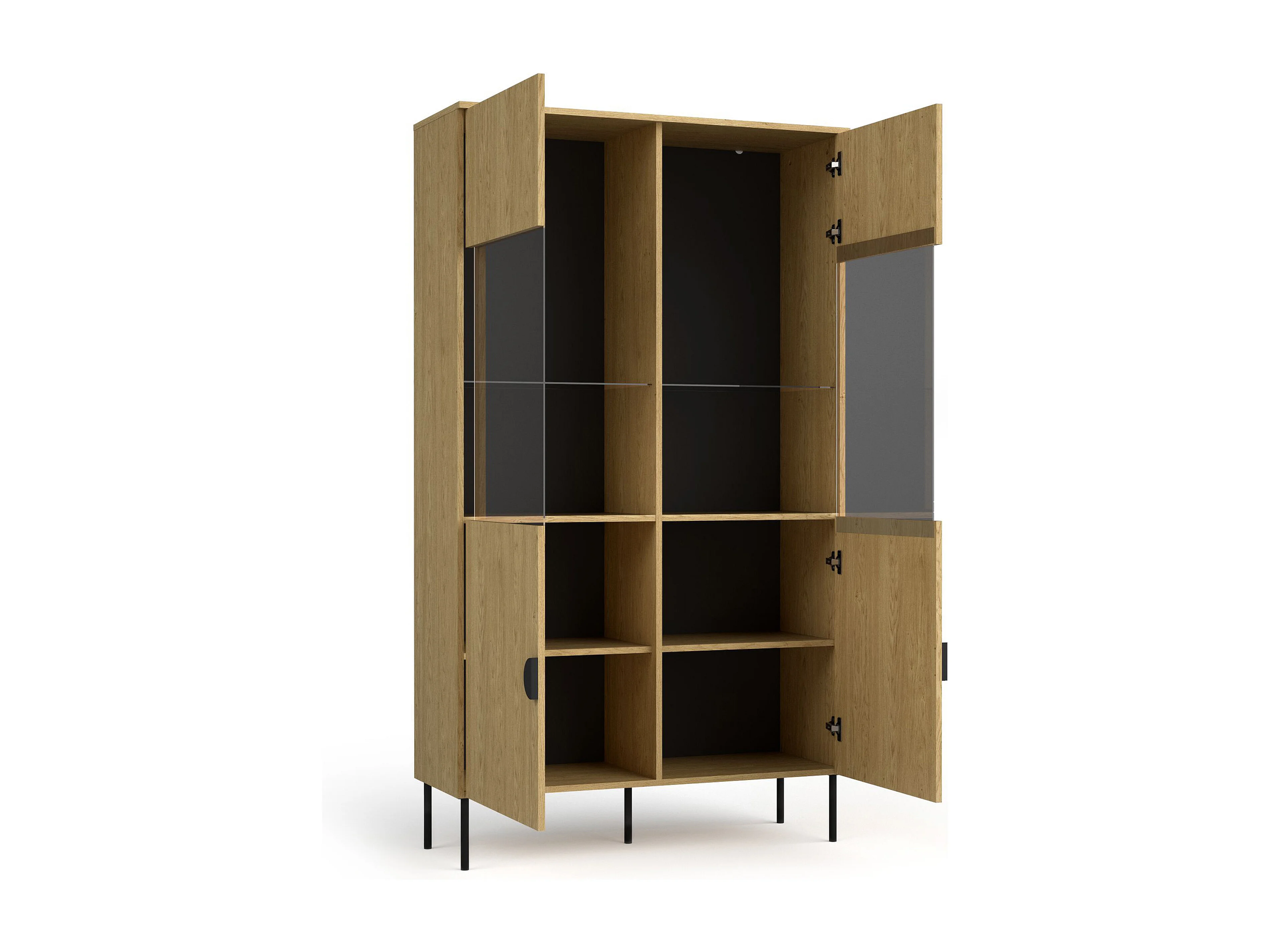 Vitrine VIDIS noir et naturelle claire, dimensions 107x188x40 cm, style moderne